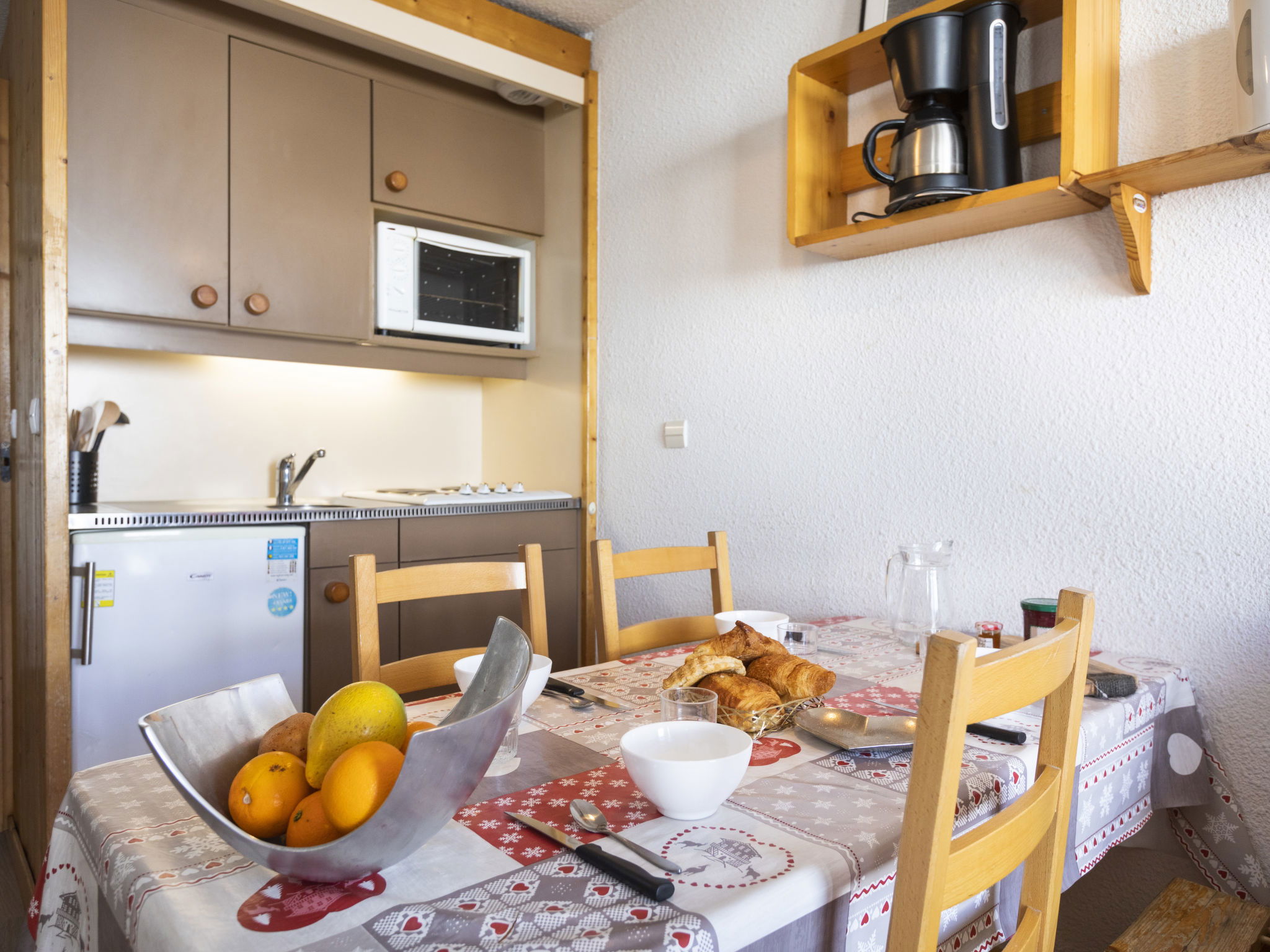 "Lauzières 308", 2-room apartment 26 m2 on 3rd floor, south facing position. Living/dining room with 1 pull-out bed (2 x 80 cm, length 190 cm), TV (flat screen), electric heating. 1 small room 5 m2 with sliding door with 1 pull-out bed (2 pers. 2 x 80 cm, length 190 cm). Sleeping alcove with 1 x 2 bunk beds (80 cm, length 190 cm). Kitchenette (4 hot plates, oven, kettle, electric coffee machine). Bathroom, sep. WC. Balcony, south facing position. Facilities: Internet (WiFi, extra). Please note: maximum 1 pet/ dog allowed. Smoke alarm. Instead of an enclosed bedroom, some sleeping areas are located in an open-plan area (gallery, alcove, etc.). 73257010268HT