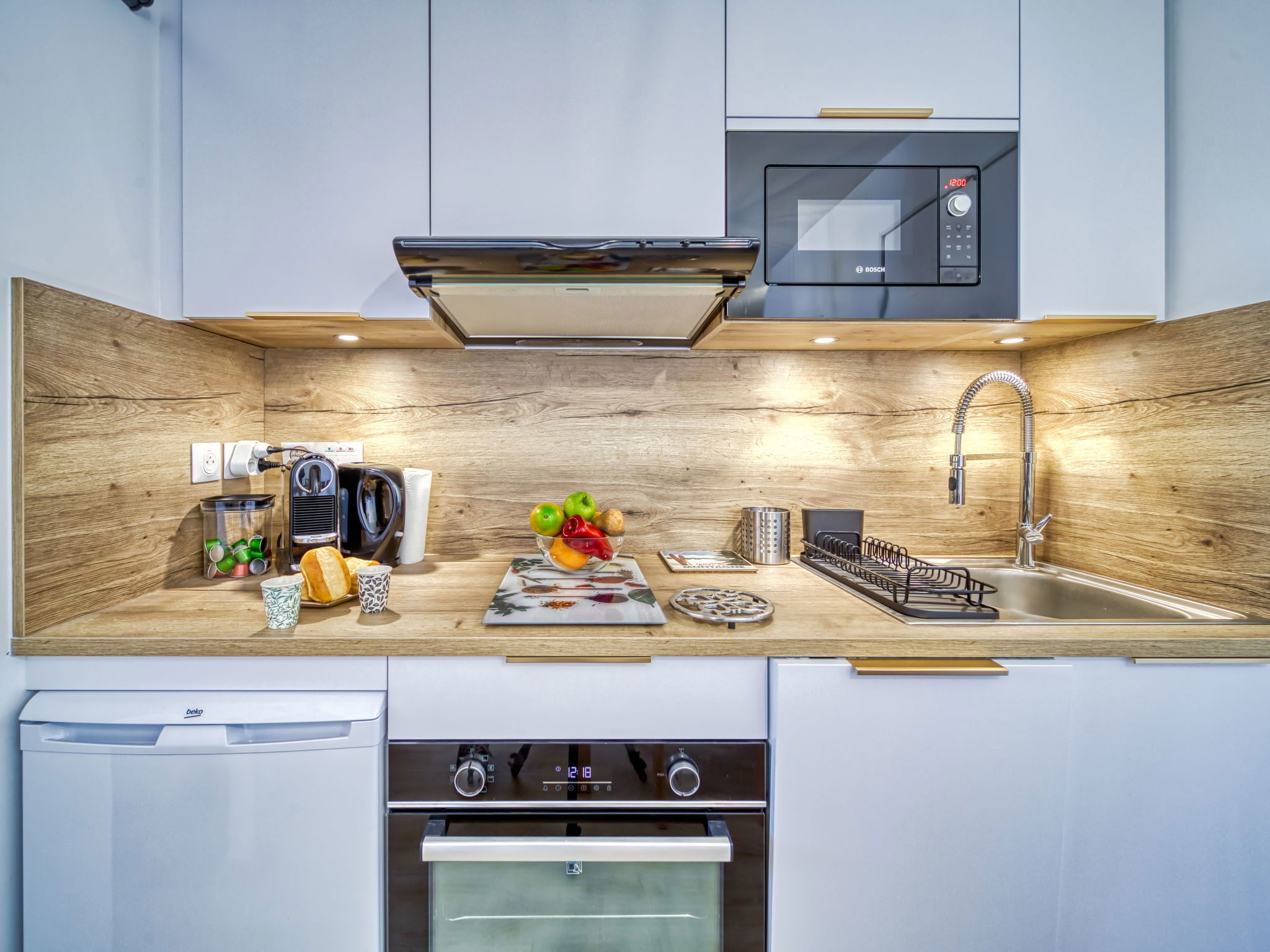 2-room apartment 28 m2 on 6th floor, south facing position. Bright, fully renovated in 2025, very modern furnishings: living/dining room with 1 double sofabed (1 x 160 cm, length 200 cm), TV (flat screen), electric heating. Exit to the balcony, south facing position. 1 small room with 2 beds (80 cm, length 190 cm). Kitchenette (2 hot plates, oven, dishwasher, kettle, microwave, electric coffee machine, Capsules for coffee machine (NESPRESSO) extra). Shower, sep. WC. Parquet floors. Balcony 4 m2, south facing position. Very beautiful panoramic view of the mountains, the valley and the ski run. Facilities: Internet (WiFi, free). Please note: non-smokers only. Smoke alarm. Offer by a private individual according to Art. 155, IV of CGI. 73257010953MX