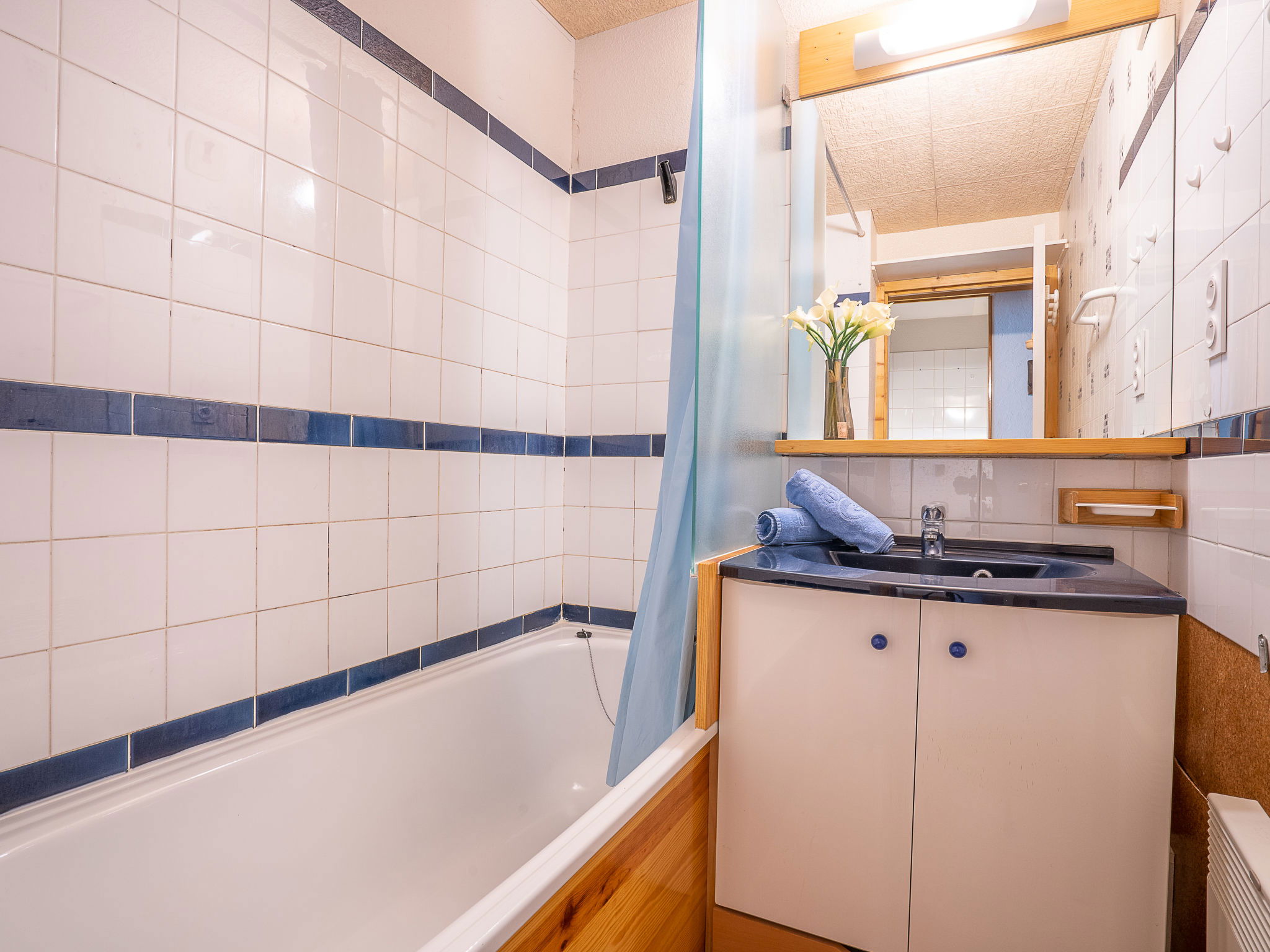 Residence "Eskival". In the centre of la station, 50 m from the skiing area, south facing position. In the house: restaurant, boutique, lift, storage room for skis. In Winter: please take snow chains. Public car park at 100 m. Shop, grocery 100 m, supermarket, shopping centre 50 m, restaurant 5 m, bakery 50 m, café, pedestrian zone, 2 minute walk to the centre, bus stop "Navette" 5 m. Sports centre 50 m, skisport facilities 10 m, ski school 5 m, ski-kindergarten 500 m, ice rink 150 m. Please note: In case of good snow conditions, the house is accessible on skis.