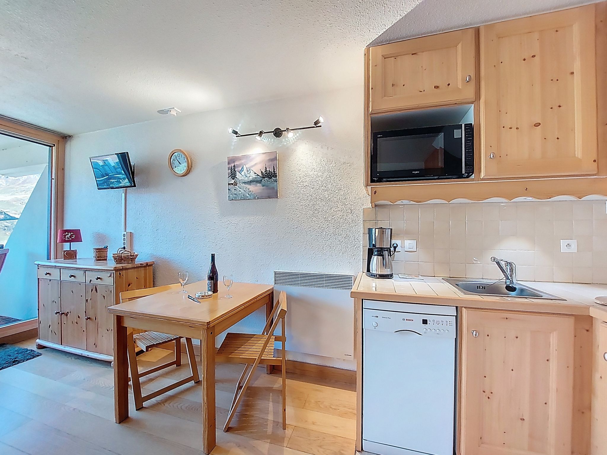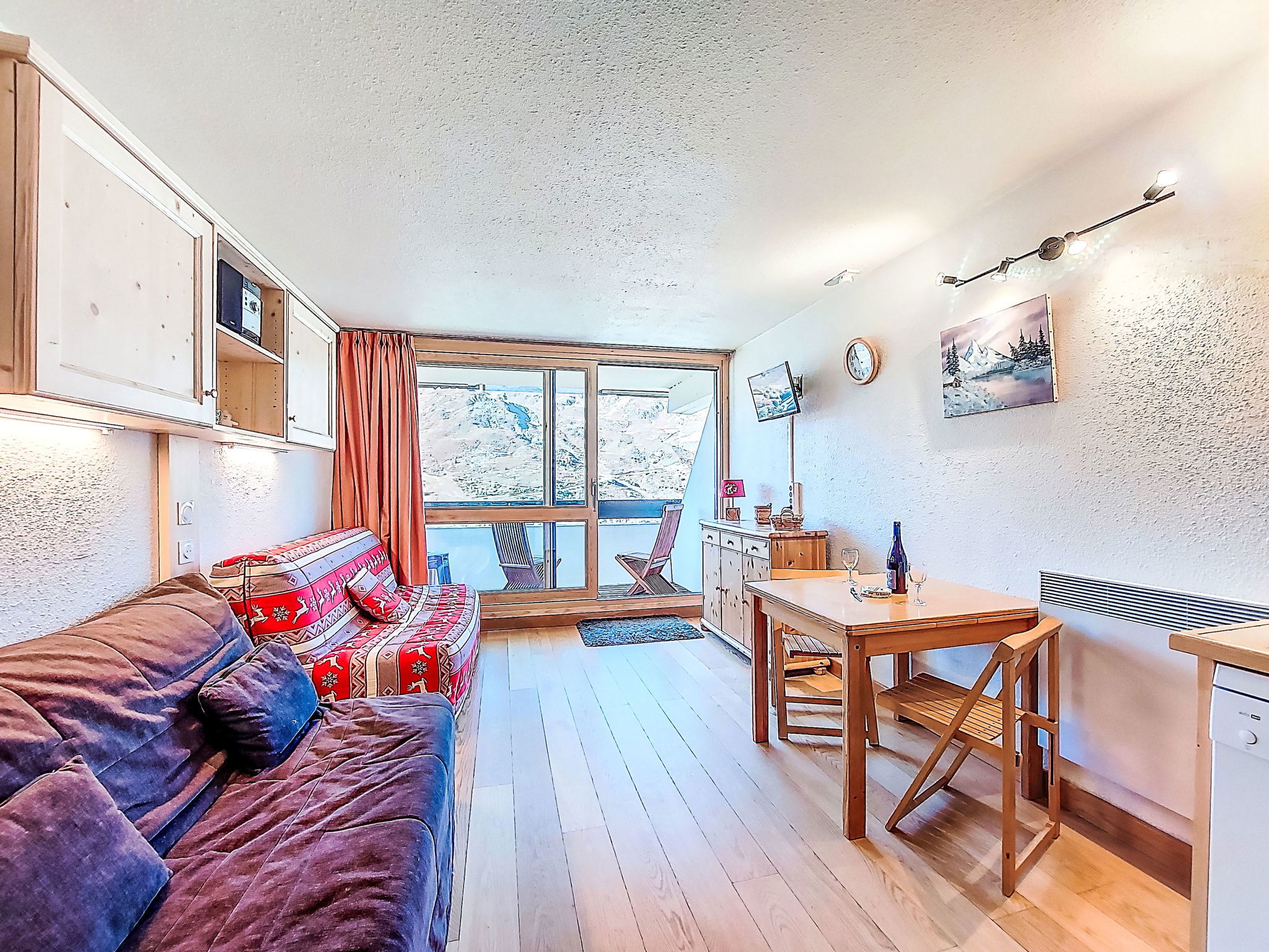 The residence Brelin is linked to the centre "La Croisette" by a public free lift 24/7 residence "Brelin". In an elevated position, directly by the skiing area. In the complex: restaurant, shopping facilities, lift, storage room for skis. In Winter: please take snow chains. Public parking. Grocery 20 m, shopping centre, restaurant 250 m, bus stop "Gare routière Les Menuires" 1 km. Sports centre 500 m, skisport facilities 50 m, slopes 20 m. Well-known ski regions can easily be reached: 3 Vallées. The owner does not accept any youth groups. Please note: Additional accommodations can be booked.