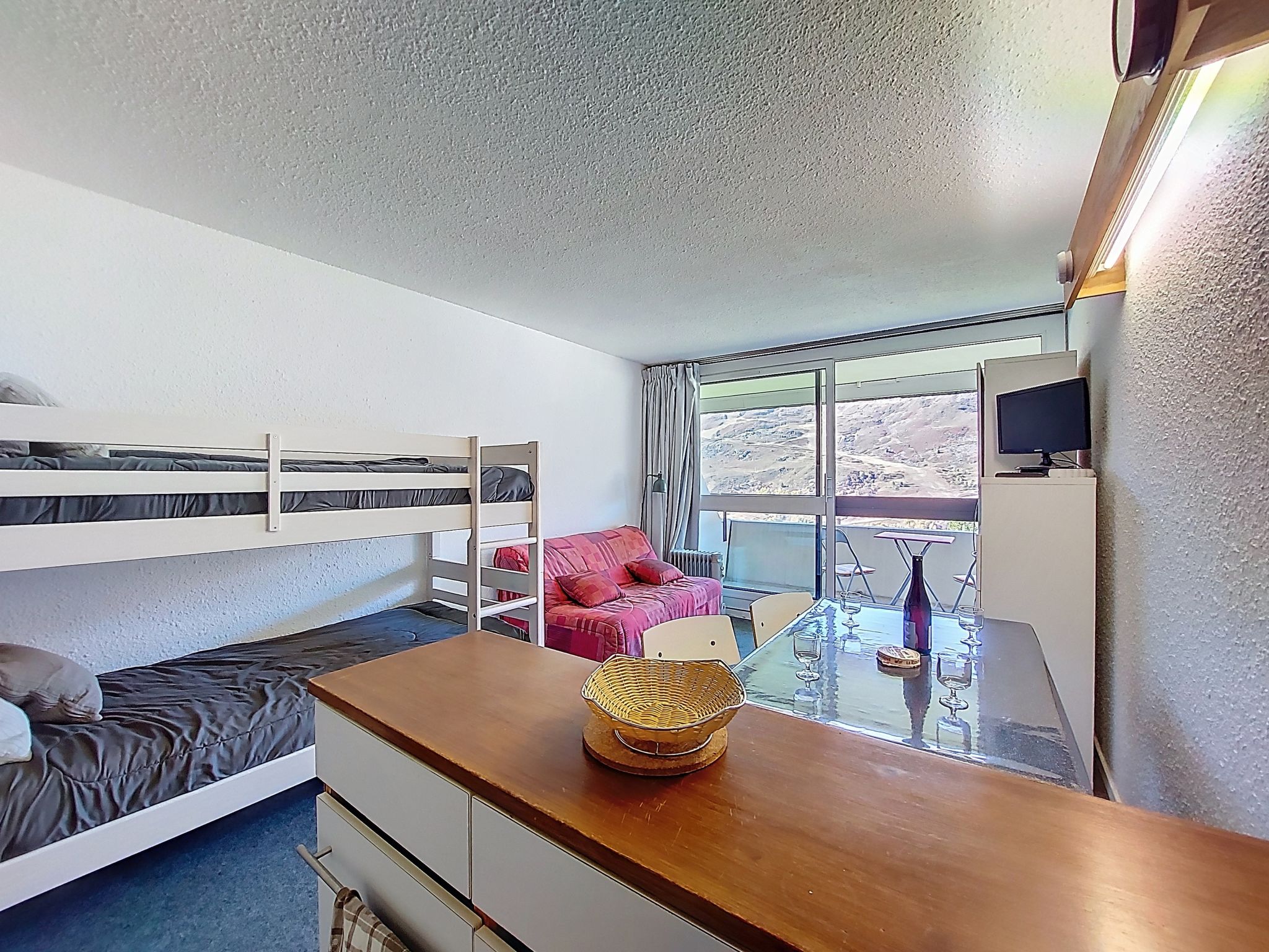 The residence Brelin is linked to the centre "La Croisette" by a public free lift 24/7 residence "Brelin". In an elevated position, directly by the skiing area. In the complex: restaurant, shopping facilities, lift, storage room for skis. In Winter: please take snow chains. Public parking. Grocery 20 m, shopping centre, restaurant 250 m, bus stop "Gare routière Les Menuires" 1 km. Sports centre 500 m, skisport facilities 50 m, slopes 20 m. Well-known ski regions can easily be reached: 3 Vallées. The owner does not accept any youth groups. Please note: Additional accommodations can be booked.