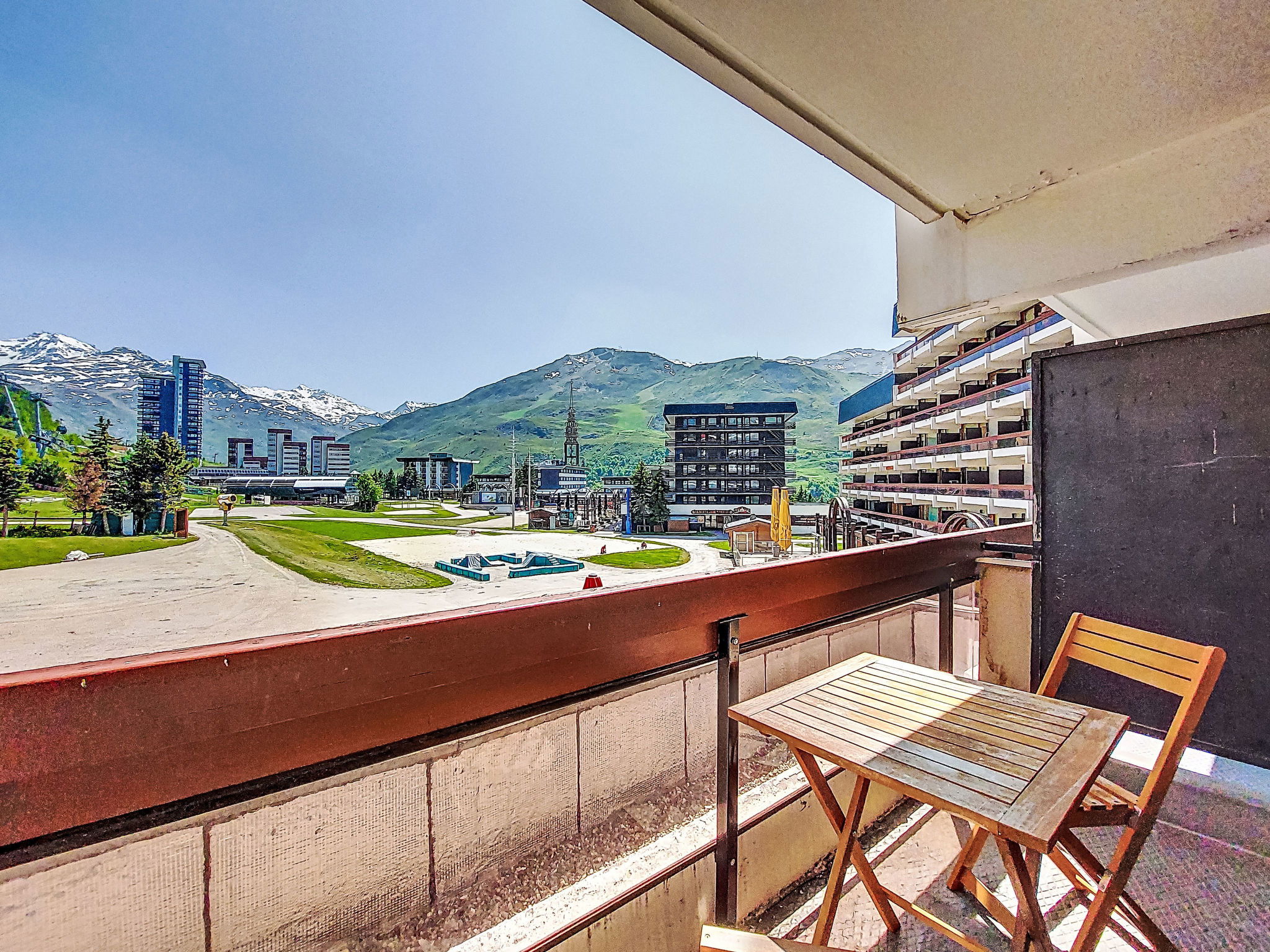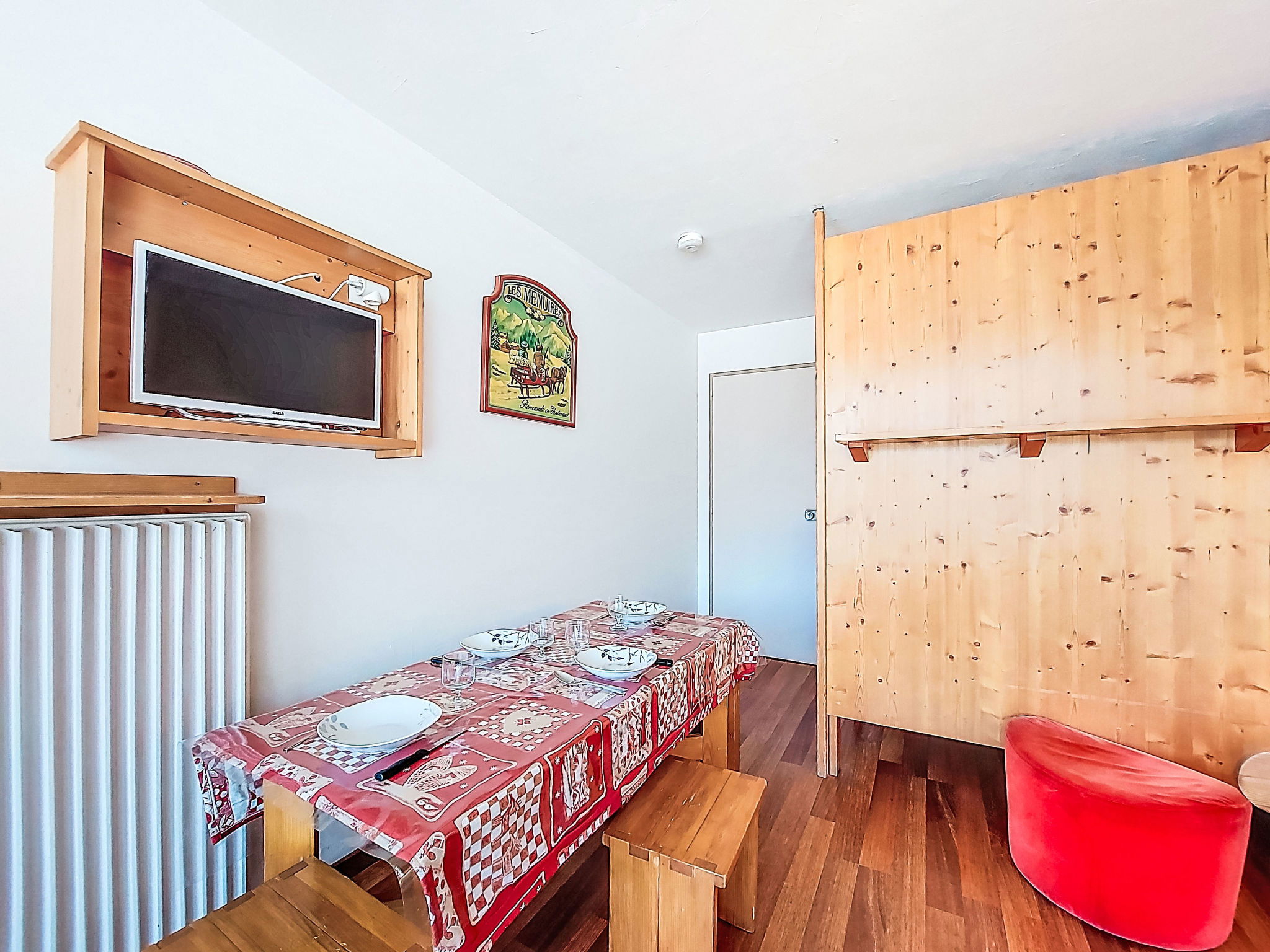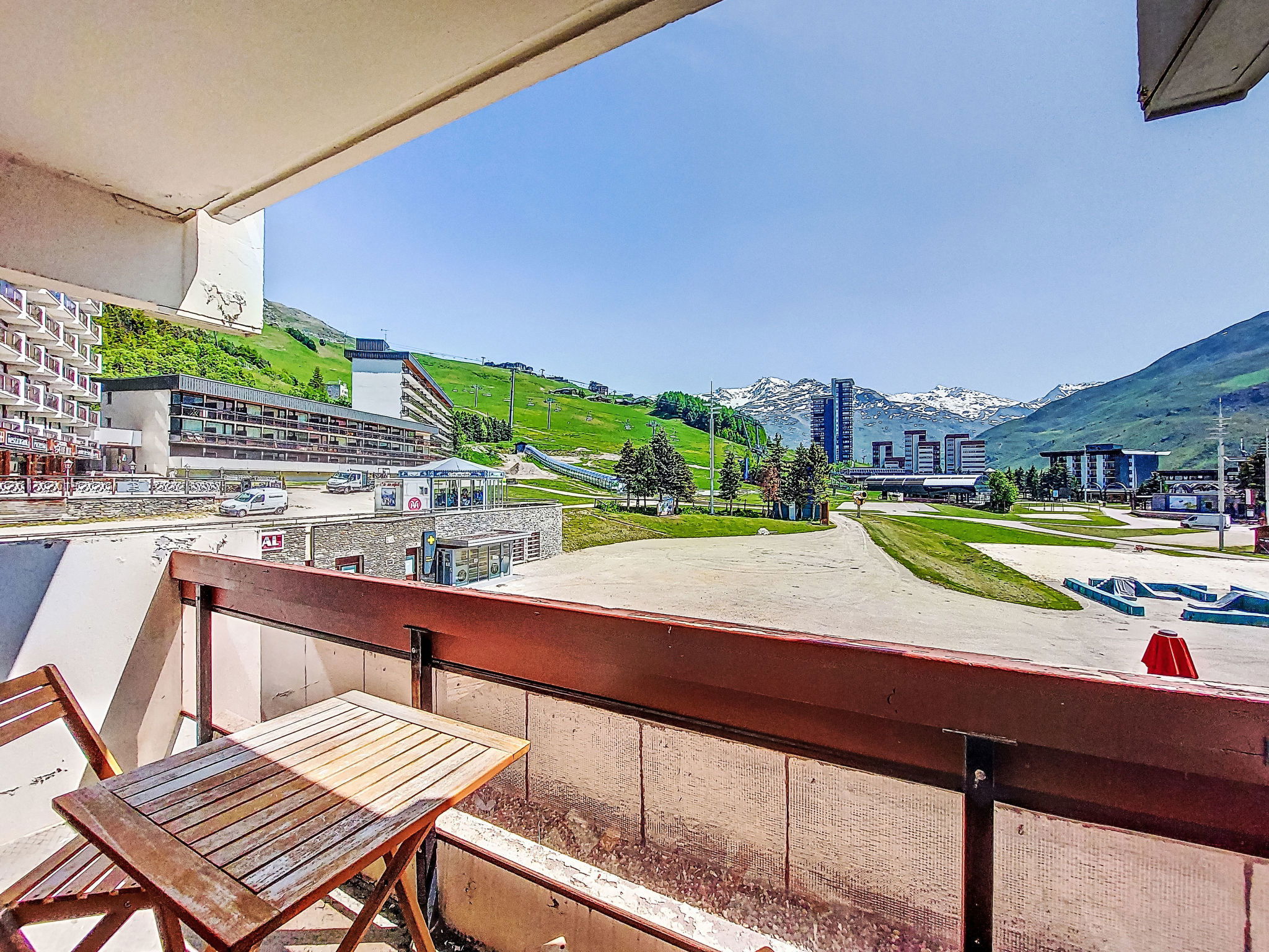 Residence "Chavière", 8 storeys. In the centre of La Croisette, directly by the skiing area. In the complex: lift, storage room for skis, central heating system. Public parking. Shop, supermarket 10 m, bus stop "Gare routière les menuires" 100 m. Sports centre 30 m, skisport facilities, slopes, ski school 20 m, ski-kindergarten 50 m. Well-known ski regions can easily be reached: 3 Vallées. Please note: the photograph shows a typical example. Additional accommodations can be booked.