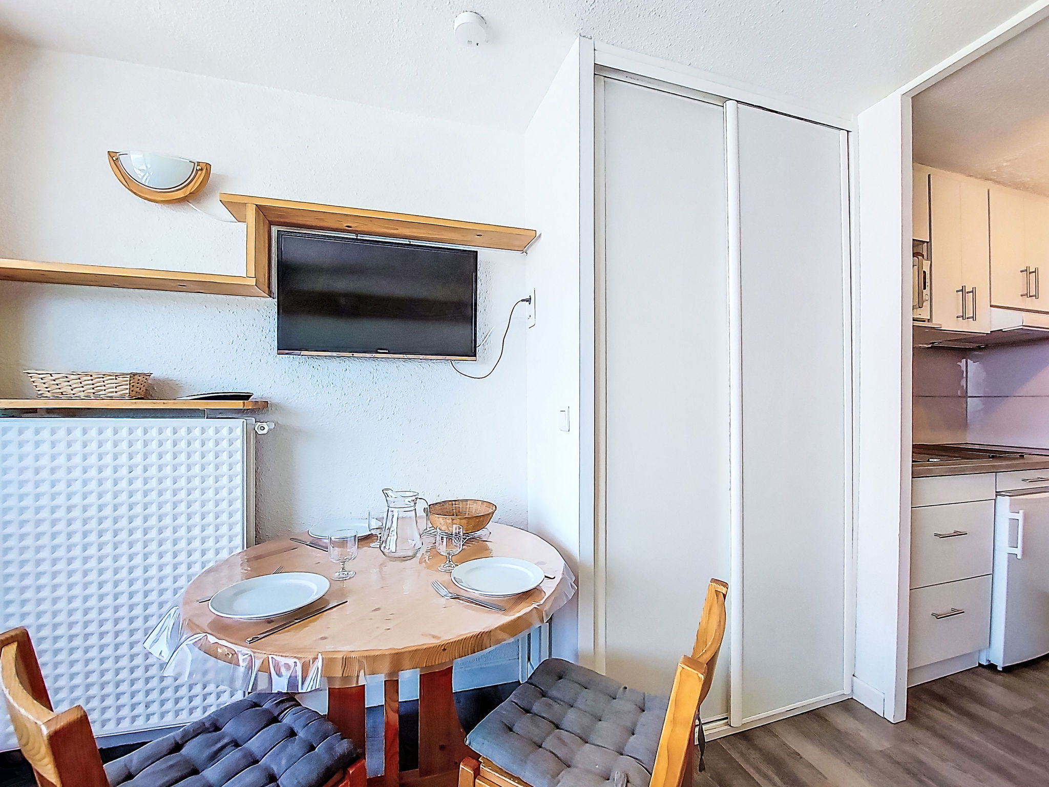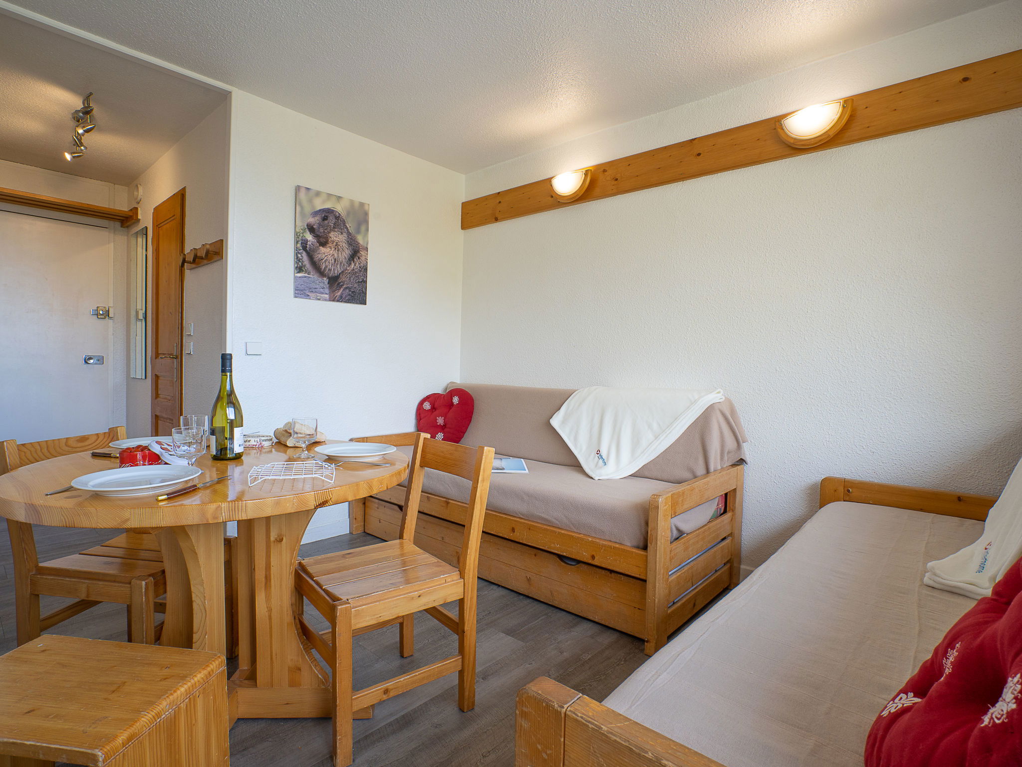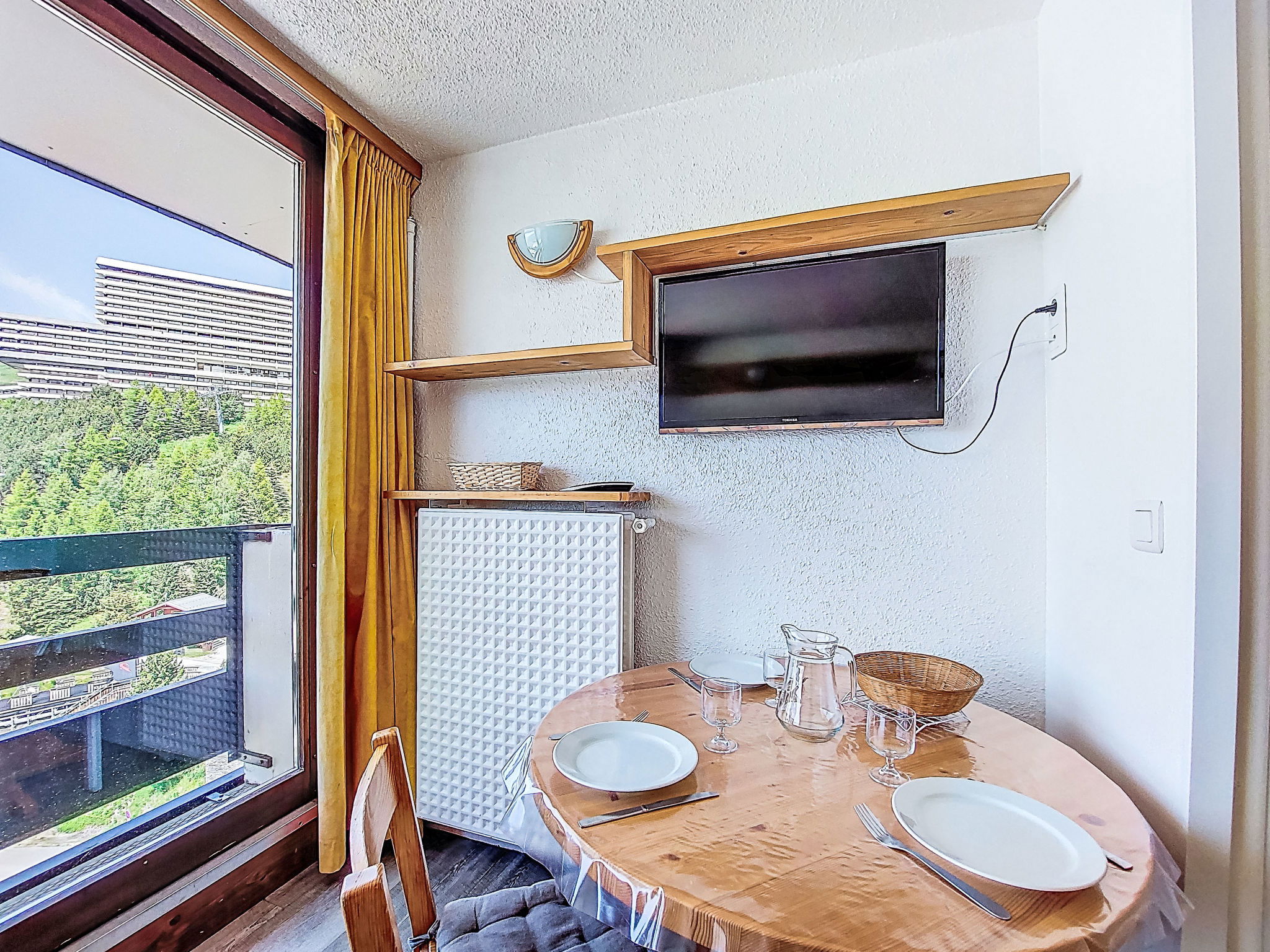 "Chavière 832", 1-room studio 19 m2 on 8th floor. Beautiful furnishings: living/dining room with 1 bed (80 cm, length 190 cm), 1 pull-out bed (2 pers. 2 x 80 cm, length 190 cm), TV (flat screen). Exit to the balcony, north facing position. Kitchen in the entrance (dishwasher, 2 ceramic glass hob hotplates, kettle, microwave, electric coffee machine). Bath/WC. View of the valley. Facilities: Internet (WiFi, extra). Please note: smoke alarm. 73257005243WF