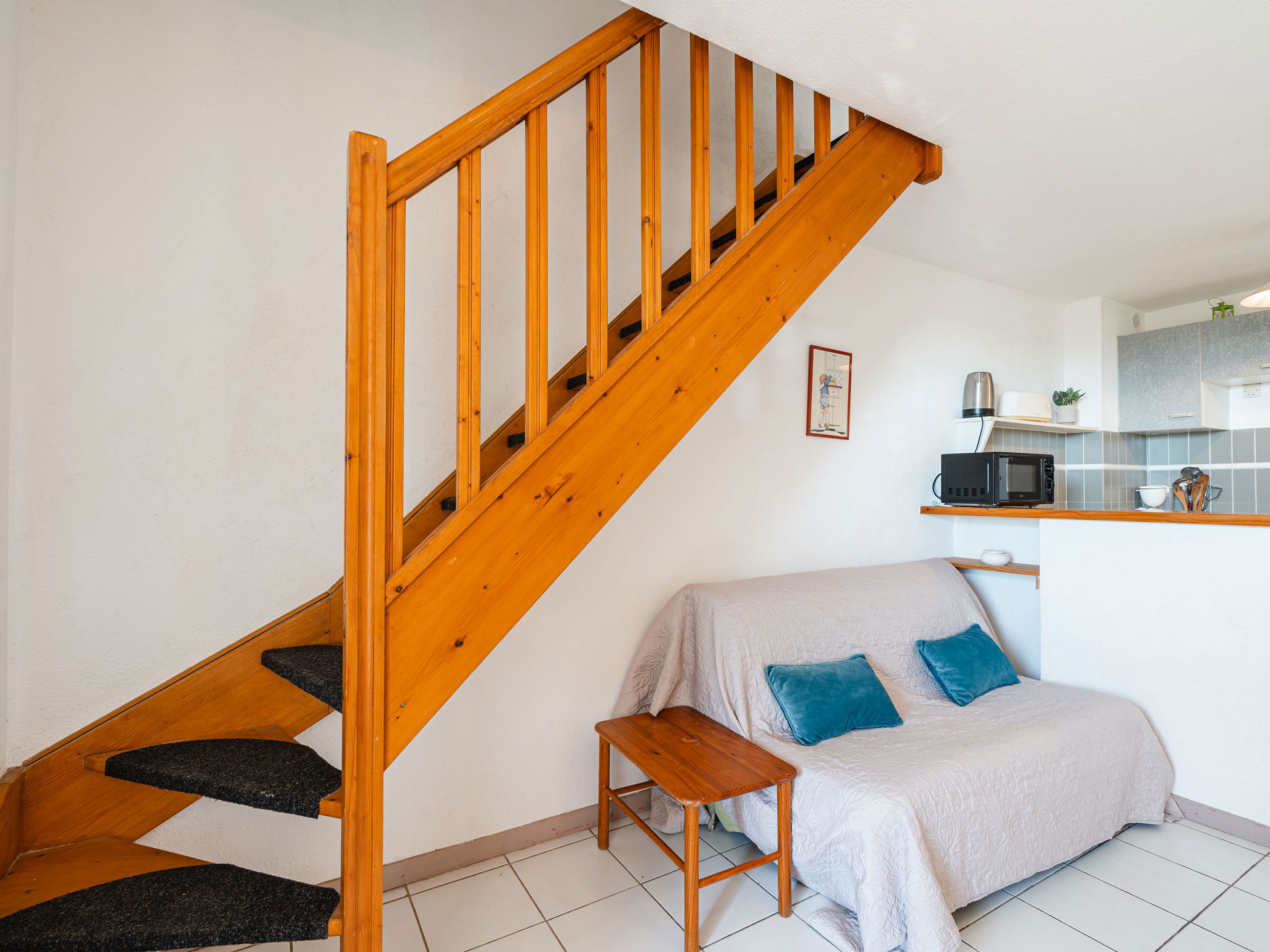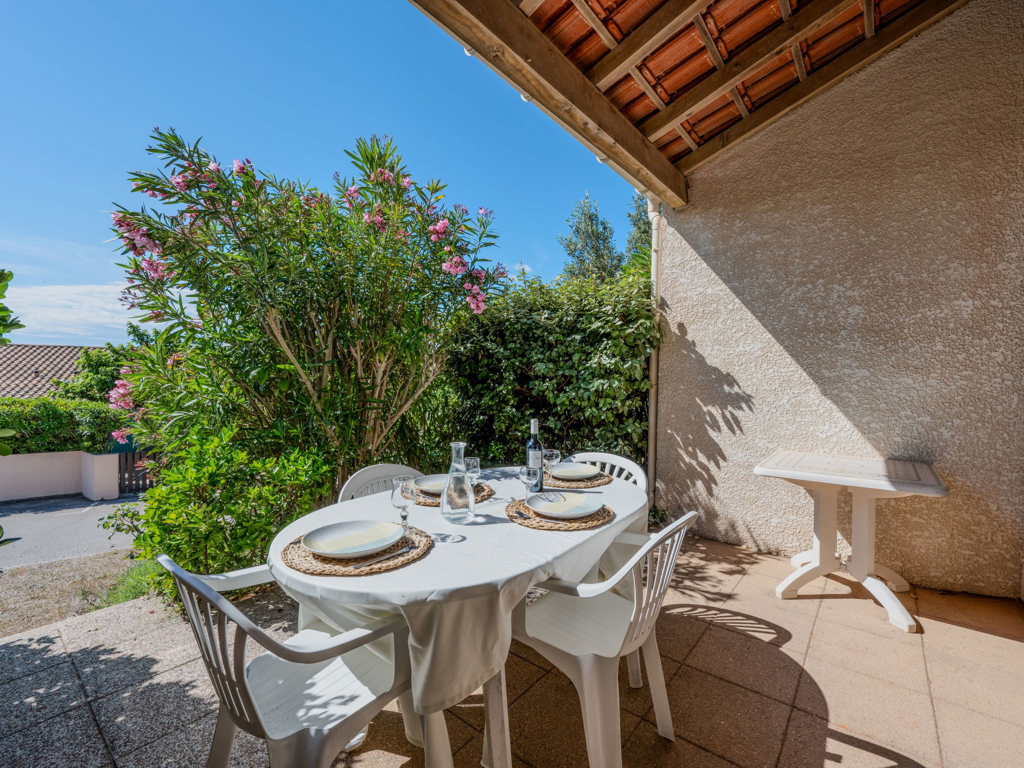 Residence "Les Sentolines". 400 m from the centre of Saint Pierre La Mer, in an elevated position, 500 m from the sea, road to cross. Grocery, restaurant, bar, bus stop 400 m, diving center 2.3 km. Sports harbour 2.3 km, riding stable 2.7 km. Nearby attractions: Réserve africaine de Sigean 36 km, Cité de Carcassonne 78 km, Espace balnéoludique de Gruissan 11 km. The keys‘ handover takes place by the agency in Narbonne Plage, 3 km.