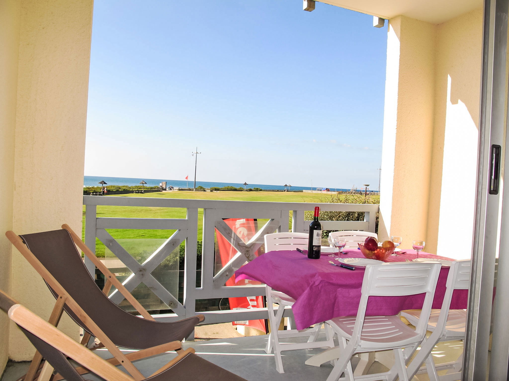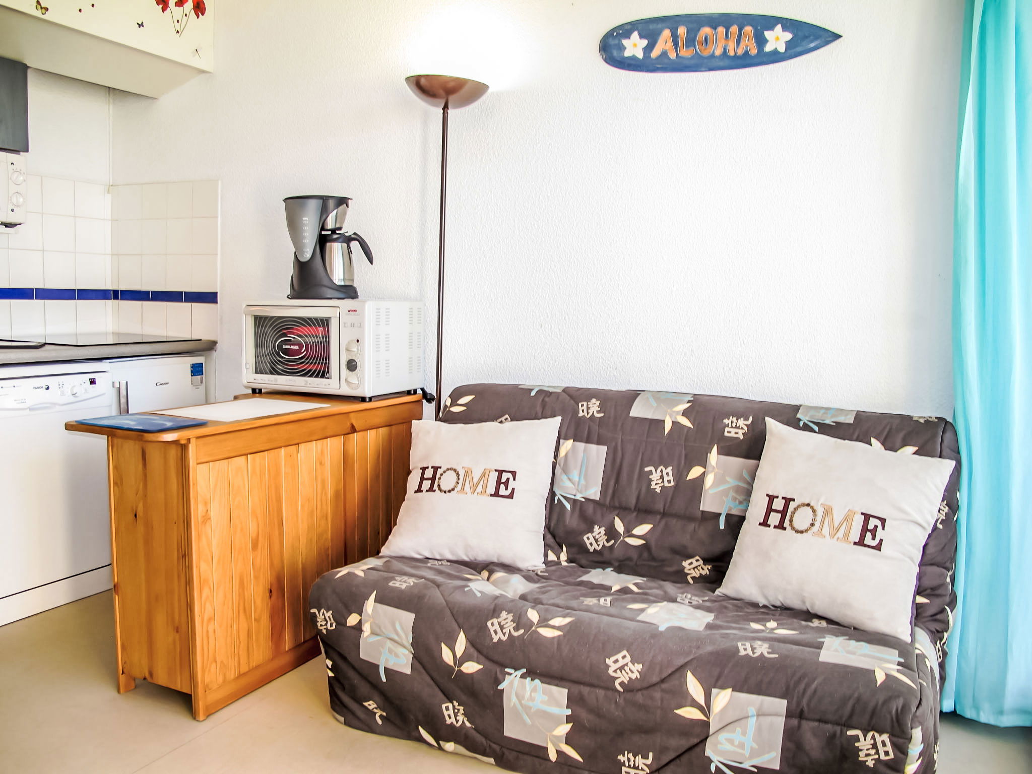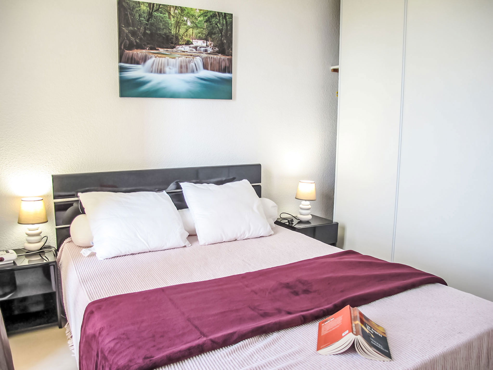 2-room apartment 28 m2 on 1st floor. Practical and beautiful furnishings: living/dining room with 1 double sofabed (1 x 140 cm), TV (flat screen). Exit to the balcony. 1 small room 9 m2 with 1 french bed (1 x 140 cm). Kitchenette (mini-oven, dishwasher, 1 ceramic glass hob hotplate, 4 gas rings, toaster, kettle, electric coffee machine, Capsules for coffee machine (tassimo + filtre) extra). Bath/WC. Electric heating. Balcony 8 m2. Balcony furniture. View of the sea. Facilities: washing machine. Internet (WiFi, extra). Please note: no parking. Maximum 1 pet/ dog allowed. TV only FR. Smoke alarm.