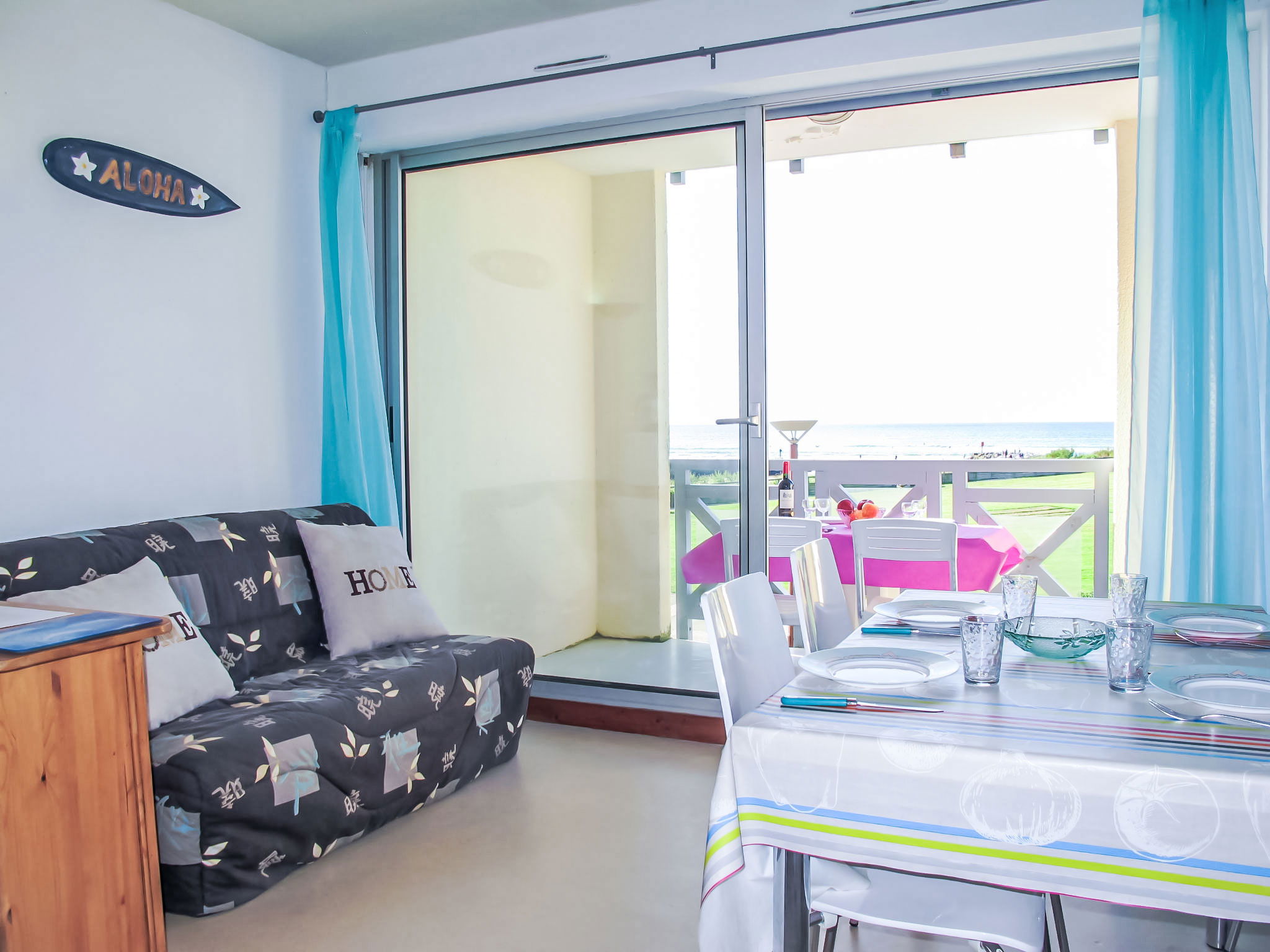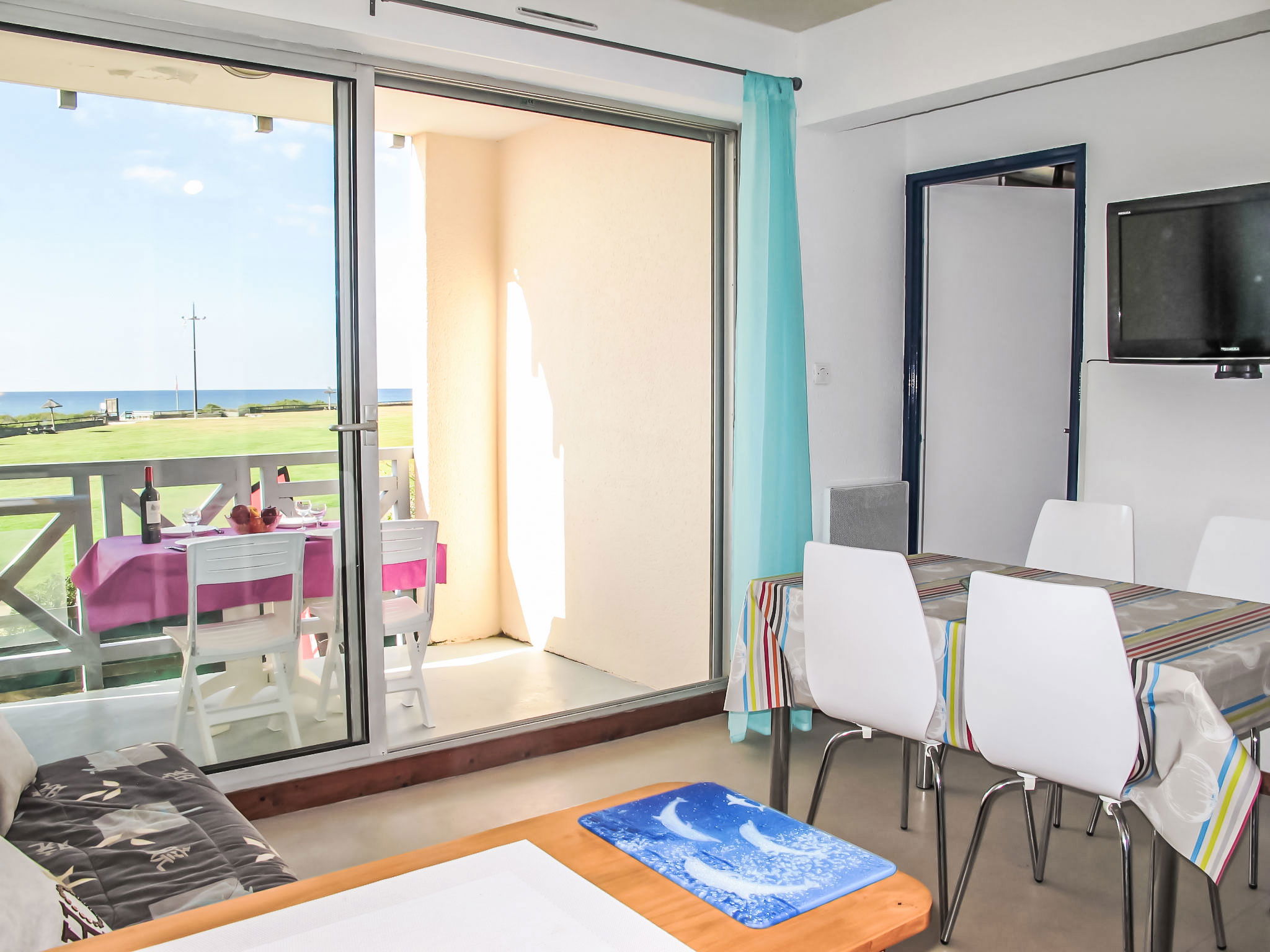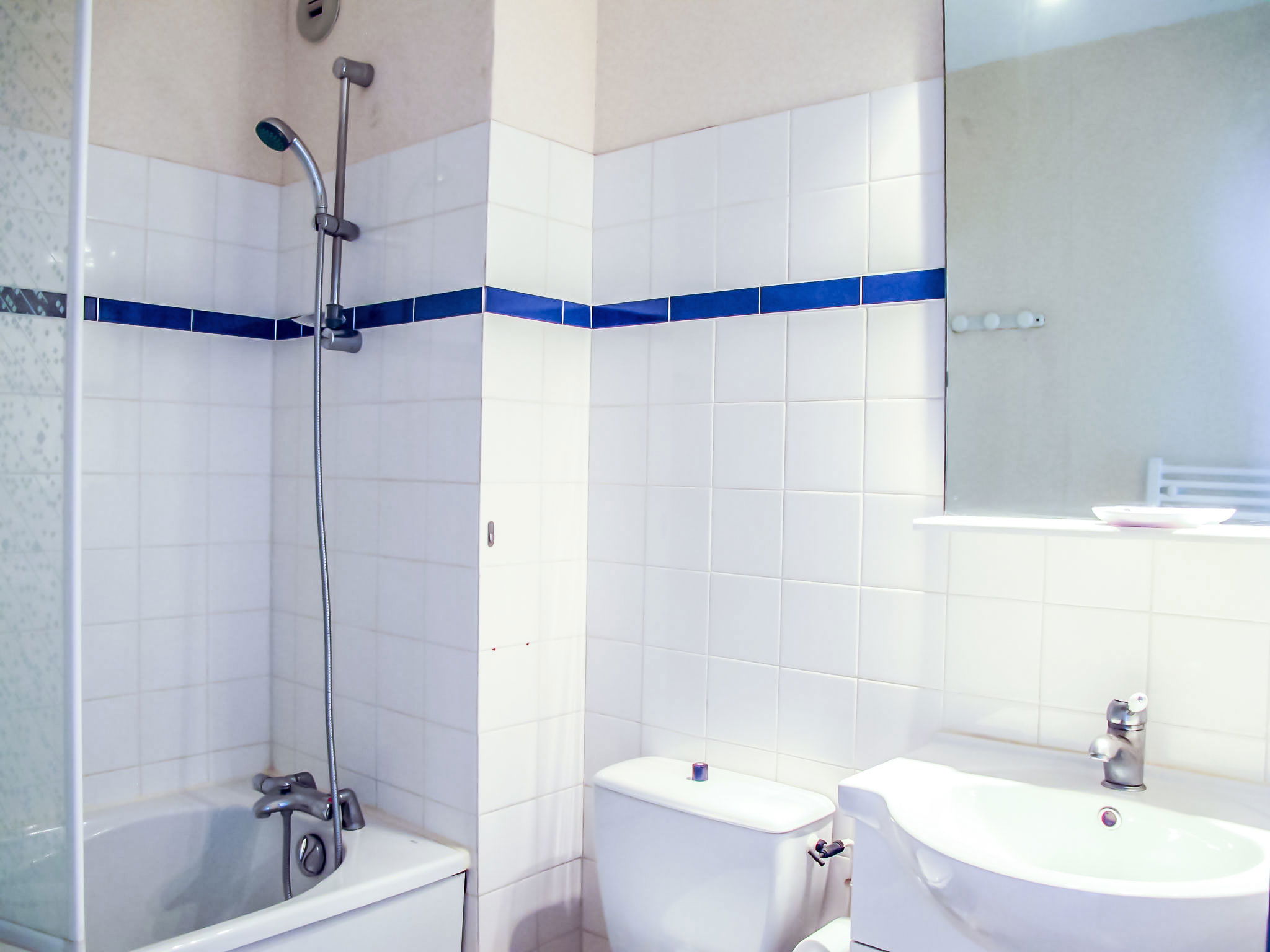 2-room apartment 28 m2 on 1st floor. Practical and beautiful furnishings: living/dining room with 1 double sofabed (1 x 140 cm), TV (flat screen). Exit to the balcony. 1 small room 9 m2 with 1 french bed (1 x 140 cm). Kitchenette (mini-oven, dishwasher, 1 ceramic glass hob hotplate, 4 gas rings, toaster, kettle, electric coffee machine, Capsules for coffee machine (tassimo + filtre) extra). Bath/WC. Electric heating. Balcony 8 m2. Balcony furniture. View of the sea. Facilities: washing machine. Internet (WiFi, extra). Please note: no parking. Maximum 1 pet/ dog allowed. TV only FR. Smoke alarm.