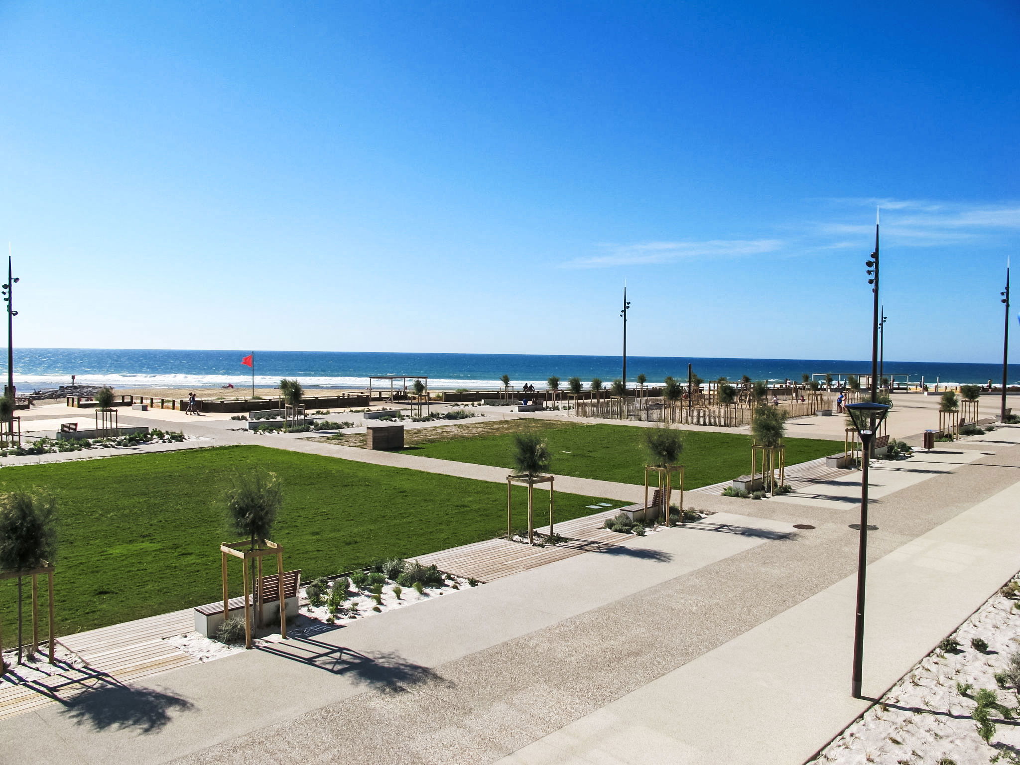 Mimizan-Plage: Residence "Grand Pavois", 3 storeys, built in 1987. In the resort 100 m from the centre of Mimizan Plage, in a central, busy position, 100 m from the sea, 10 km from the lake, 100 m from the beach, 30 m from the river. In the complex: lift. Shop 100 m, grocery 150 m, supermarket 600 m, restaurant 10 m, bar 100 m, bakery 150 m, bicycle rental 300 m, bus stop 450 m, railway station "Labouheyre" 30 km, sandy beach "la garluche" 150 m, park "Landes Aventure" 6 km, indoor swimming pool 6 km, bathing lake "Aureilhan" 10 km. Golf course (9 hole) 6 km, surf school 350 m, riding stable 10 km. Nearby attractions: Bordeaux 120 km, Arcachon 70 km, Biscarrosse 40 km, Centre Nautique 7 km, Casino Mimizan Plage. Hiking paths: Parc naturel régional des Landes 45 km.