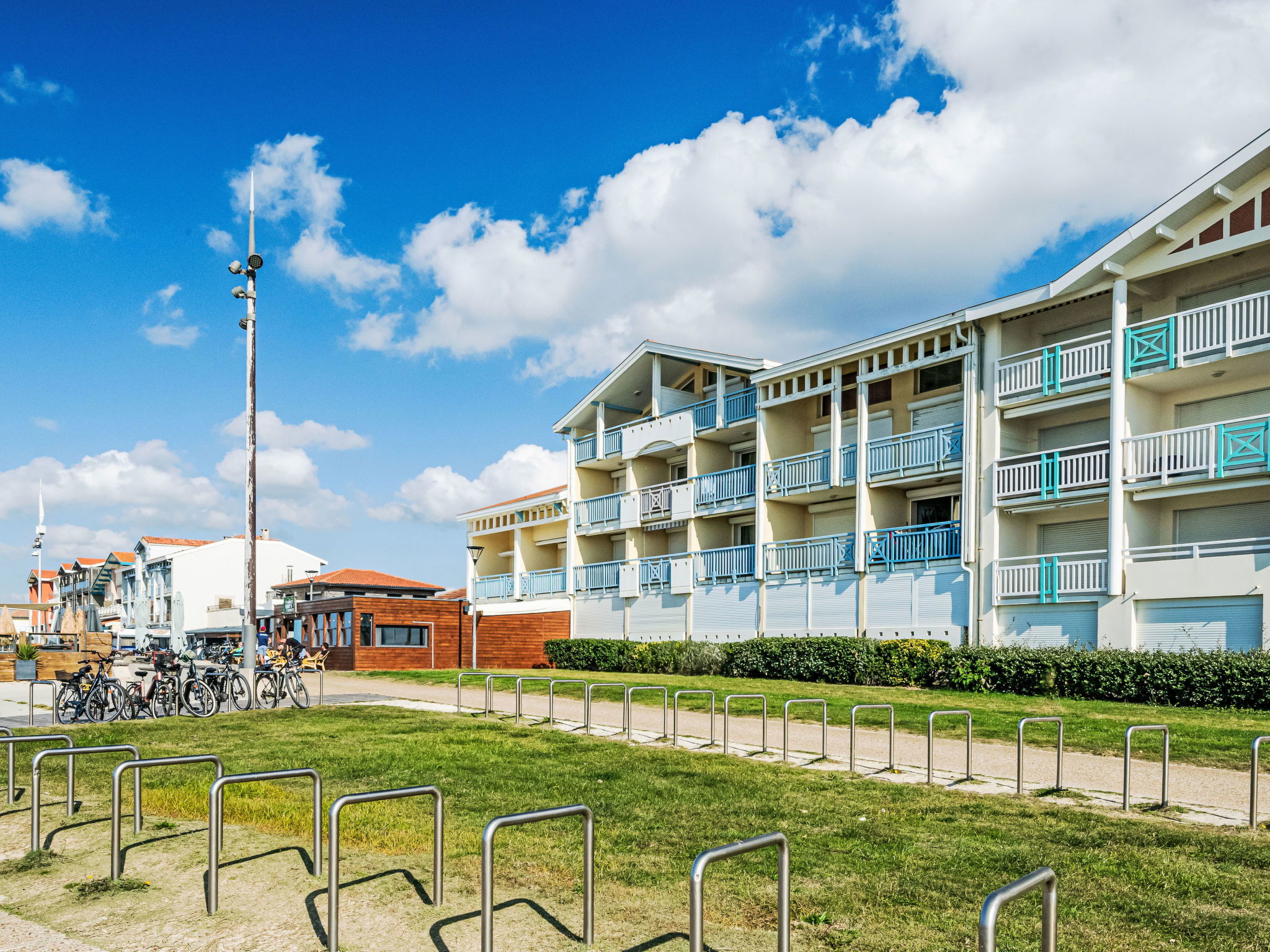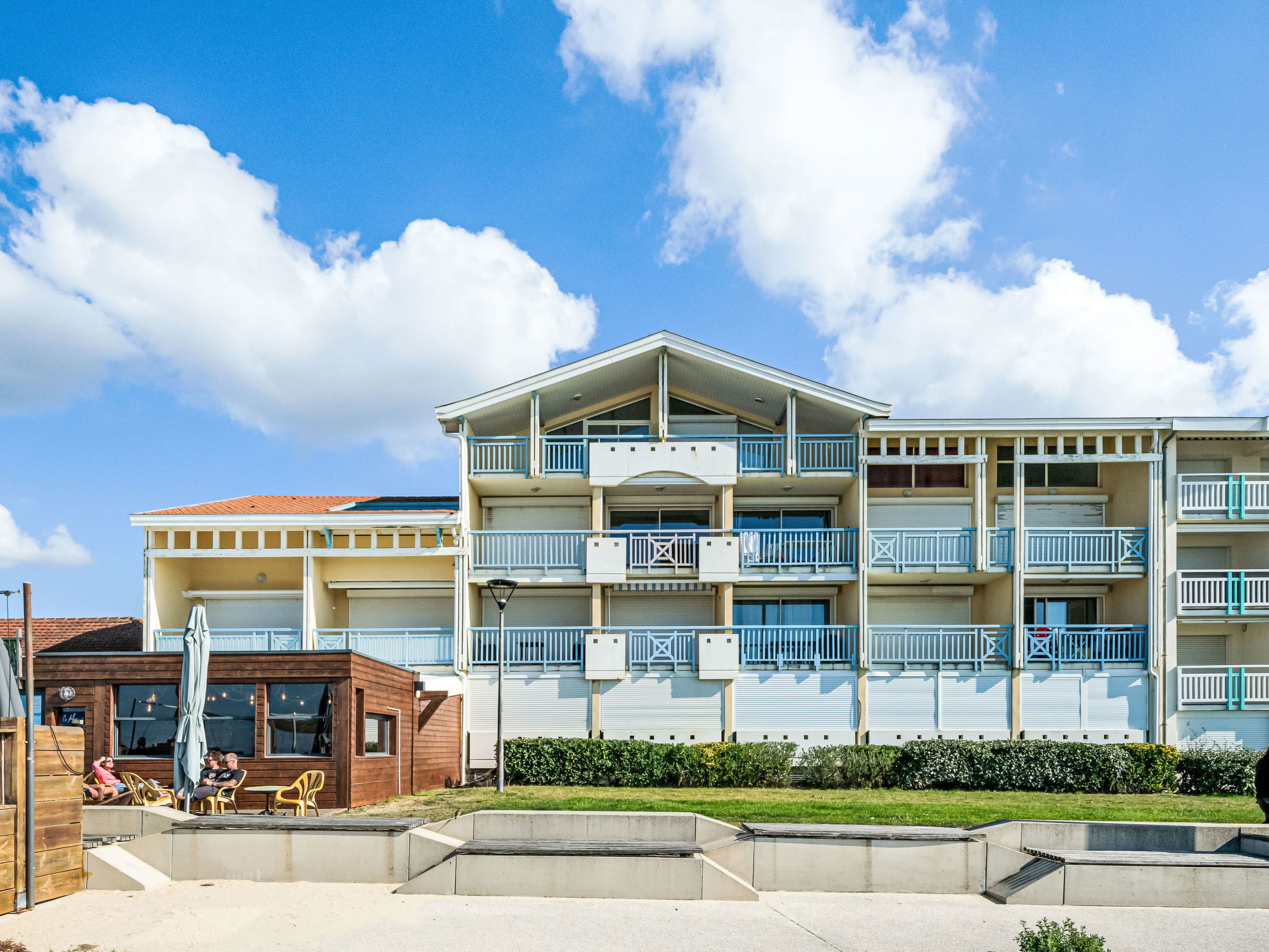 Residence "Les Hauts de la Corniche", 3 storeys. In a central, busy position, in the heart of the city, 1 km from the edge of the forest, 50 m from the sea, 10 km from the lake, 50 m from the beach. In the complex: lift. Shop, grocery 50 m, supermarket 500 m, restaurant 10 m, bakery 50 m, pedestrian zone 10 m, bus stop 400 m, railway station "Labouheyre" 30 km, sandy beach "la garluche" 50 m, park "Landes Aventure" 6 km, indoor swimming pool 6 km, bathing lake "Aureilhan" 10 km. Golf course (9 hole) 6 km, surf school 50 m, riding stable 10 km. Nearby attractions: Aqualand Bassin Arcachon 70 km, Biscarrosse 40 km, Casino Mimizan Plage 1.5 km, Centre Nautique 10 km. Hiking paths: Marquèze 40 km. Brasserie on the ground floor of the building.