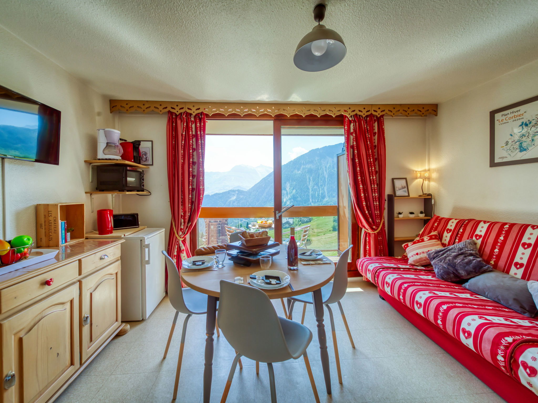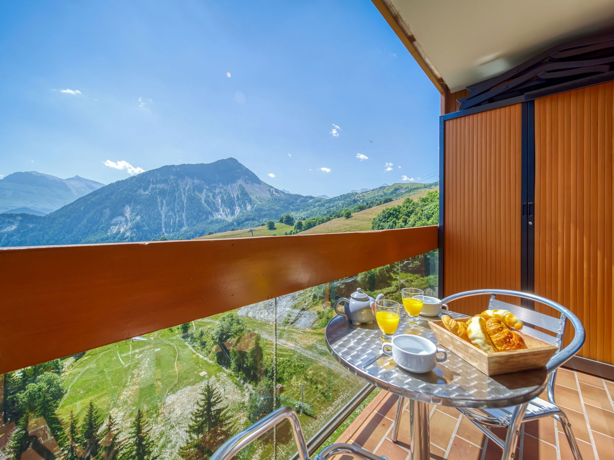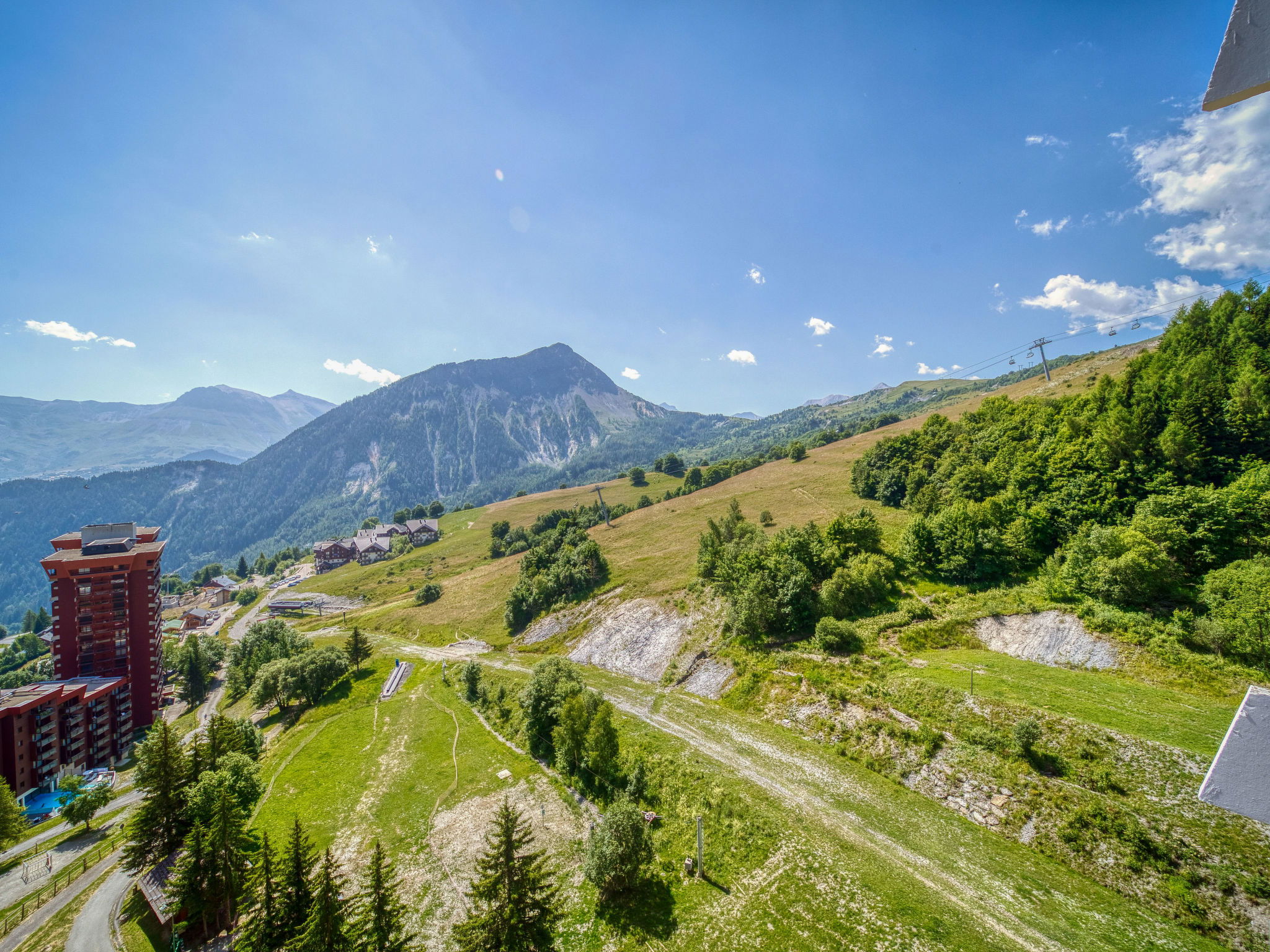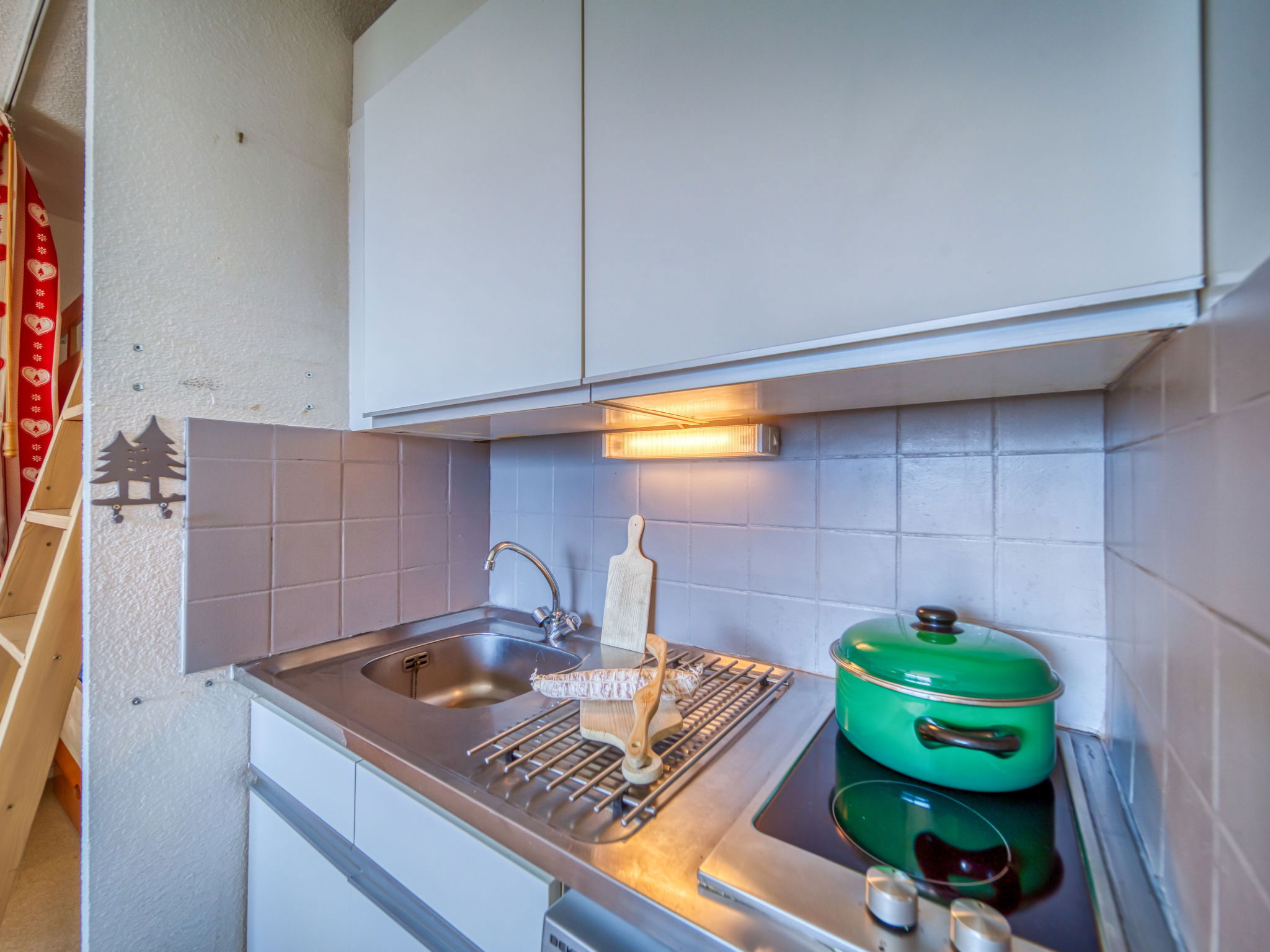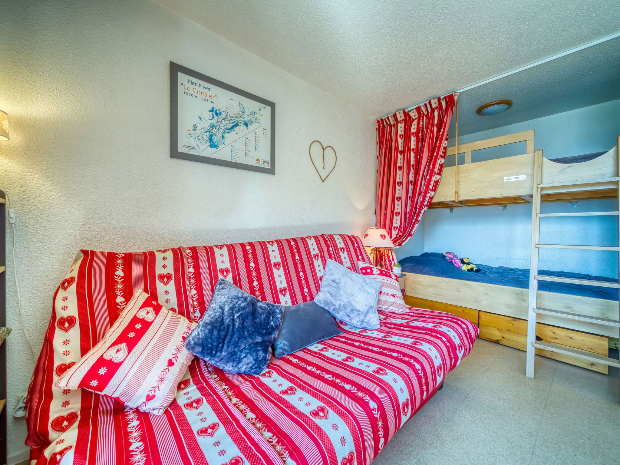 1-room studio 24 m2 on 14th floor, north-east facing position. Comfortable and beautiful furnishings: living/dining room with 1 double sofabed (140 cm, length 190 cm), TV (flat screen). Exit to the balcony. Alcove with curtain with 1 x 2 bunk beds (120 cm, length 190 cm). Small kitchenette (mini-oven, dishwasher, 2 ceramic glass hob hotplates, toaster, kettle, microwave, electric coffee machine, Capsules for coffee machine (TASSIMO), raclette grill, fondue Set (cheese)). Bath/WC. Electric heating. Balcony 5 m2, east facing position. Balcony furniture, deck chairs (2). Very beautiful view of the mountains and the ski run. Facilities: iron, hair dryer. Internet (WiFi, extra). Please note: non-smokers only. Smoke alarm. Instead of an enclosed bedroom, some sleeping areas are located in an open-plan area (gallery, alcove, etc.). Offer by a private individual according to Art. 155, IV of CGI.