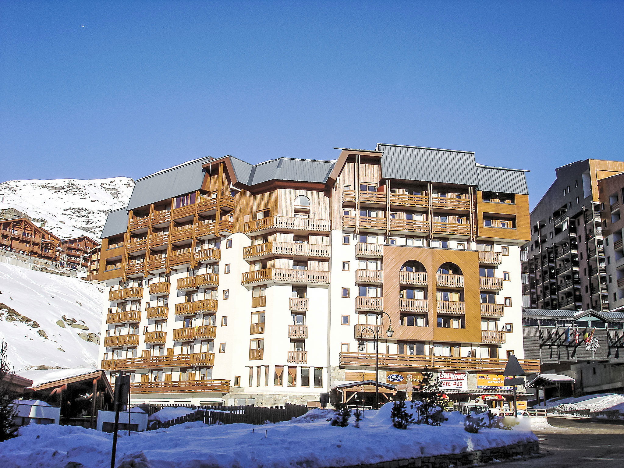 Residence "Altineige", 7 storeys. In the centre of Val Thorens, in a central, busy, sunny position, 100 m from the skiing area. In the complex: WiFi (extra). Lift, storage room for skis. In Winter: please take snow chains. Public car park at 50 m, extra. Shop 100 m, grocery, supermarket 200 m, shopping centre 150 m, restaurant 100 m, bakery 150 m, pedestrian zone, 3 minute walk to the centre, bus stop 5 m, outdoor swimming pool 100 m. Sports centre 100 m, chair lift 100 m, gondola lift, skisport facilities, slopes, ski rental 5 m, ski school 300 m, ice rink 600 m. Well-known lakes can easily be reached: Lac du Lou 1 km, Lac Menuieres 800 m. Please note: baby equipment on request (extra). Groups of teenagers on request only. Additional accommodations can be booked.