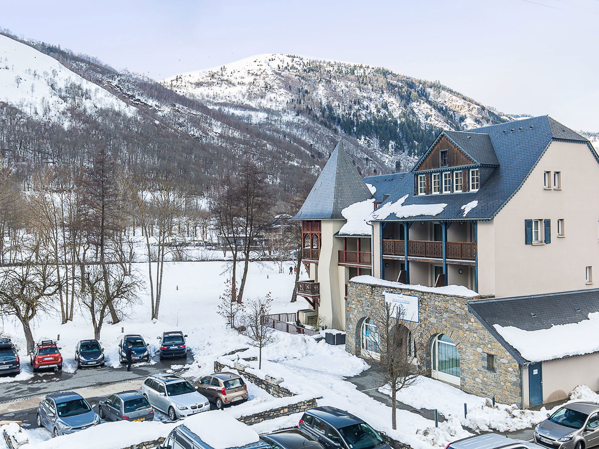 Residence "Les Jardins de Balnéa". 5 houses in the residence. 69 apartments in the residence. In the centre of Loudenvielle, 200 m from the lake. In the complex: reception. Parking (limited number of spaces). Grocery 50 m, supermarket, bar, thermal baths "Centre Thermo-Ludique Balnéa" 100 m. Gondola lift 100 m. Well-known ski regions can easily be reached: Station de Val Louron 8 km, Station de Peyragudes 14 km. Well-known lakes can easily be reached: Lac de Génos-Loudenvielle 200 m. Please note: the photograph shows a typical example.
