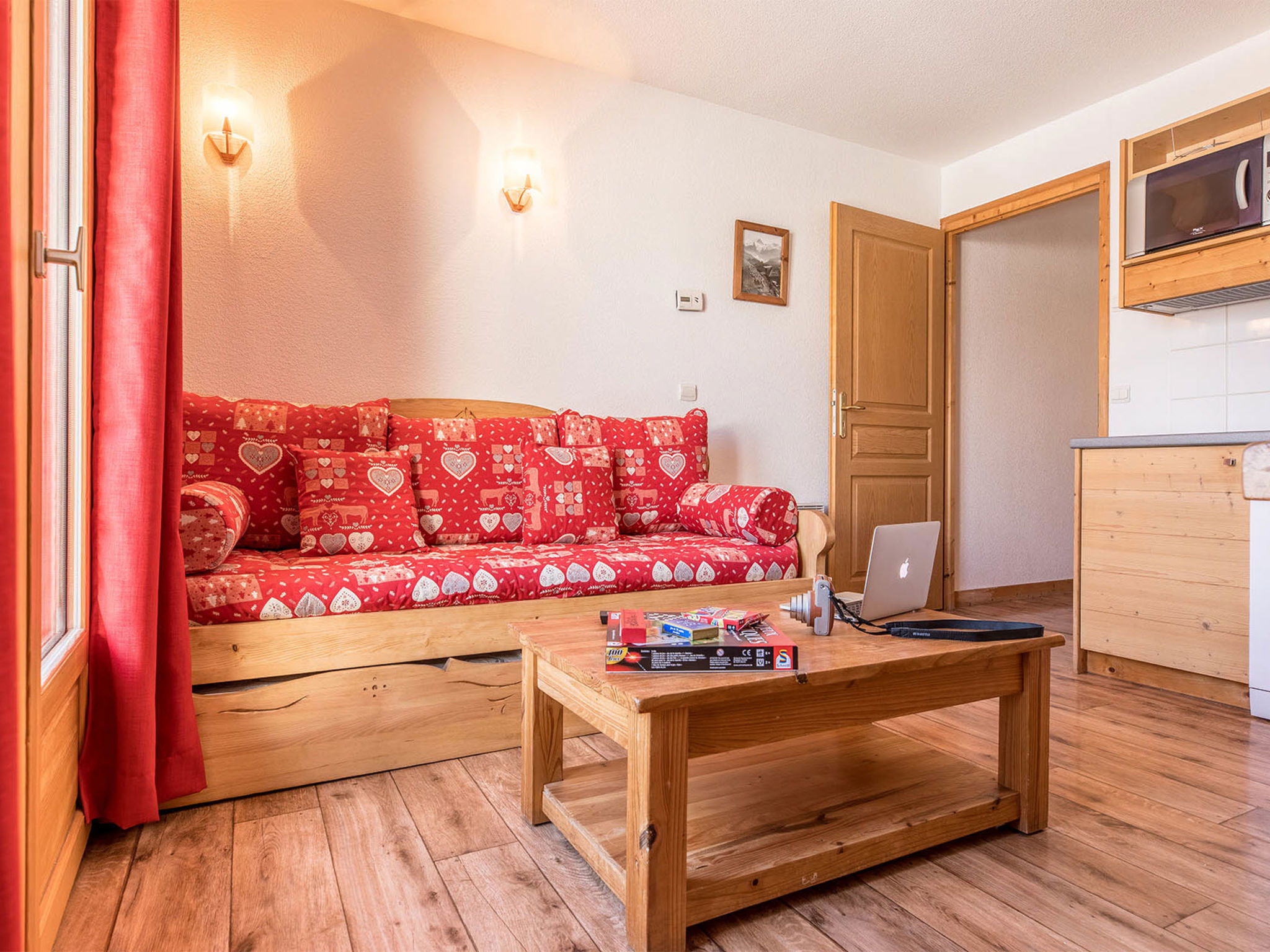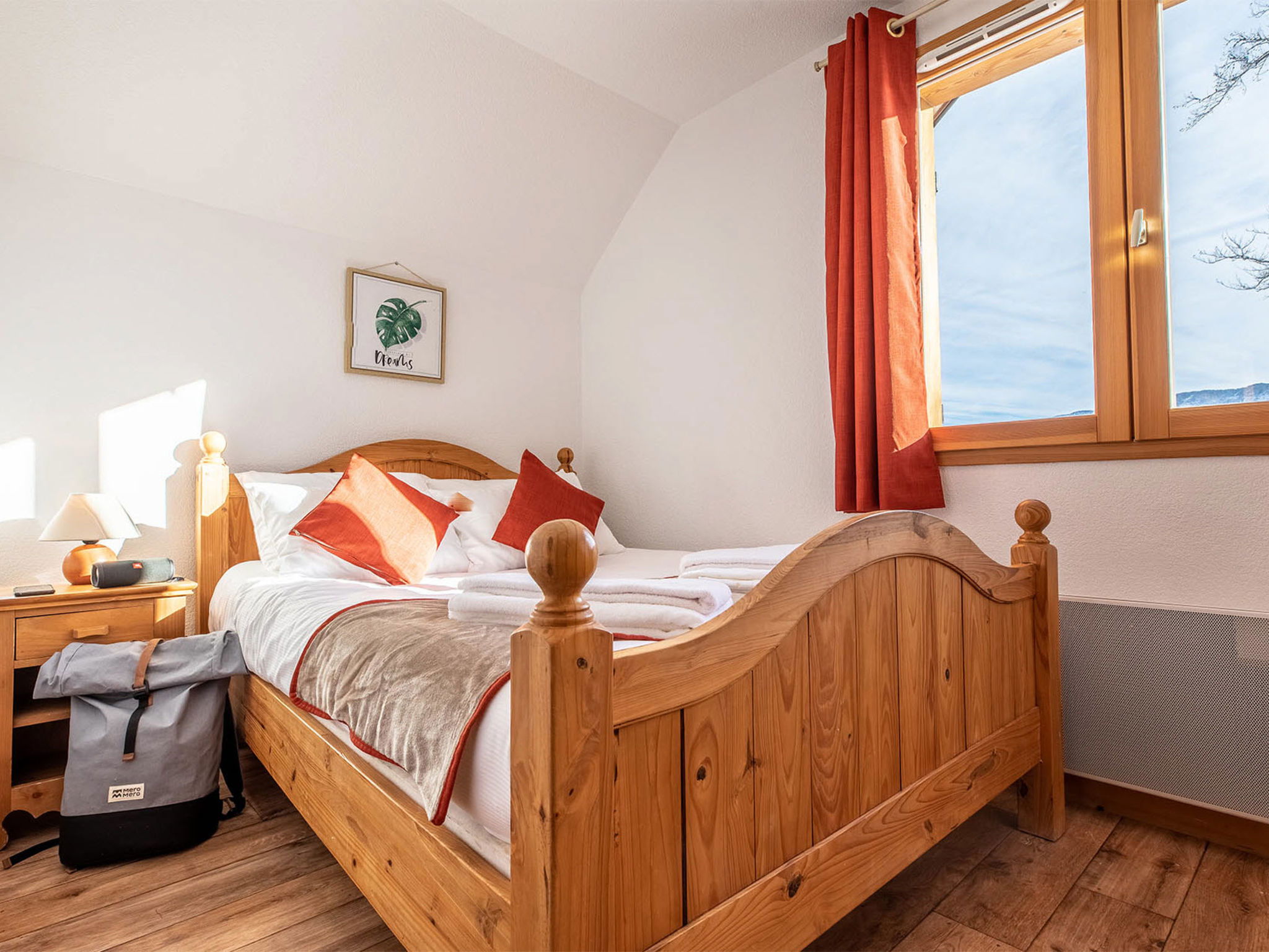 "Les Chalets du Berger", 3-room apartment 42 m2 on 2 levels. Beautiful and cosy furnishings: living/sleeping room with 1 pull-out bed (2 pers.), dining table and TV. Open kitchen (2 hot plates, dishwasher, toaster, kettle, microwave, electric coffee machine). Sep. WC. Upper floor: 1 room with 1 french bed. 1 room with 2 beds. Bath/WC or shower/WC. Balcony or terrace. Facilities: hair dryer. Internet (WiFi, free). Please note: non-smokers only. Maximum 2 pets/ dogs allowed.