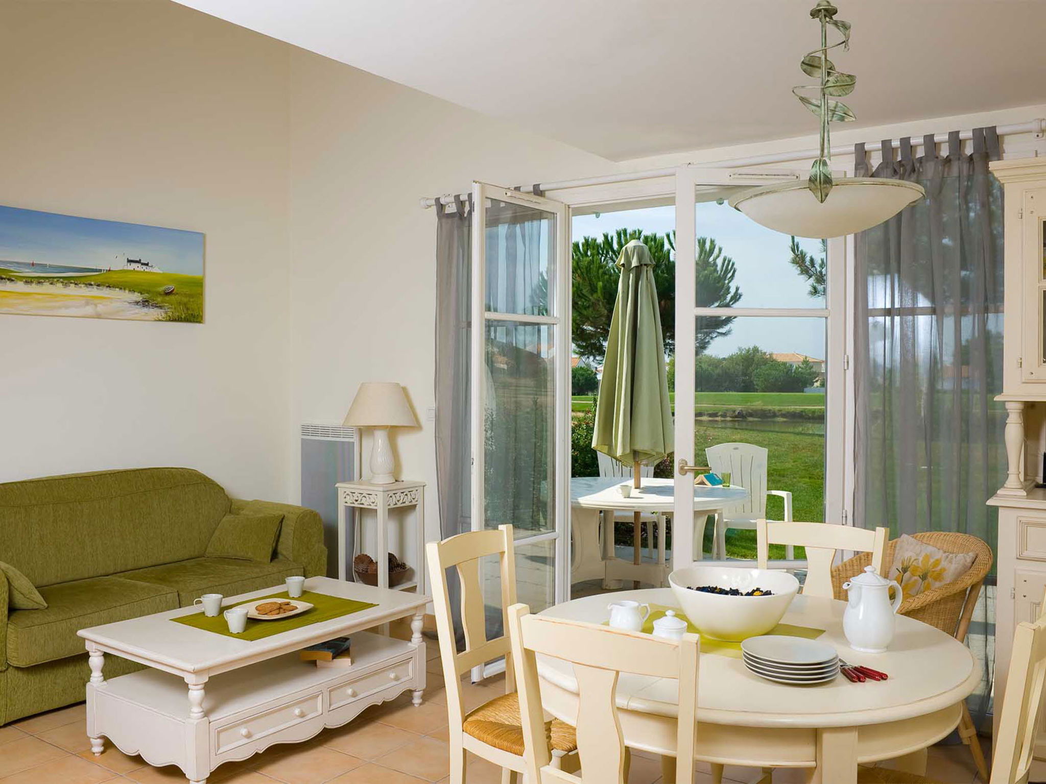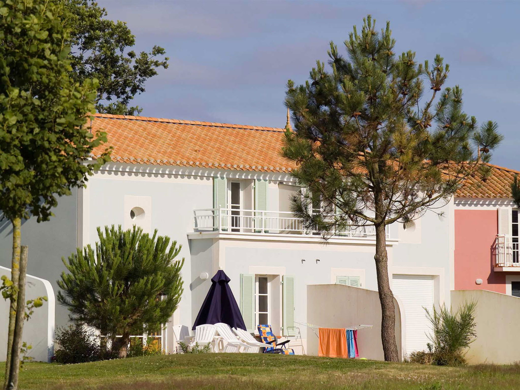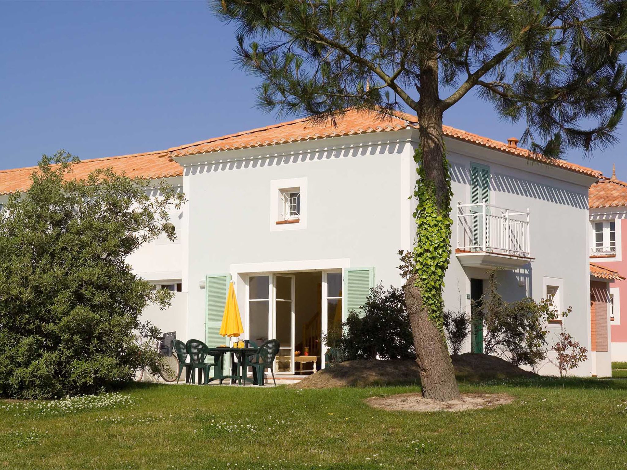 Beautiful, cosy resort "Le Domaine de Fontenelles", 4 storeys. 13 km from the centre of St. Gilles-Croix-de-Vie, 3 km from the centre of Coex, outside the resort, 14 km from the centre of Bretignolles-sur-Mer, in a sunny position, 13 km from the sea, in the countryside, on the golf course. For shared use: property with plants, meadow, swimming pool (seasonal availability: 27.May. - 17.Sep.). Unconventional pool shape. Children's pool, outdoor shower, boccia, terrace. In the complex: reception, WiFi, lift, washing machine, tumble dryer (for shared use, extra). Bread roll service. Parking (limited number of spaces). Shop 5 km, sandy beach 13 km. Golf course (18 hole) 100 m. Please note: Loading and unloading of baggage is possible at the holiday house. The photograph shows a typical example. The holiday properties may differ in living space, floorplan, equipment and furnishing. Wi-fi only at the reception.