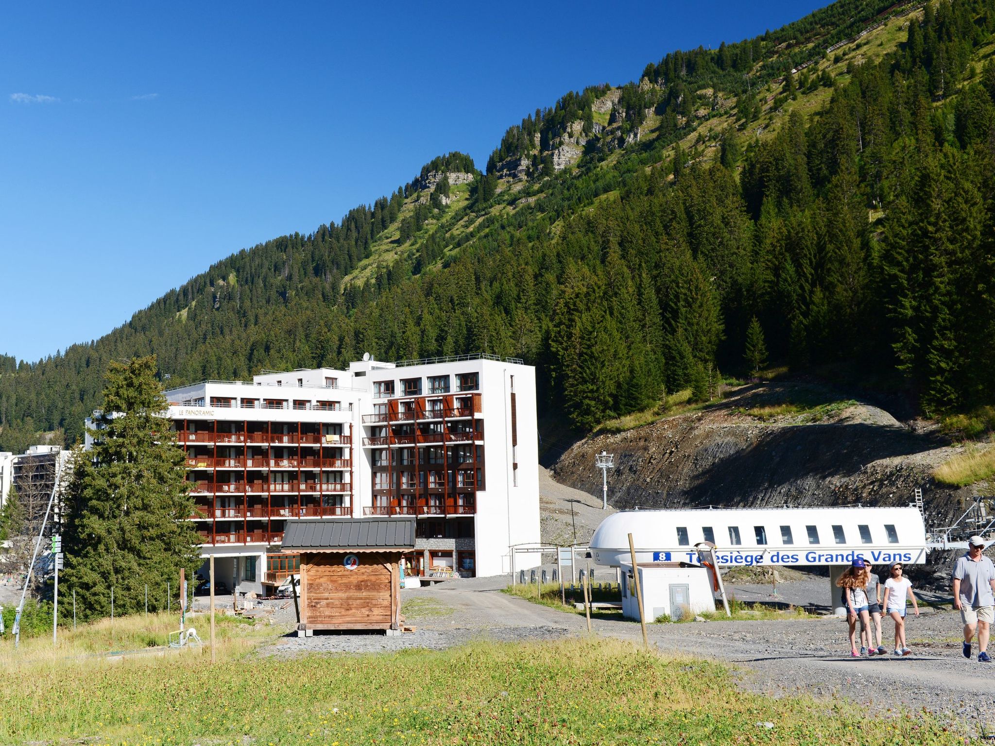 Large, modern residence "Odalys - Le Panoramic", 8 storeys, built in 2014. 56 apartments in the residence. In the district of Flaine Forêt 28 km from the centre of Cluses, in a central position, directly by the skiing area. For shared use: indoor pool heated (5 x 8 m, depth 85 - 135 cm, seasonal availability: 01.Jul. - 31.Aug.). In the complex: reception, sauna (extra). Steam room (extra). Lift, storage room for skis, washing machine, tumble dryer (for shared use, extra). Bread roll service. Communal covered parking (extra) at the house. Parking space or garage only for small to medium-sized cars. Dimension: height 205 cm. Shop 100 m, grocery, restaurant, bar, railway station "Cluses" 28.5 km. Walking paths from the house, chair lift 20 m, slopes 20 m, ski rental 100 m. Well-known ski regions can easily be reached: Le Grand Massif. Please note: In case of good snow conditions, the house is accessible on skis. The photograph shows a typical example. The holiday properties may differ in living space, floorplan, equipment and furnishing.