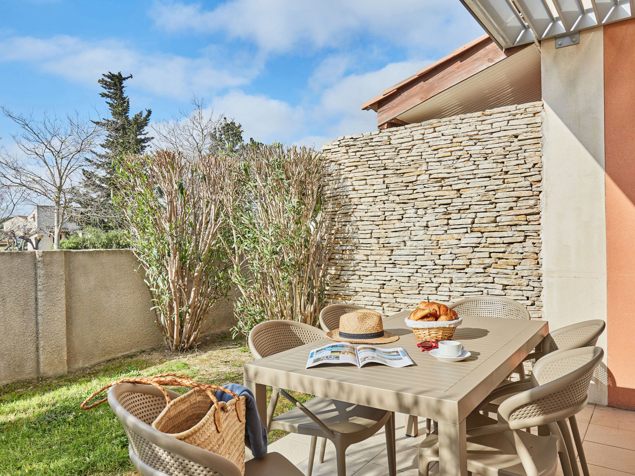 Beautiful resort "Odalys RéférenceLe Mas des Flamants". 64 houses in the residence. 1 km from the centre of Aigues Mortes, 31 km from the centre of Montpellier, 38 km from the centre of Nîmes, 7 km from the sea. For shared use: property (fenced) with plants, swimming pool heated (11 x 8 m, seasonal availability: 15.Apr. - 15.Sep.). Children's pool. In the complex: reception, washing machine (for shared use, extra). Parking on the premises. Shop 1 km, sandy beach 7 km. Please note: the photograph shows a typical example. The holiday properties may differ in living space, floorplan, equipment and furnishing.