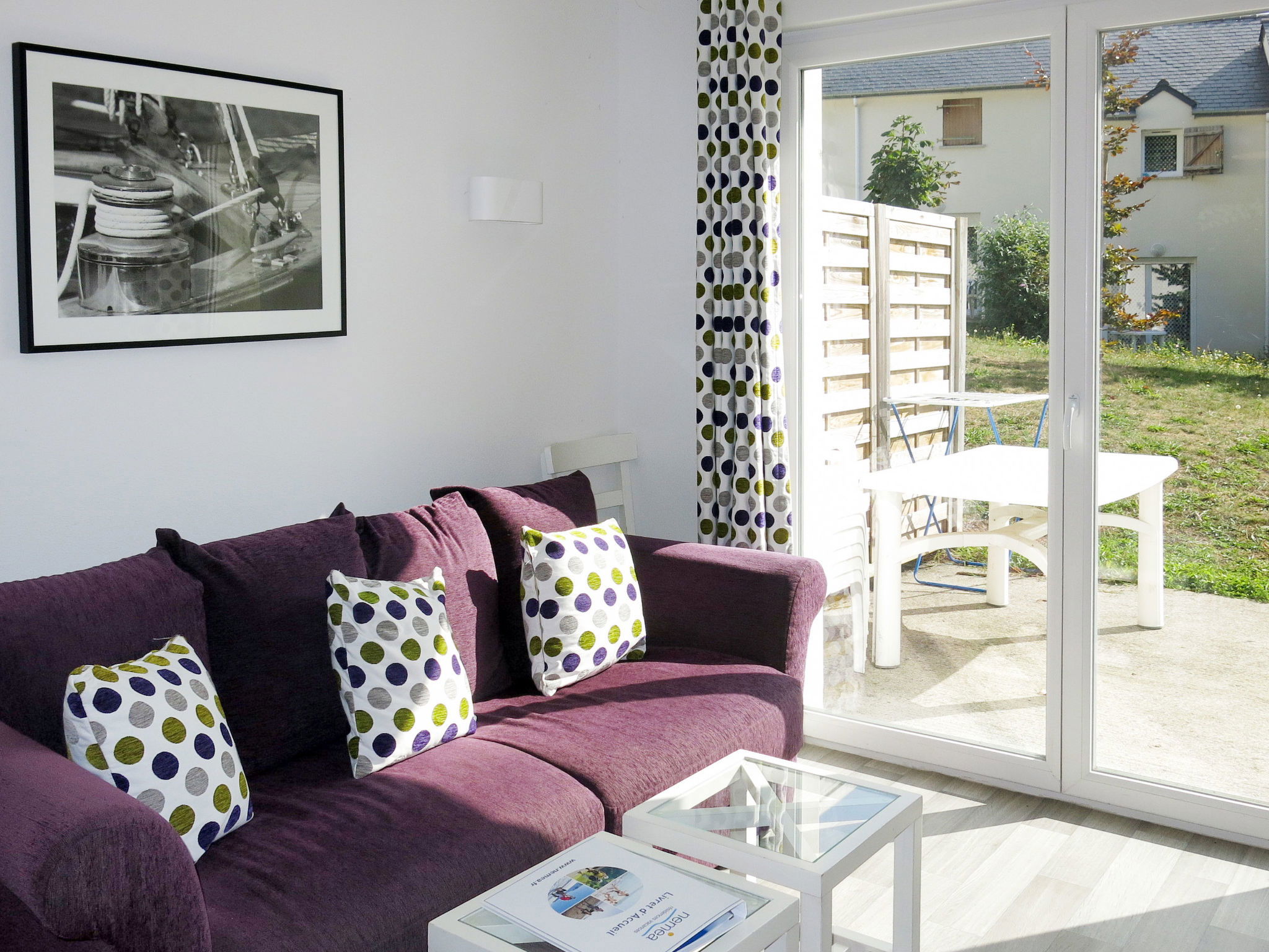 Child friendly resort "Domaine de la Baie". 118 apartments in the residence. 2 km from the centre of Audierne, 22 km from the centre of Douarnenez, 40 km from the centre of Quimper, 3 km from the sea. For shared use: property 6 ha, park with lawn and trees, meadow, 2 swimming pools heated (seasonal availability: 03.Apr. - 07.Nov. and 24.May. - 14.Sep.). Terrace. In the complex: reception, internet access, WiFi, fitness room, table tennis, washing machine, tumble dryer (for shared use, extra). Parking on the premises. Shop 50 m, supermarket 3 km, bus stop 2 km, sandy beach 3 km. Please note: the photograph shows a typical example. The holiday properties may differ in living space, floorplan, equipment and furnishing.