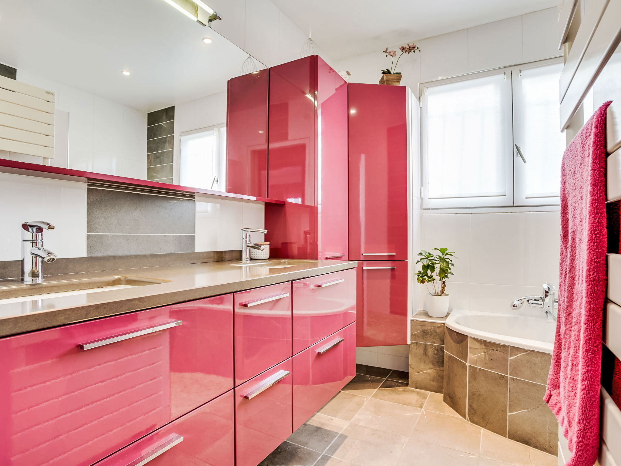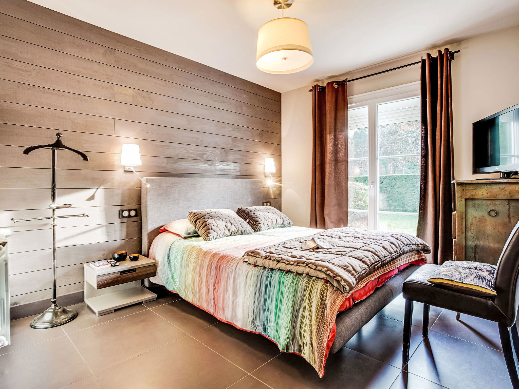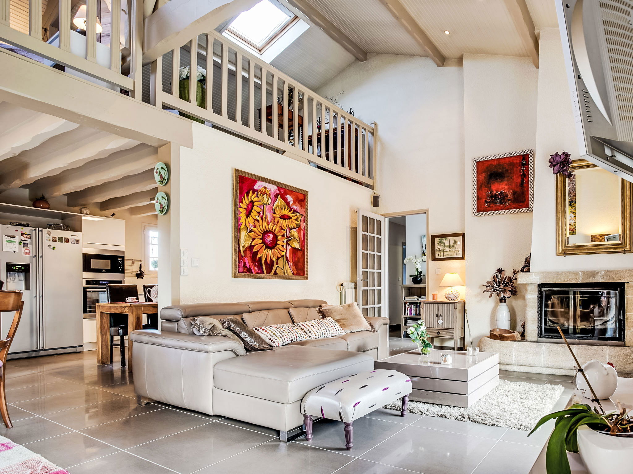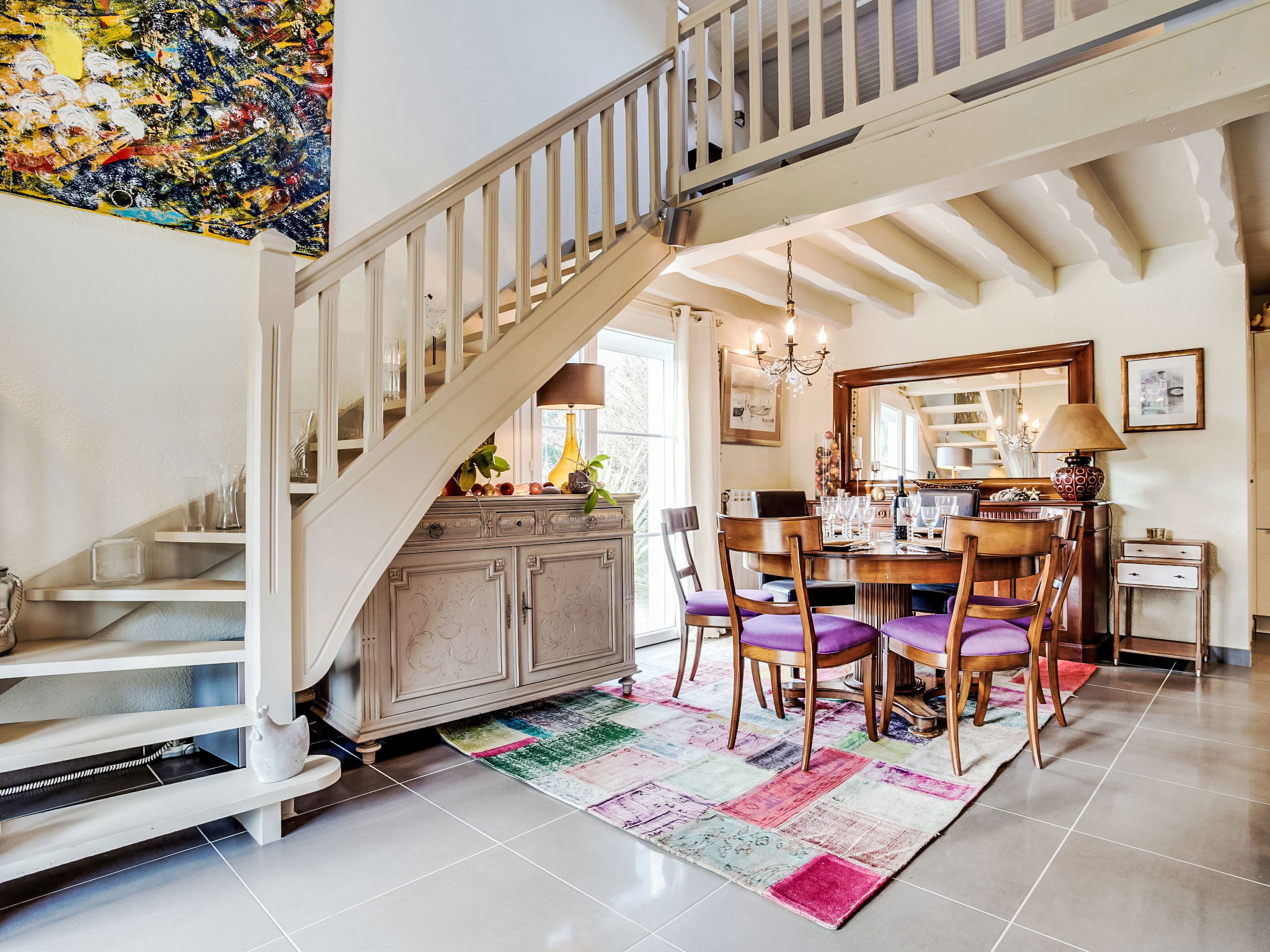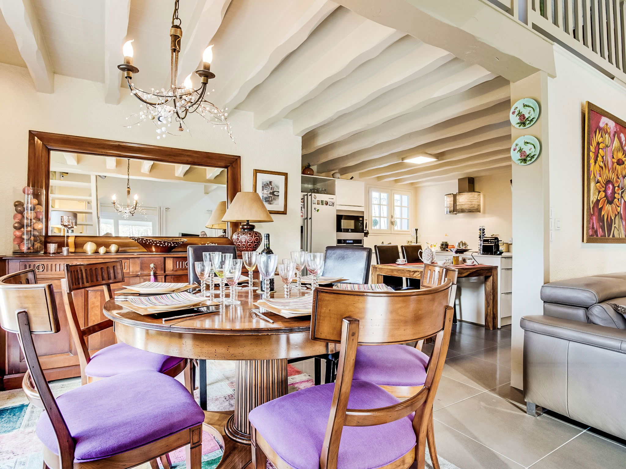 3-room house 115 m2 on 2 levels. Renovated in 2014, very practical and beautiful furnishings: open living/dining room with TV and international TV channels (flat screen), heating stove and electric shutters. Exit to the terrace. 1 room with 1 french bed (140 cm, length 190 cm), TV (flat screen), electric shutters. 1 large room with Dressing room with 1 double bed (2 x 80 cm, length 200 cm), hand-basin, shower/WC and TV (flat screen). Exit to the terrace. Open kitchen 15 m2 (oven, dishwasher, 4 induction hot plates, toaster, kettle, microwave, freezer, electric coffee machine, Capsules for coffee machine (Moulinex) extra). Bath/shower, sep. WC, double hand-basin. Upper floor: 1 open room with sloping ceilings with 1 sofabed (140 cm, length 190 cm). Wooden floors. Terrace 20 m2, south facing position and, east facing position. Terrace furniture, barbecue. Facilities: washing machine, dryer, children's high chair, baby cot. Internet (WiFi, free). Please note: non-smokers only. Maximum 1 pet/ dog allowed. Smoke alarm. FR59800