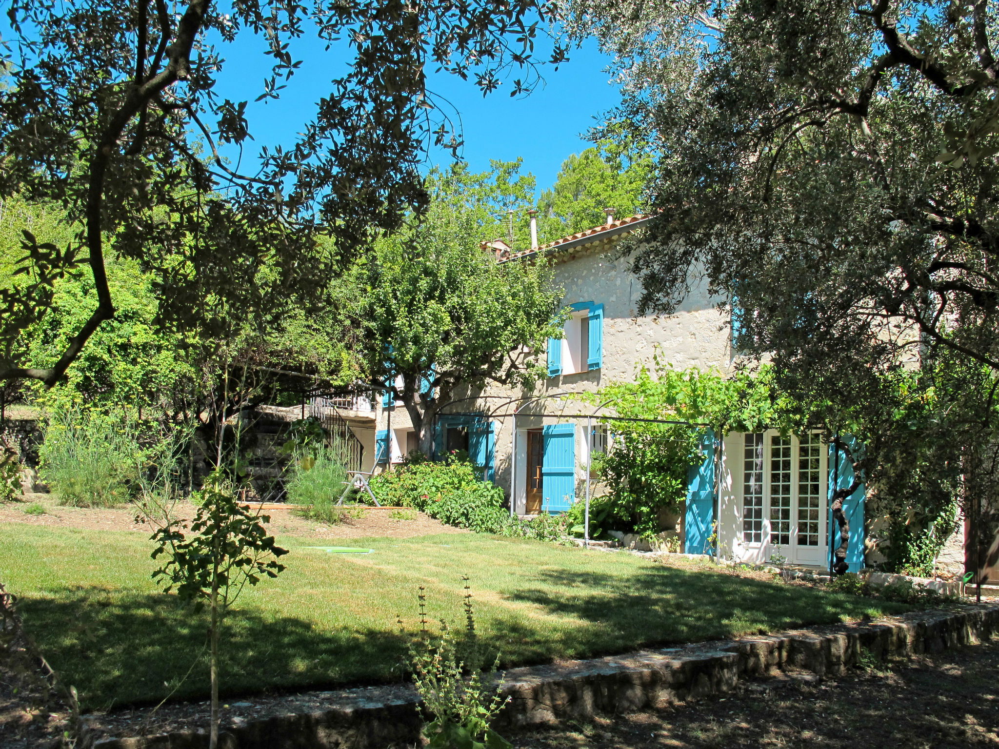 Beautiful, cosy, rustic house "Mas de l'Adrech", surrounded by trees and meadows. 3.5 km from the centre of Fayence, 41 km from the centre of Cannes, in the countryside. Private: garden 1 ha (not fenced) with wildlife garden and trees, natural garden, meadow, parking (for 3 cars) on the premises. Shop 2 km, bus stop 2 km, railway station "Cannes" 4500 km, sandy beach "Fréjus" 33 km, bathing lake "Lac de Saint Cassien" 20 km. Golf course (18 hole) 10 km. Nearby attractions: Gorges du Verdon. Well-known lakes can easily be reached: Saint Cassien. There is a not-secured water pool on the neighboring estate (approx. 100 m).