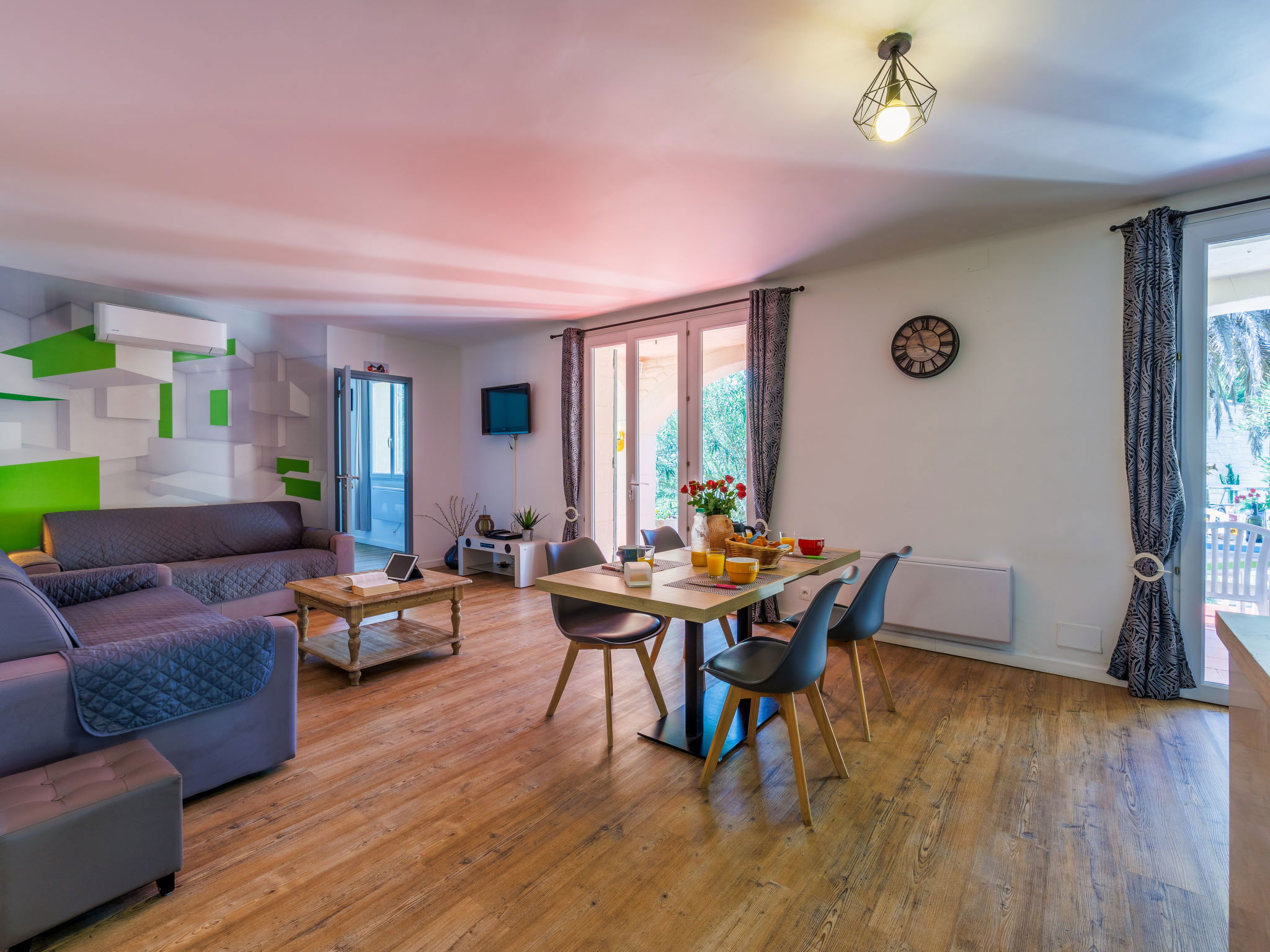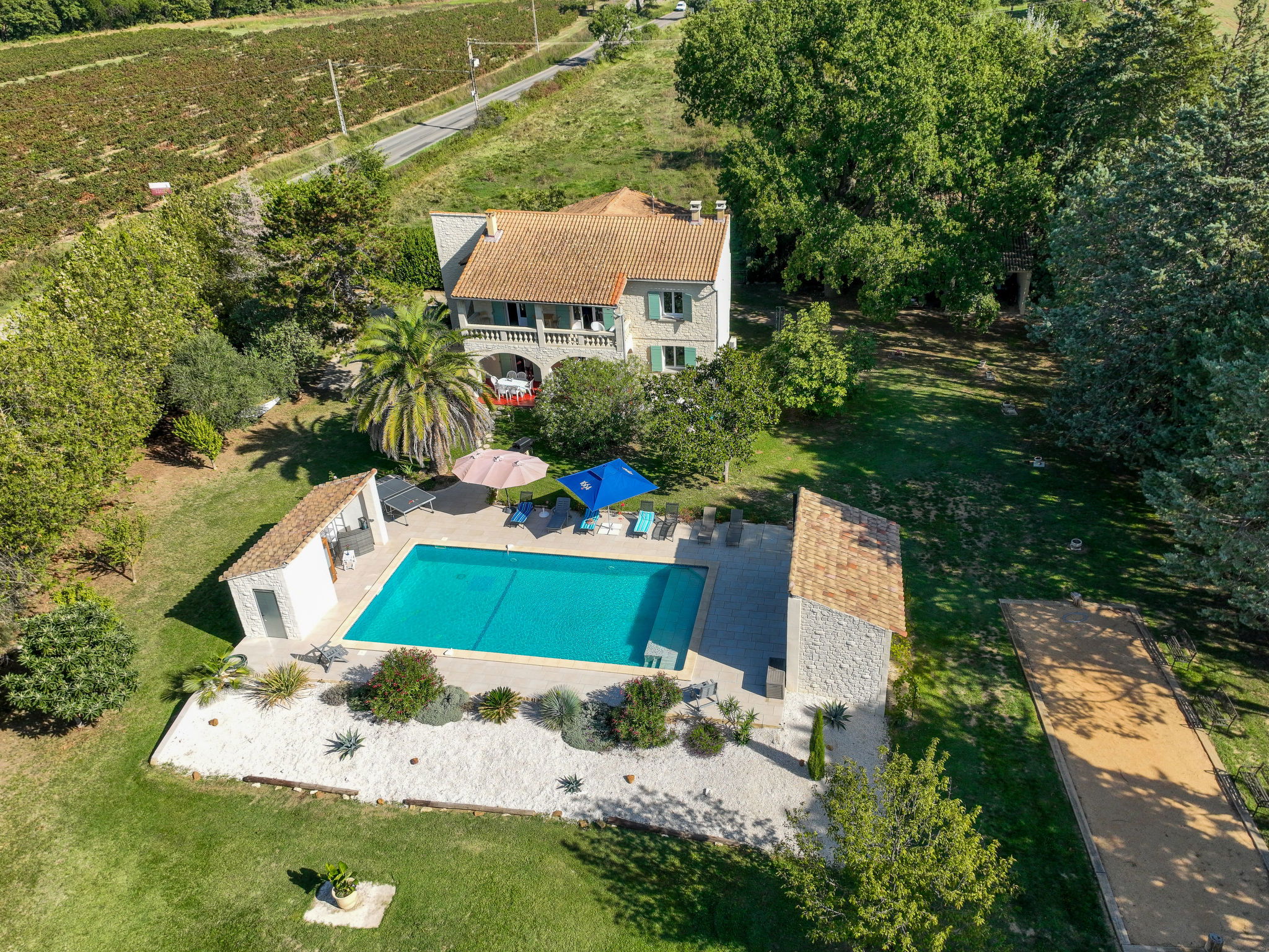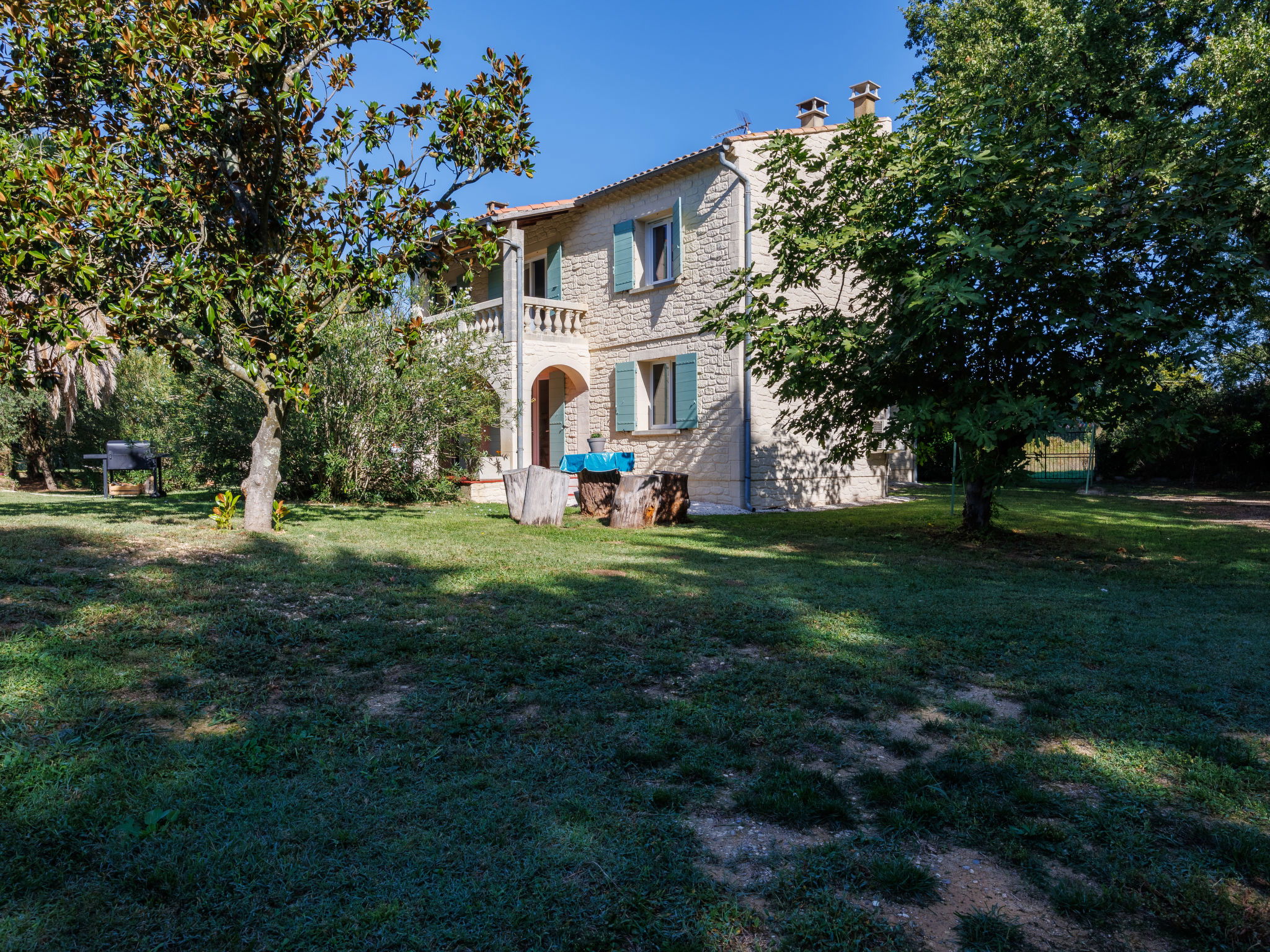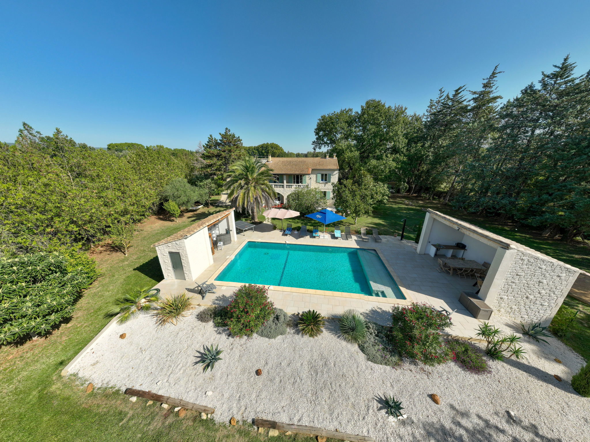 Uzès: Beautiful single-family house "L'Aouzet", 2 storeys, surrounded by trees. On the outskirts, 3 km from the centre of d'Uzès, in a secluded, quiet position, 73 km from the sea, 10 km from the lake, south facing position. Private: well-kept garden 3'000 m2 (fenced) with lawn and wildlife garden, swimming pool angular, heated, with privacy (12 x 6 m, depth 100 - 190 cm, seasonal availability: 01.May. - 15.Oct.) with alarm system. Outdoor shower, pool house, boules, badminton, garden furniture, barbecue, pool maintenance by the owner/gardener. In the house: table tennis, table football, trampoline. Parking (for 3 cars). Shop 3 km, grocery 3 km, supermarket 3 km, bakery 3 km, bus stop "Mairie" 1.5 km, bathing lake "Lac de la Bouscarasse" 10 km. Sports harbour 36 km, golf course (9 hole) 6 km, tennis 3 km, riding stable 15 km. Nearby attractions: Arènes de Nîmes 27 km, Vignobles de Tavel 24 km, Le Pont du Gard 15 km, Palais des Papes d'Avignon 40 km, Musée 1900 6 km, Musée du Bonbon 5 km. Well-known lakes can easily be reached: Lac Dupuy 10 km. Hiking paths: Sentier des Capitelles 2.5 km, La Vallée de l'Eure à Uzès 1.4 km, Le Belvédère des Garrigues 1.5 km. Please note: baby equipment (included).