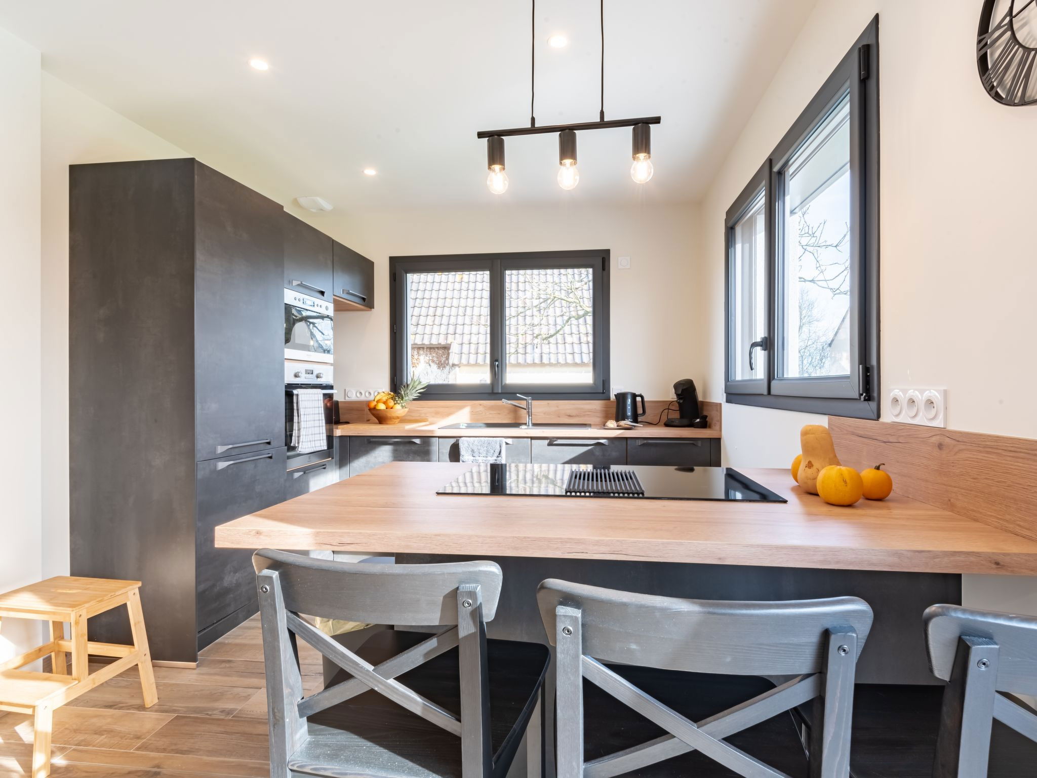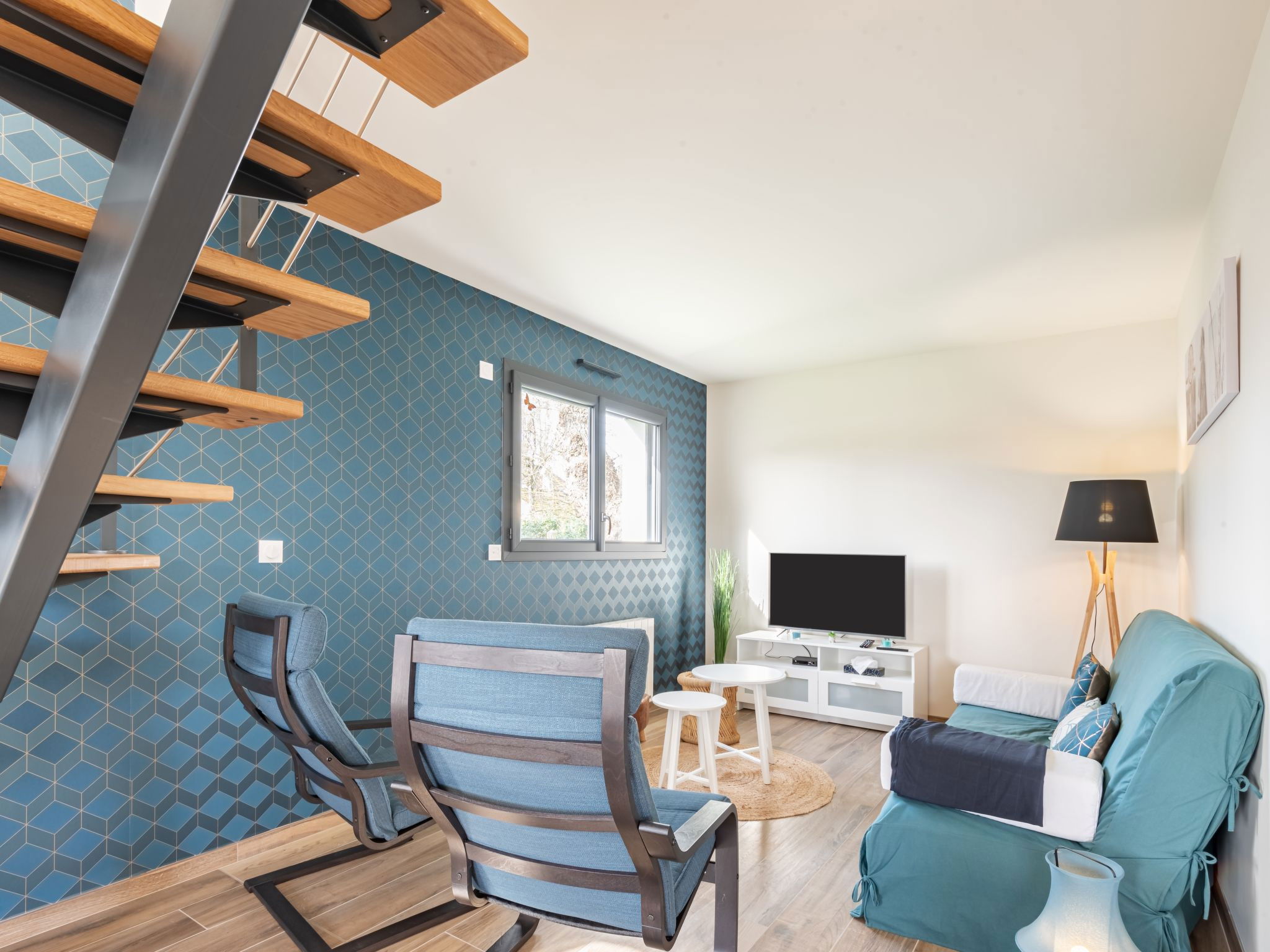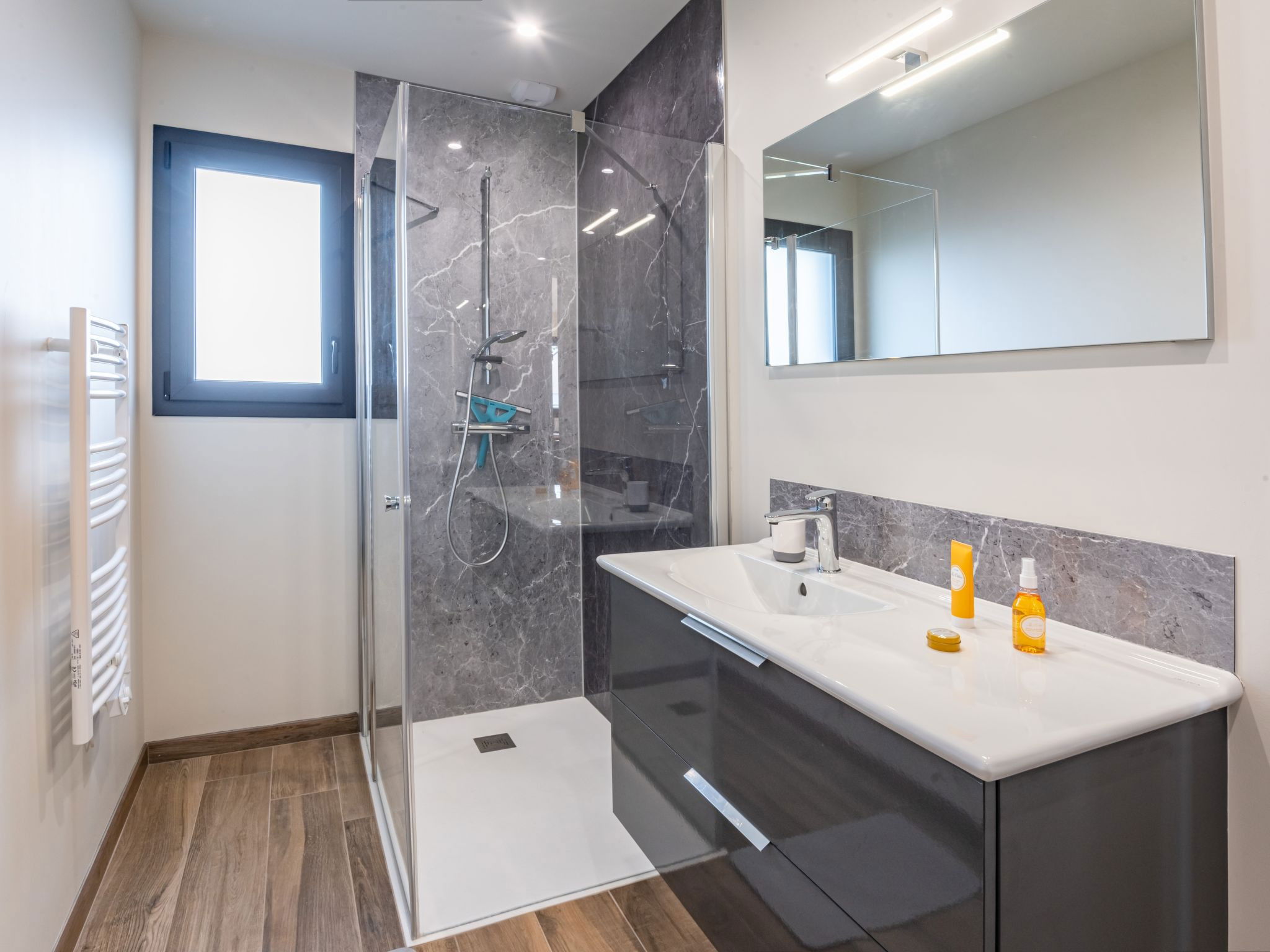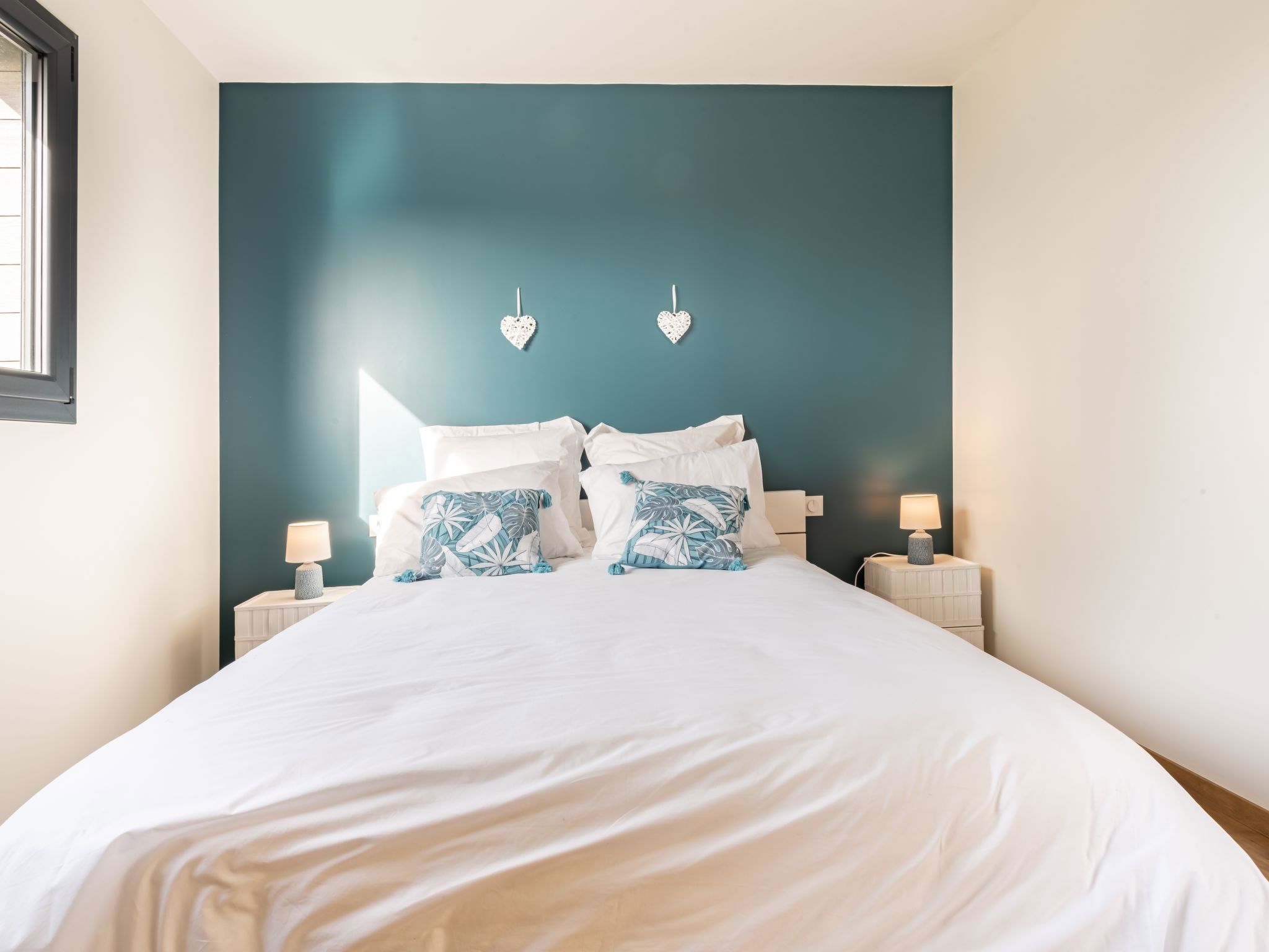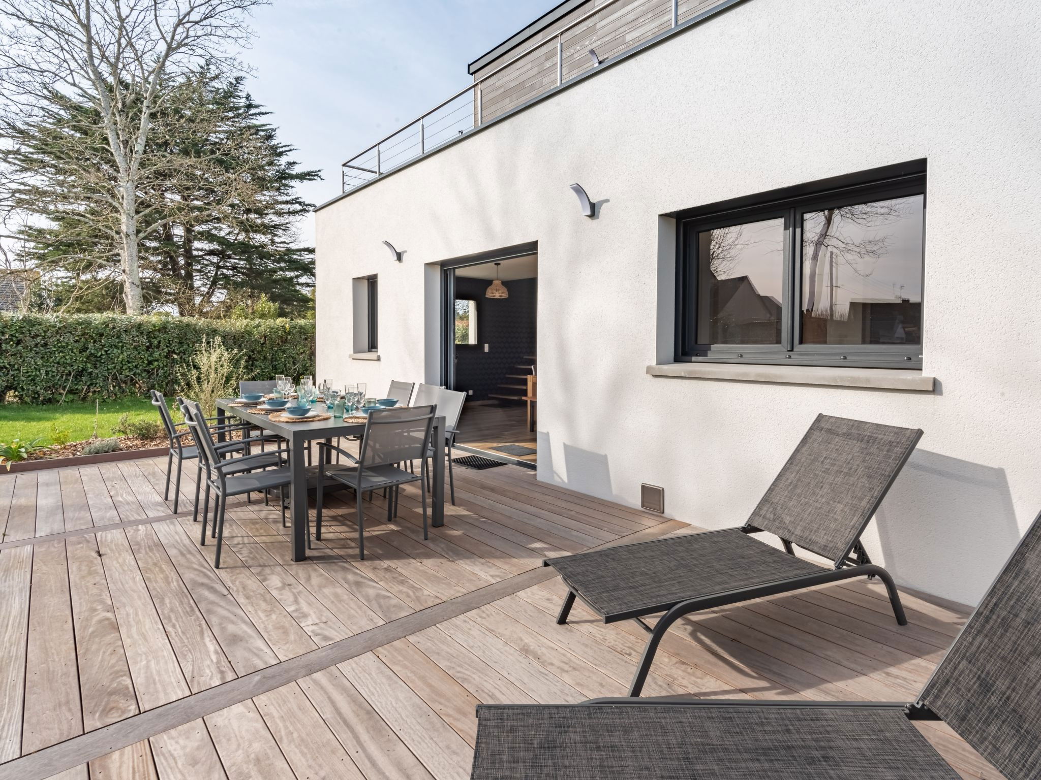 "Les Trembles", 4-room house 117 m2 on 2 levels. Spacious and bright, beautiful and modern furnishings: living/dining room with TV (flat screen), electric heating. Exit to the terrace. 1 room with 1 french bed (1 x 140 cm, length 190 cm), separate WC and shower. Open kitchen (oven, 4 induction hot plates, toaster, kettle, microwave, electric coffee machine). Upper floor: 1 room with 1 french bed (140 cm, length 190 cm). Exit to the terrace. 1 room with 1 x 2 bunk beds (90 cm, length 190 cm). Bathroom, sep. WC. Terrace 30 m2, terrace 24 m2. Terrace furniture, barbecue, deck chairs (6). Facilities: washing machine. Internet (WiFi). Please note: non-smokers only. Smoke alarm, fire extinguisher.