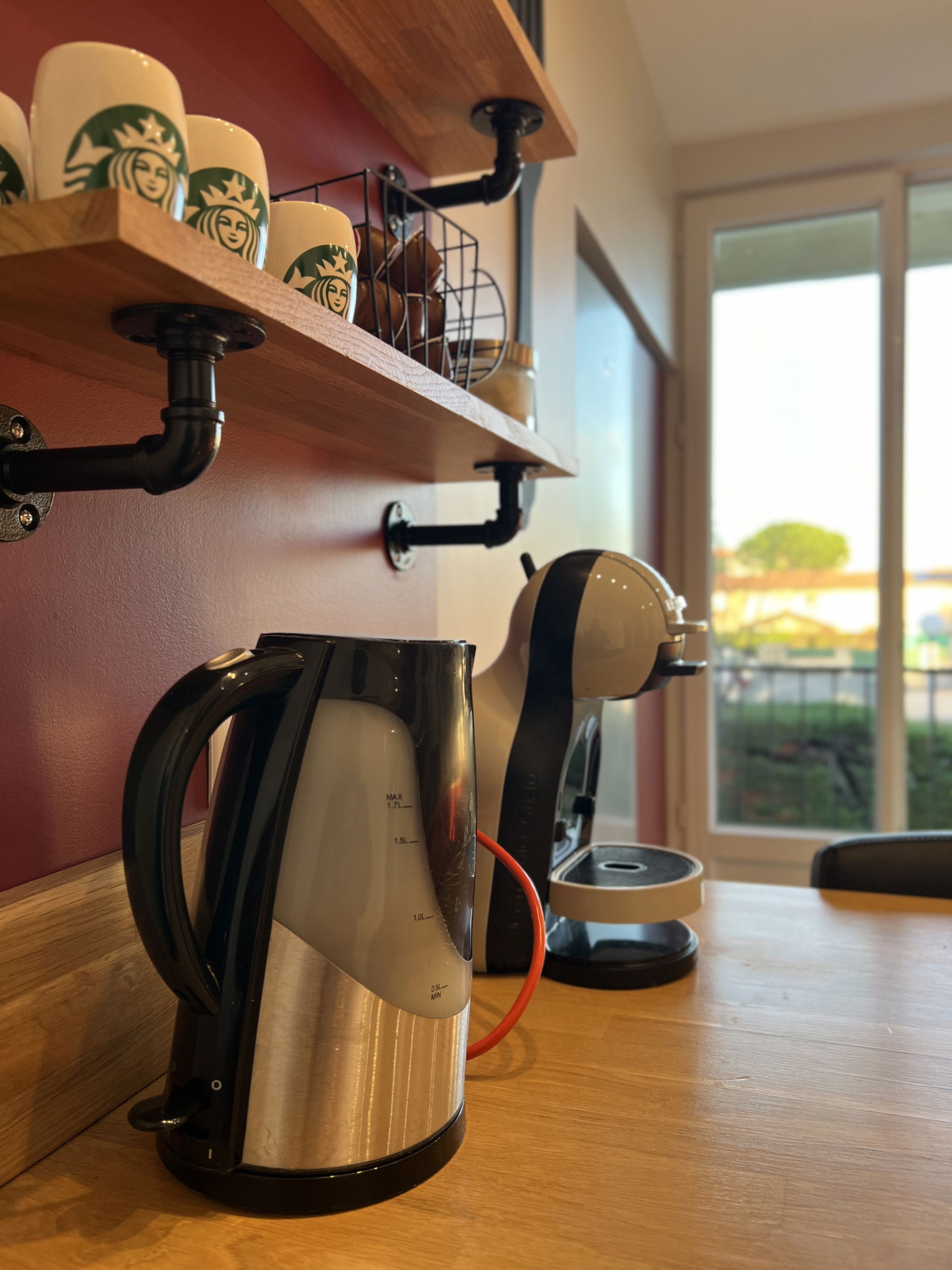 The independent kitchen, electric, is equipped with refrigerator, microwave, oven, freezer, dishwasher, dishes/cutlery, kitchen utensils, coffee machine, toaster and kettle.