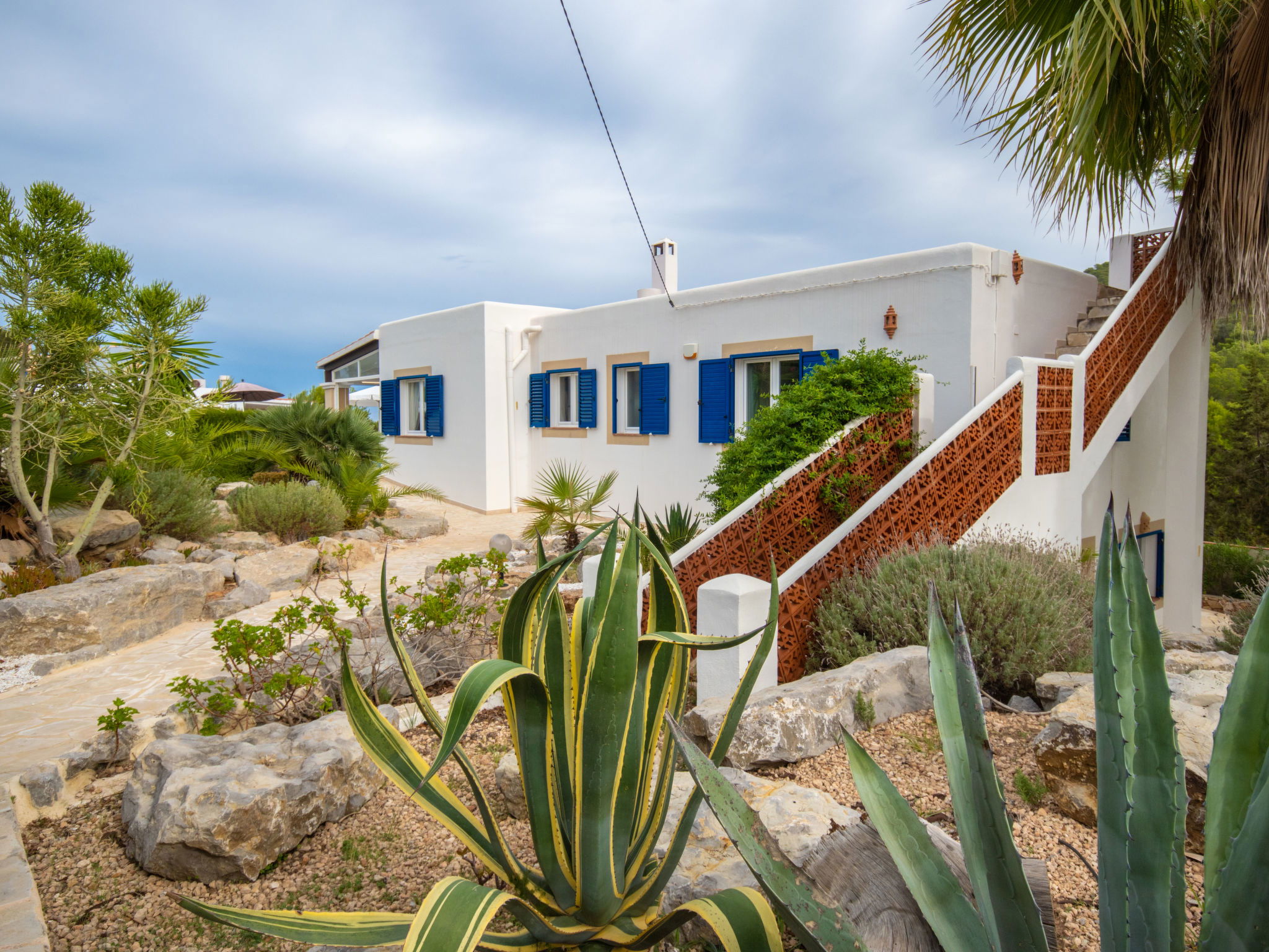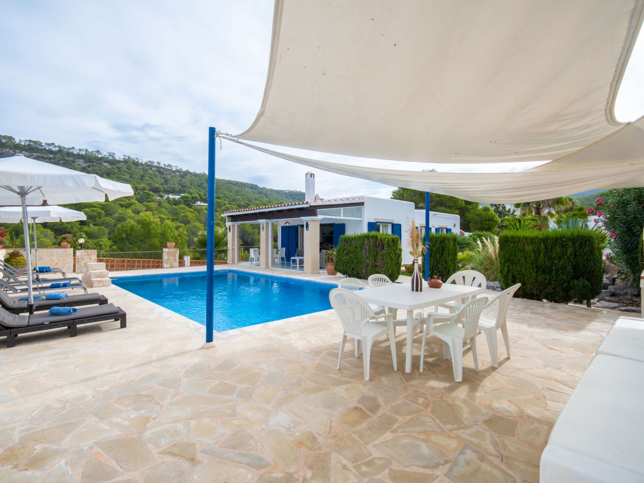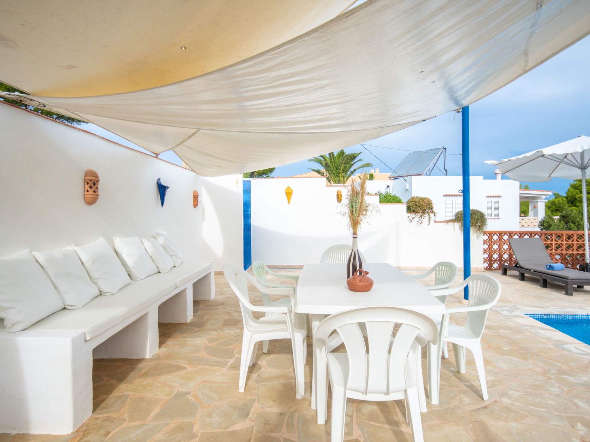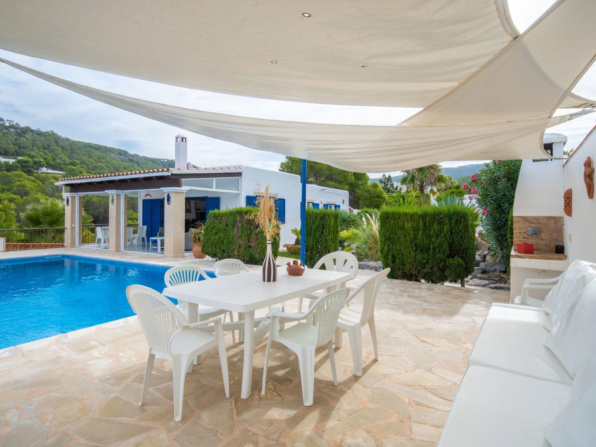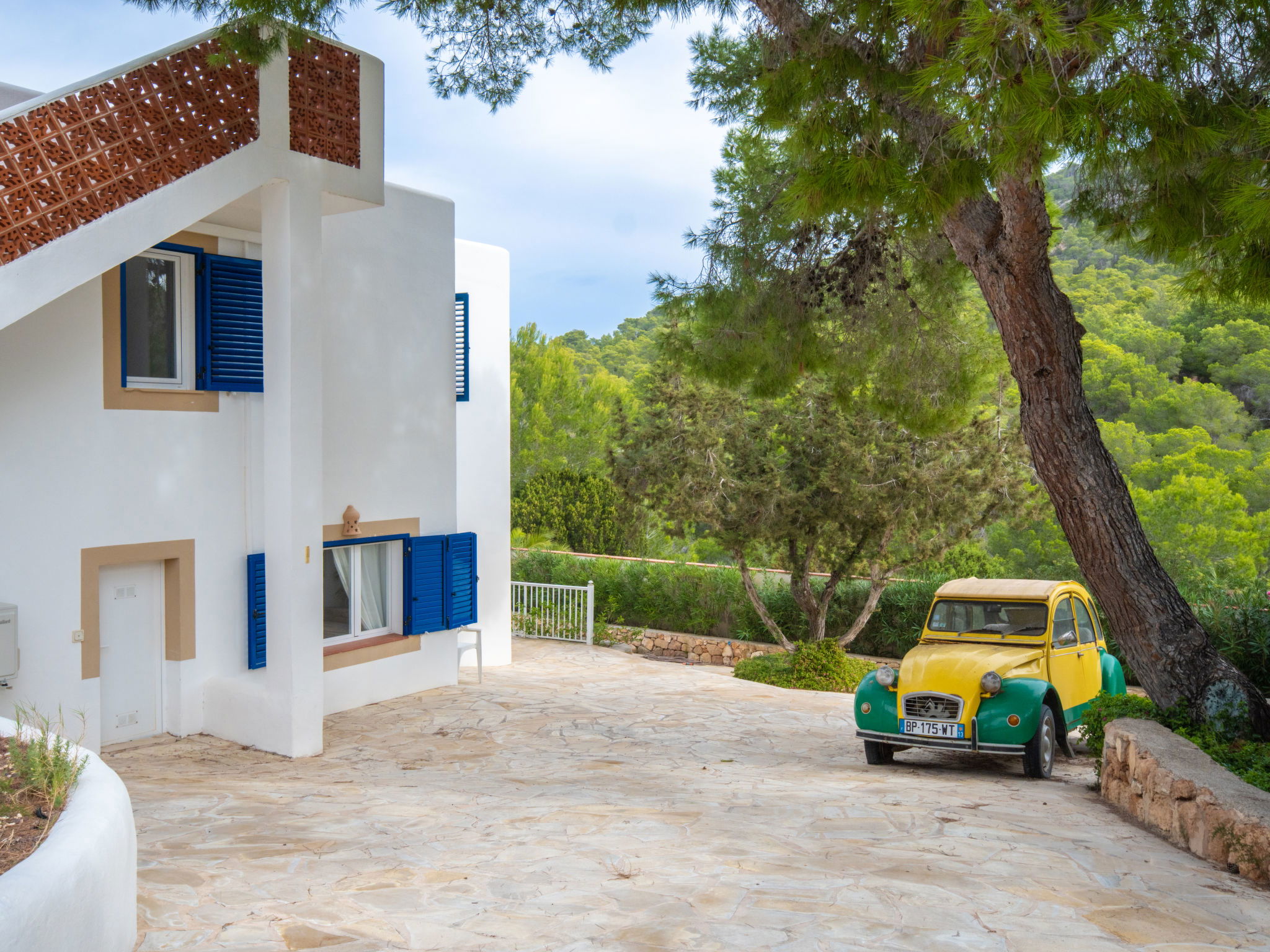 Keep in mind that arrivals after midnight are not possible, arrivals after 22:00 will be charged extra € 30 with a necessary previous notification to the key holder. House "Anromi". Outside the resort, 1.5 km from the centre of Cala Vedella, in an elevated position, 1.5 km from the sea. Private: property 1'500 m2 (fenced), garden 200 m2 with wildlife garden and trees, swimming pool (6 x 9 m, depth 120 - 240 cm, seasonal availability: 01.Apr. - 30.Oct.). Outdoor shower, terrace (140 m2), garden furniture, barbecue. In the house: WiFi, burglar alarm system. Parking (for 3 cars) on the premises. Shop 1.5 km, grocery, restaurant, bar 400 m, bus stop "Cala Vadella" 1.5 km, sandy beach 1.5 km. Tennis 500 m. Groups of teenagers on request only.