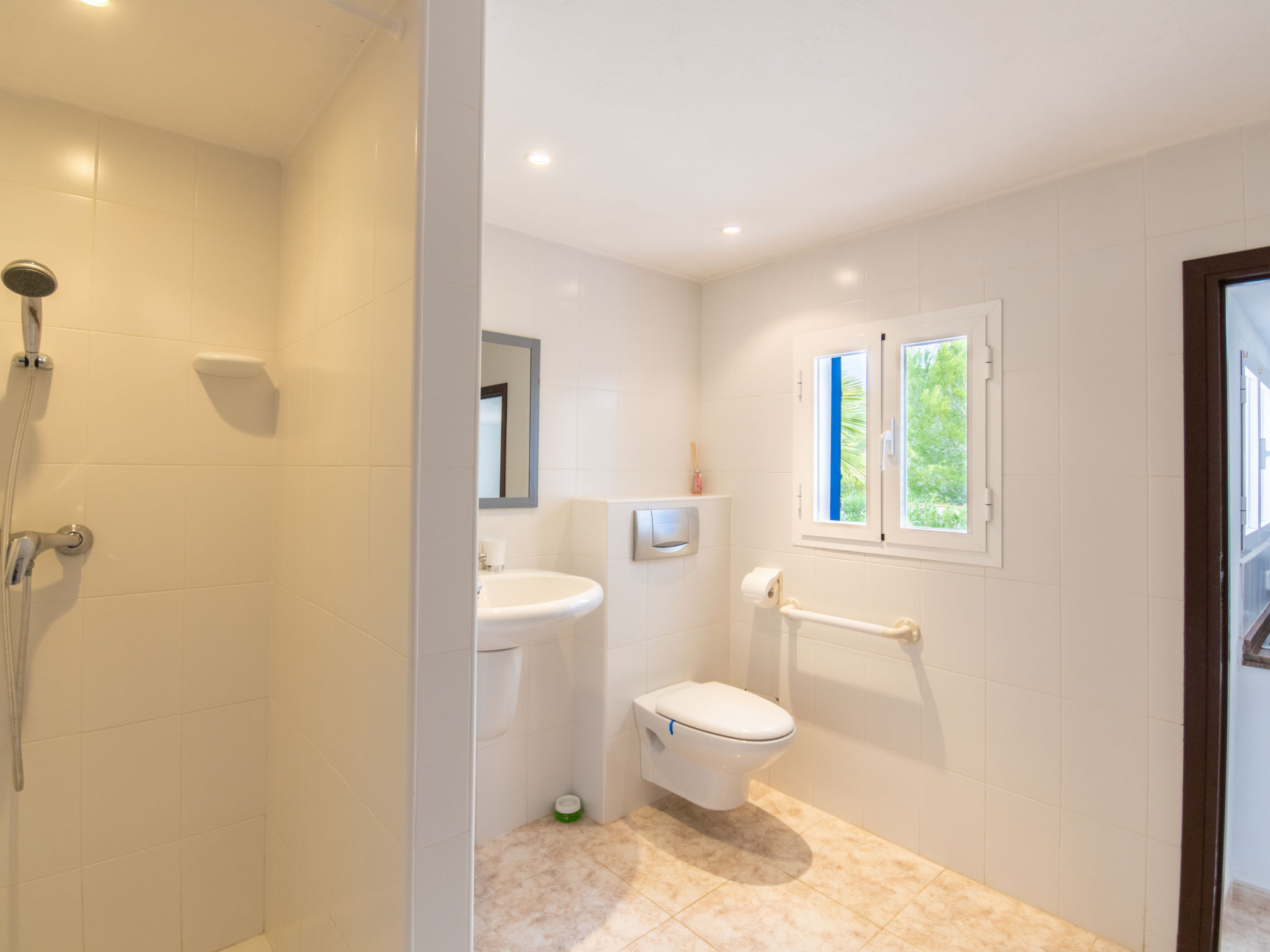 4-room house 150 m2. Practical furnishings: living/dining room with open-hearth fireplace, satellite TV, digital TV and international TV channels. Exit to the swimming pool. 1 room with 2 beds (90 cm, length 200 cm), bath/WC. 1 room with 2 beds (90 cm, length 200 cm), shower/WC. 1 room with 1 french bed (150 cm, length 200 cm), bath/WC. Kitchen (oven, dishwasher, 4 induction hot plates, toaster, kettle, microwave) with hatch. Air-conditioning, forced-air heating (extra). Terrace 22 m2, roofed. Terrace furniture, deck chairs (8), sitting area. Distant view of the sea. Facilities: washing machine, safe, baby cot for up to 3 year olds. Internet (WiFi, free). NOTE: 4 extra people can be accommodated on the ground floor with access via a separate entrance from outdoors. Living room with a double sofa bed. Kitchenette (electric hotplates and fridge). 1 double bedroom. Shower/toilet. Approx. 15 m2 terrace. View of the Colina d'en Real hill. Extra, to be paid locally: 100€/night and 130€/night in July and August and only on request. ETV1749E
