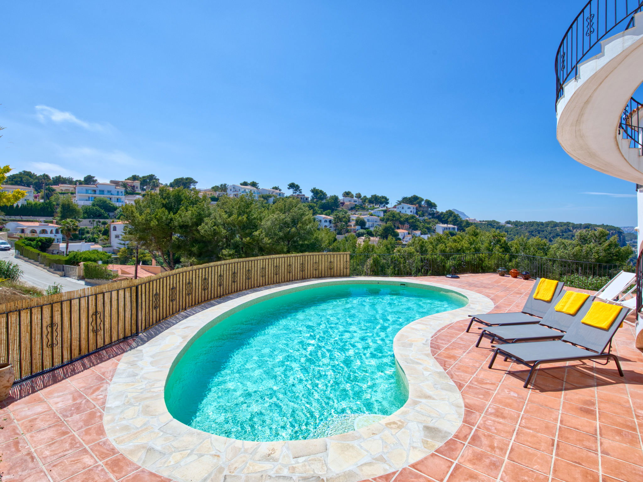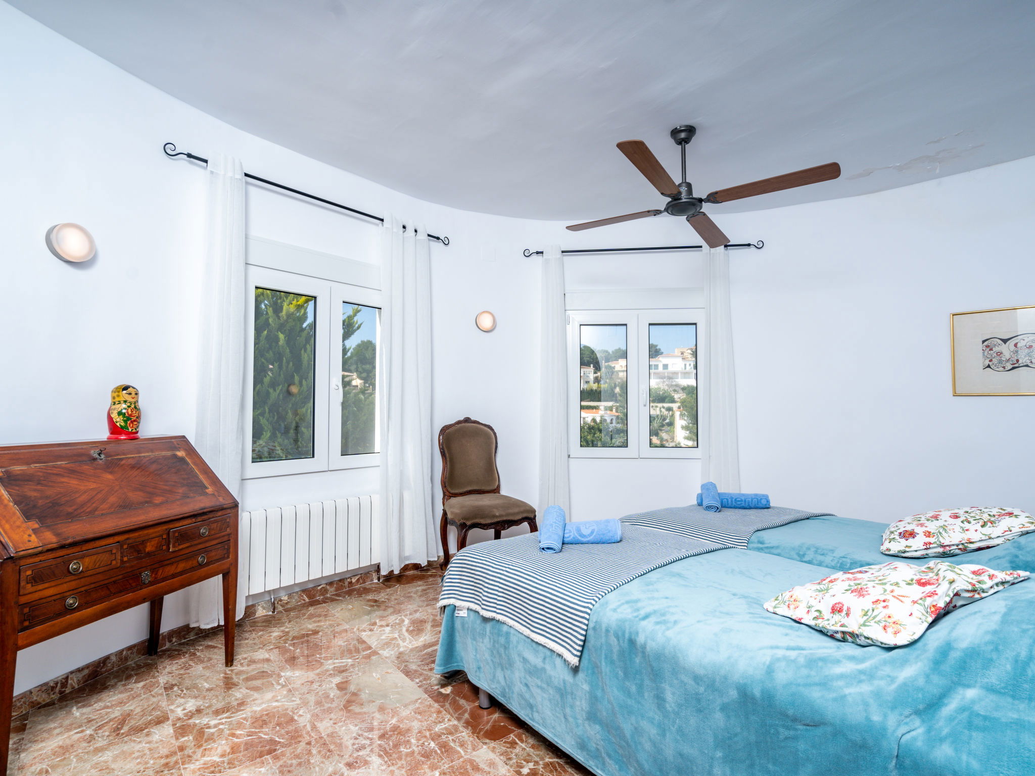 Very beautiful, cosy villa "Los Buhitos". In the district of Balcón al Mar, 3 km from the sea. Private: beautiful garden 1'100 m2 (fenced) wildlife garden and trees, swimming pool (4 x 10 m, seasonal availability: 01.Jan. - 31.Dec.) with internal staircase. Unconventional pool shape. In the house: sun terrace, central heating system. Public parking on the road. Shop 7 km, supermarket 1.5 km, shopping centre 20 km, restaurant 1 km, bar 1 km, bakery 1 km, café 500 m, pub garden 1 km, bus stop 7 km, sandy beach "El Arenal" 7 km pebble beach "La Granadella" 7 km, shingle beach "La Barraca" 3 km, diving center 2 km. Sports harbour 8 km, marina 8 km, golf course (9 hole) 6 km, surf school 7 km, sailing school 8 km, tennis 2 km, riding stable 9 km. The owner does not accept any youth groups.