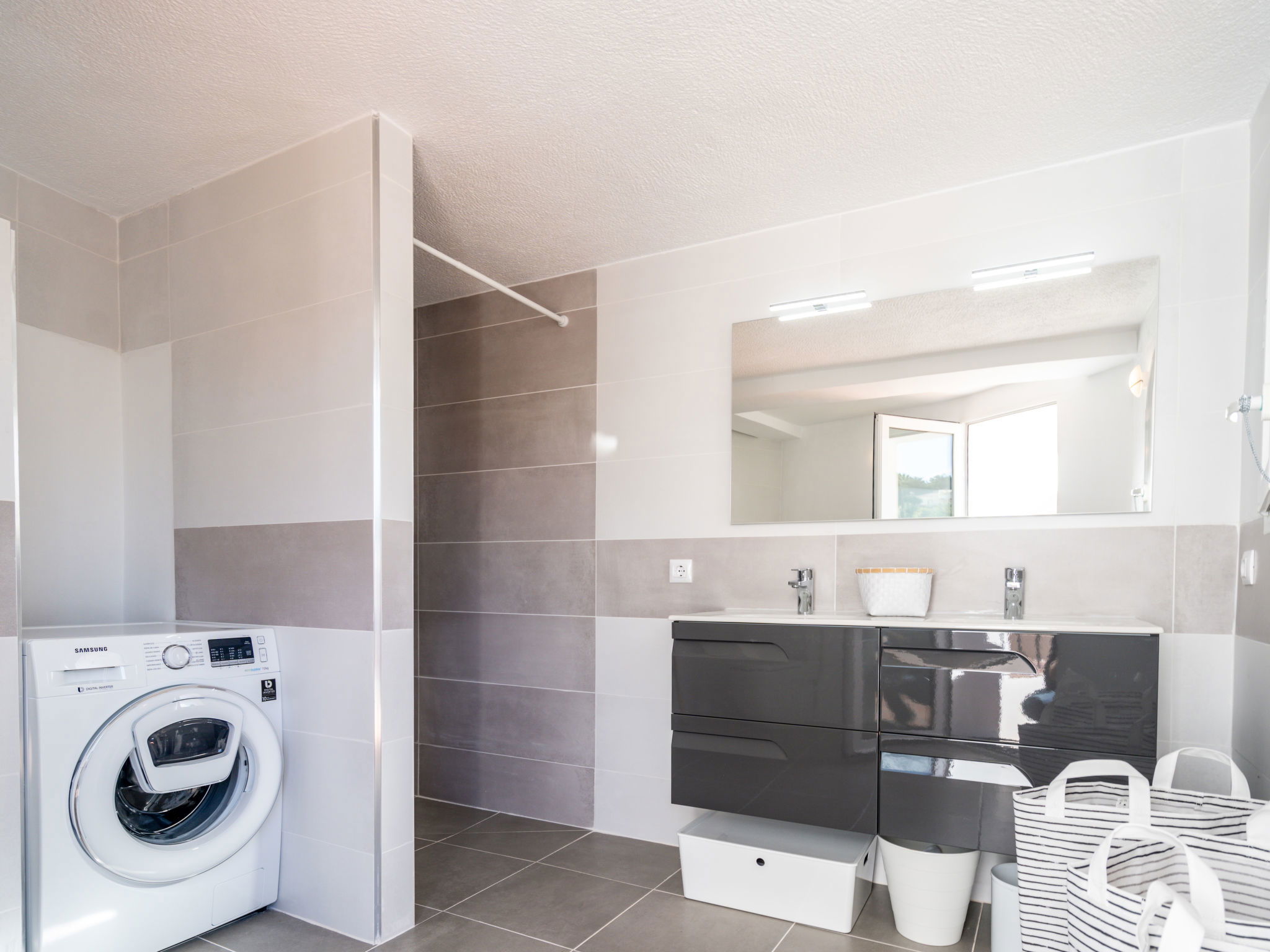 5-room villa 180 m2. Spacious and bright, comfortable and cosy furnishings: living/dining room with satellite TV and air conditioning. Exit to the terrace. 1 room with 1 french bed (180 cm, length 200 cm), shower/WC, double hand-basin and air conditioning. 2 rooms, each room with 2 beds, air conditioning and fan. Kitchen (oven, dishwasher, microwave, freezer). Bath/WC. Heating. On the lower ground floor: shower/WC, double hand-basin. Large terrace 80 m2. Terrace furniture, barbecue, deck chairs (6). Marvellous panoramic view of the sea. Facilities: washing machine, mosquito net. Internet (WiFi, free). Parking (roofed, fenced 2 cars) at the house. Please note: suitable for families. Non-smoking house. R000000001