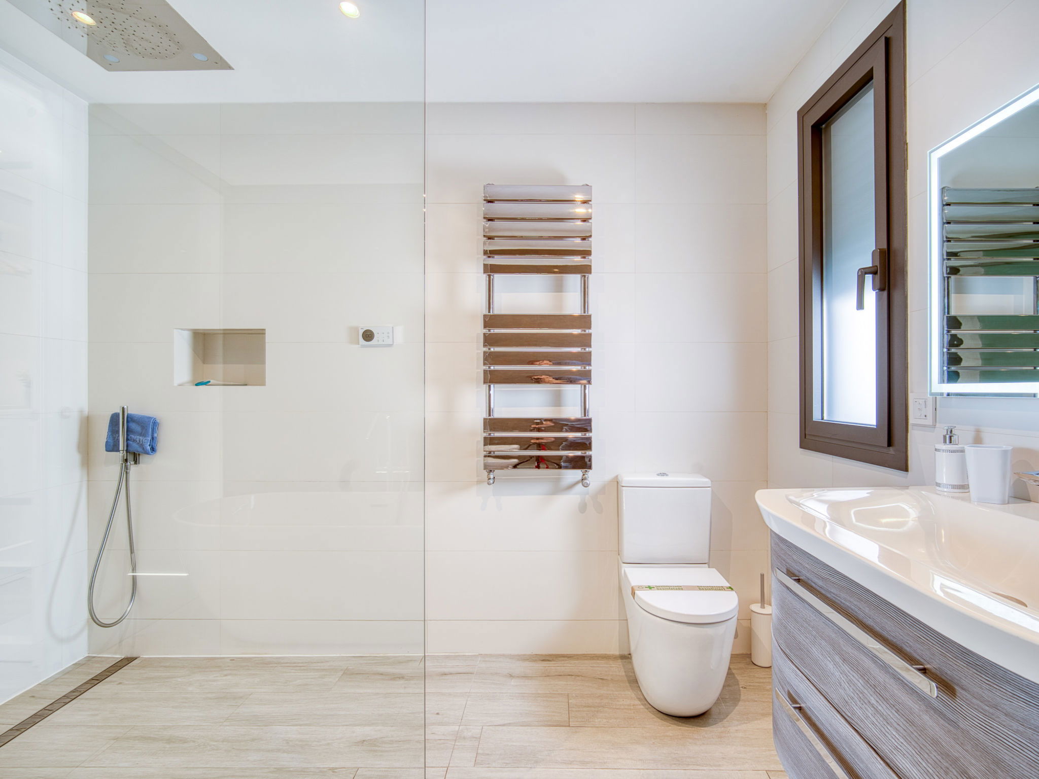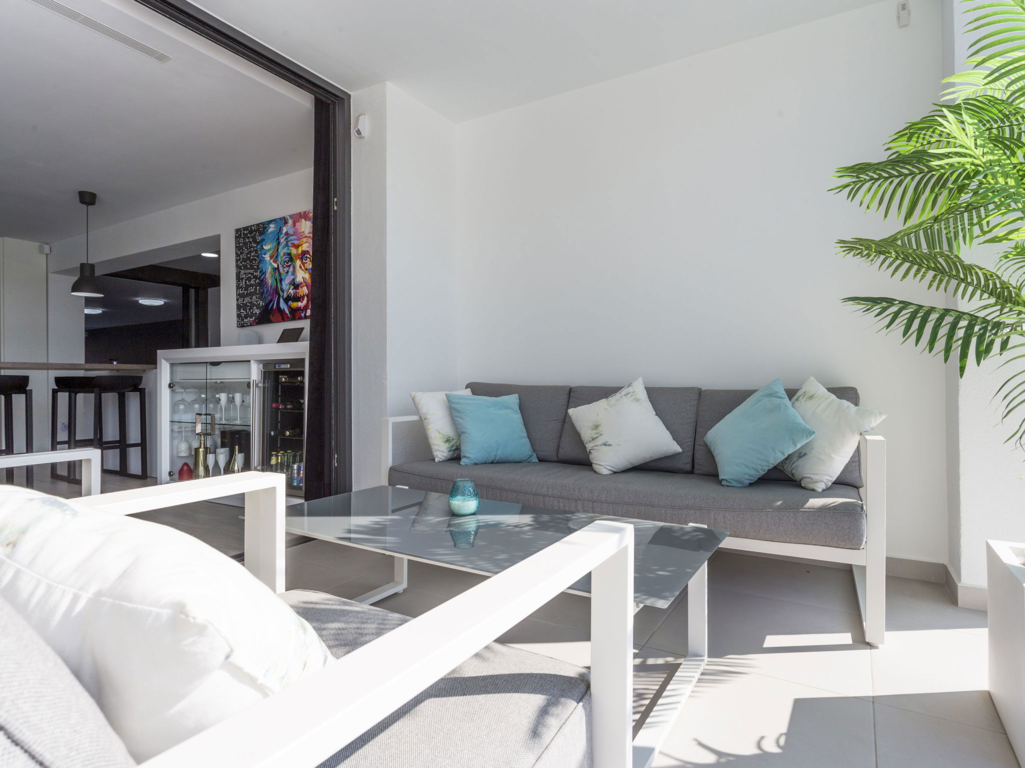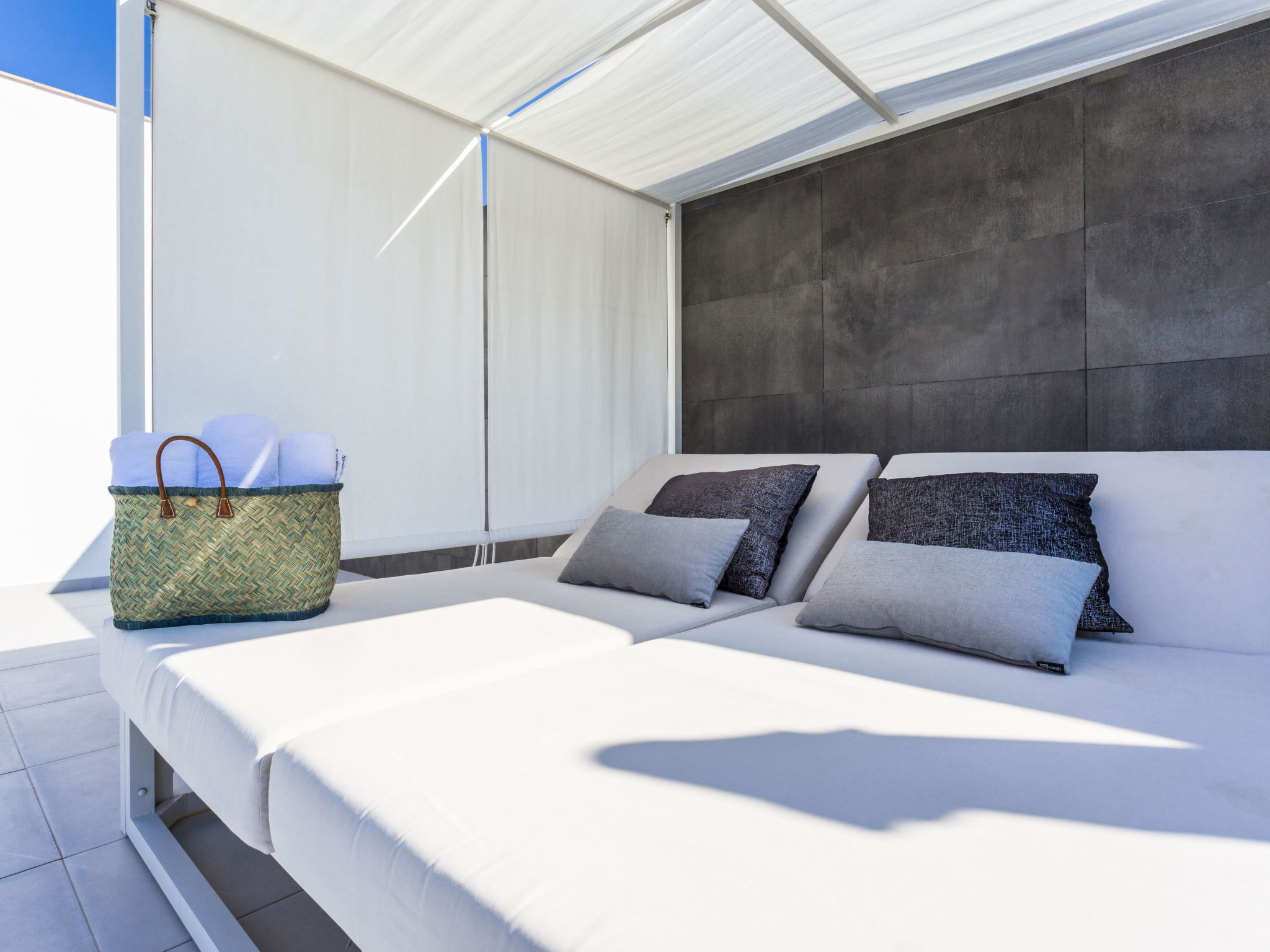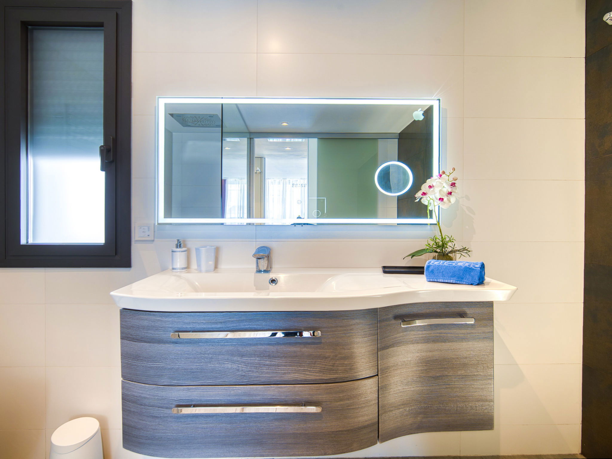 Casa al canal: Modern, comfortable, luxurious single-family house "Lighthouse". In the district of Medes 1 km from the centre of Empuriabrava, in a quiet, sunny position residential area (villas), traffic calmed area, 900 m from the sea, directly by the canal, in a cul-de-sac. Private: property (fenced), swimming pool (8 x 5 m, 40 m2, depth 50 - 160 cm, seasonal availability: 01.Apr. - 30.Oct.) with salt-electrolysis pool-cleaning system. Unconventional pool shape. Terrace, garden furniture. In the house: central heating system, air conditioning. Parking (for 2 cars) on the premises, single garage. Supermarket 1 km, restaurant 600 m, pedestrian zone 500 m, bicycle rental 1.5 km, pub garden 1 km, bus stop "Empuriabrava Cruïlla" 2.8 km, railway station "Figueres Renfe Adif" 15 km, sandy beach "La Rubina / Empuriabrava" 900 m. Sports harbour 2 km, golf course (18 hole) 15 km, surf school 1.5 km, sailing school 1.5 km, tennis 1.5 km, minigolf 900 m, riding stable 800 m, sports centre 1 km, walking paths from the house 300 m, cycle lane 100 m. Nearby attractions: Parque Acuático Roses 5 km, Museo Dalí Figueres 12 km, Ruinas de Empuries 20 km, Castillo y Festival de Perelada 12 km, Centro de Paracaidismo y Túnel de viento 1 km, Cadaqués y Cap de Creus 23 km. Please note: groups of teenagers on request only. Private mooring, on request. The keys‘ handover takes place by the agency in Empuriabrava.