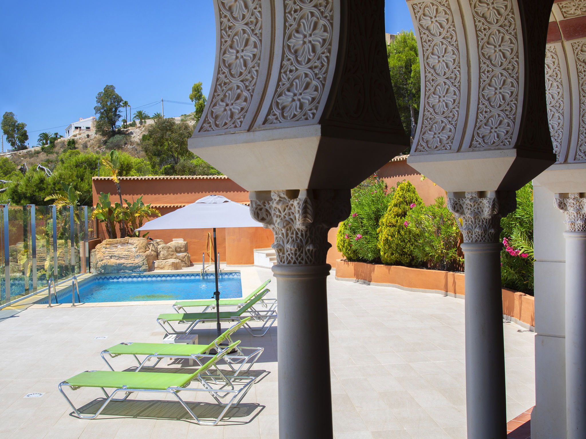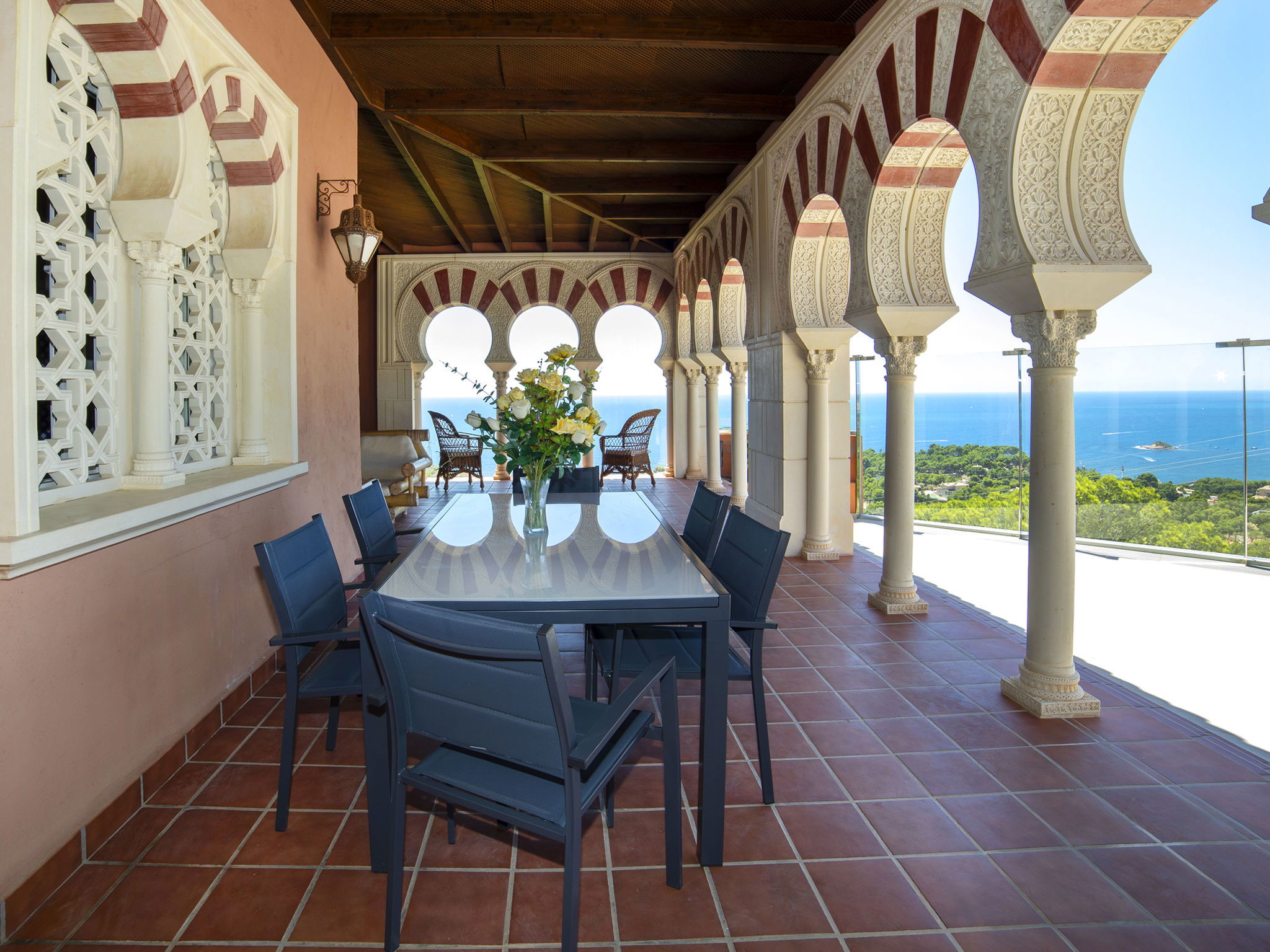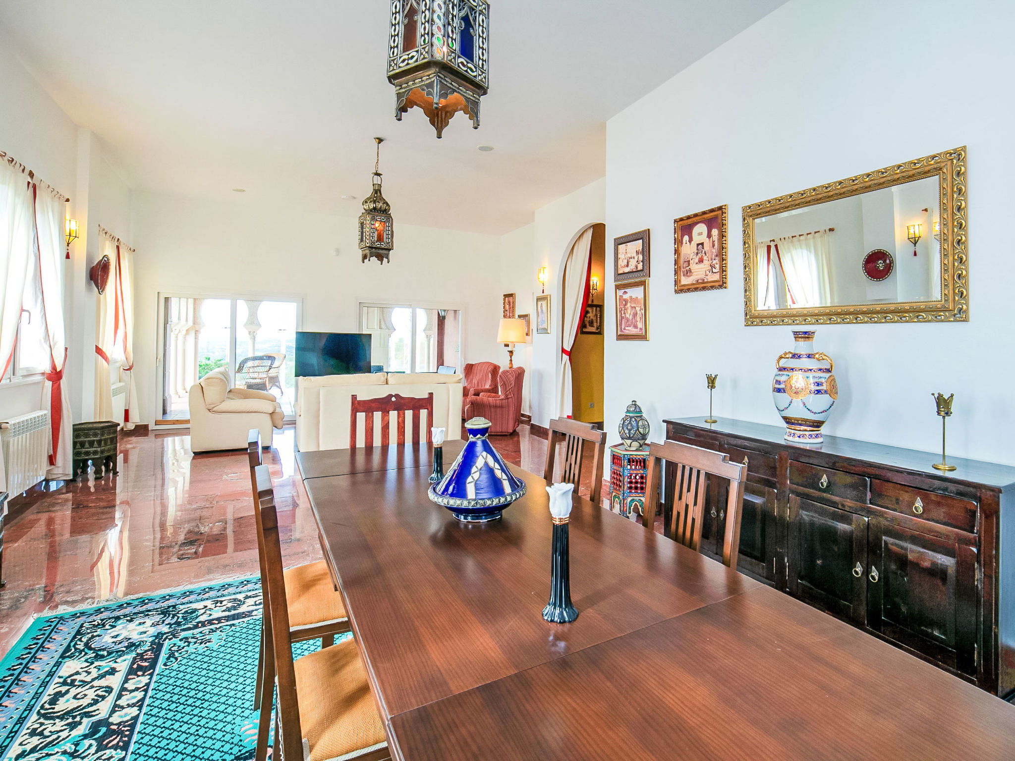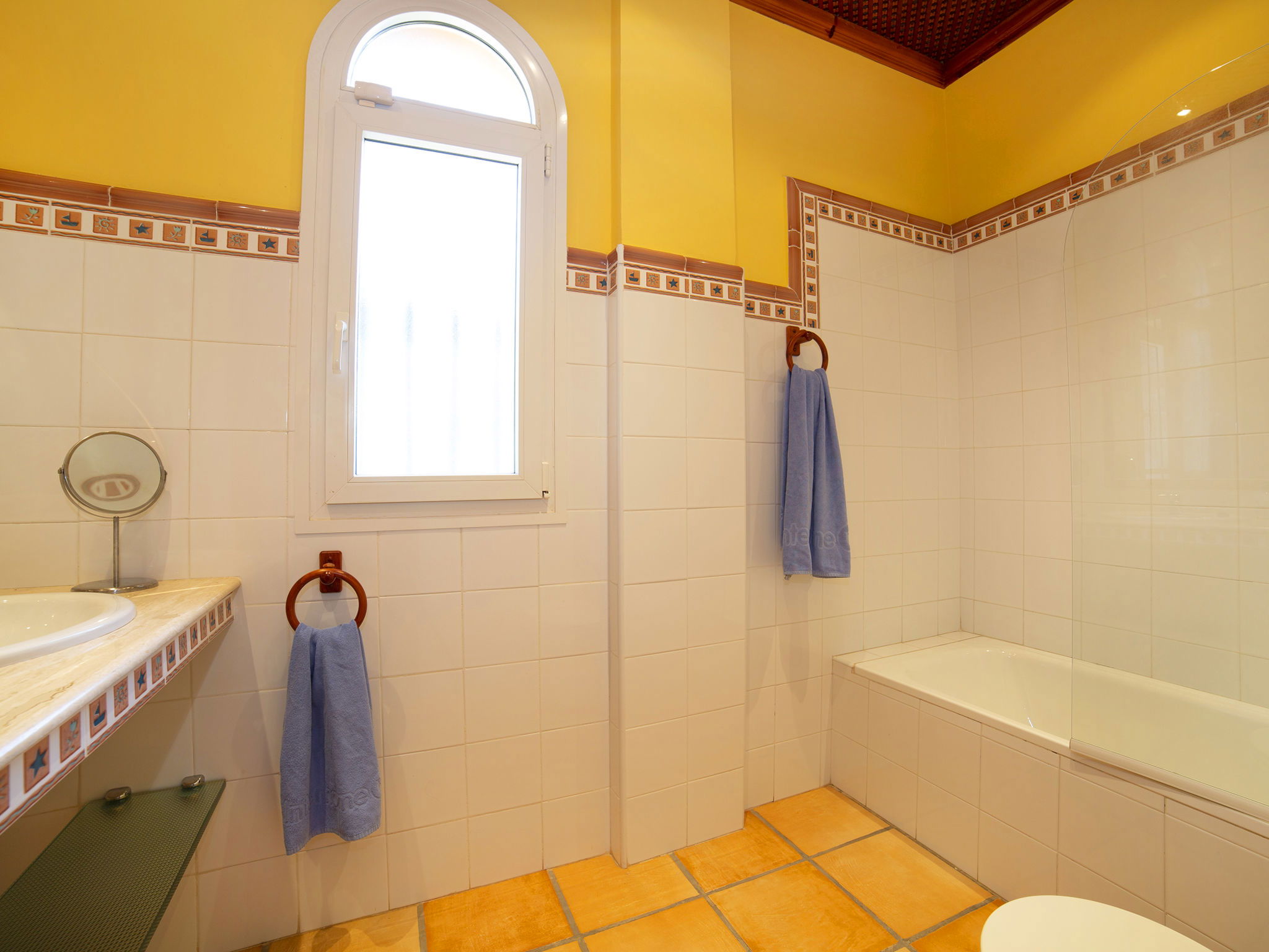 "Azahara", 5-room villa 307 m2. Spacious, beautiful and stylish furnishings: large living/dining room with satellite TV and digital TV. Exit to the terrace, to the swimming pool. 1 room with Dressing room with 1 french bed (1 x 150 cm, length 190 cm), bath/WC, air conditioning and forced-air heating. 1 room with 2 beds (90 cm, length 190 cm), bath/WC, double hand-basin, air conditioning and forced-air heating. 1 room with 2 beds (90 cm, length 190 cm), bath/WC, air conditioning and forced-air heating. 1 room with 2 beds (90 cm, length 190 cm), shower/WC, air conditioning and forced-air heating. Large kitchen (oven, dishwasher, 4 ceramic glass hob hotplates, microwave) with dining table. Exit to the terrace. Sep. WC. Large terrace. Terrace furniture, barbecue, deck chairs. Panoramic view of the sea, the resort and the town. Facilities: washing machine, children's high chair, baby cot, hair dryer. Internet (WiFi, free). Parking. Suitable for families. VT-485094-A // Reg. Nr.: ESFCTU00000305300027218900000000000000000VT-485094-A9
