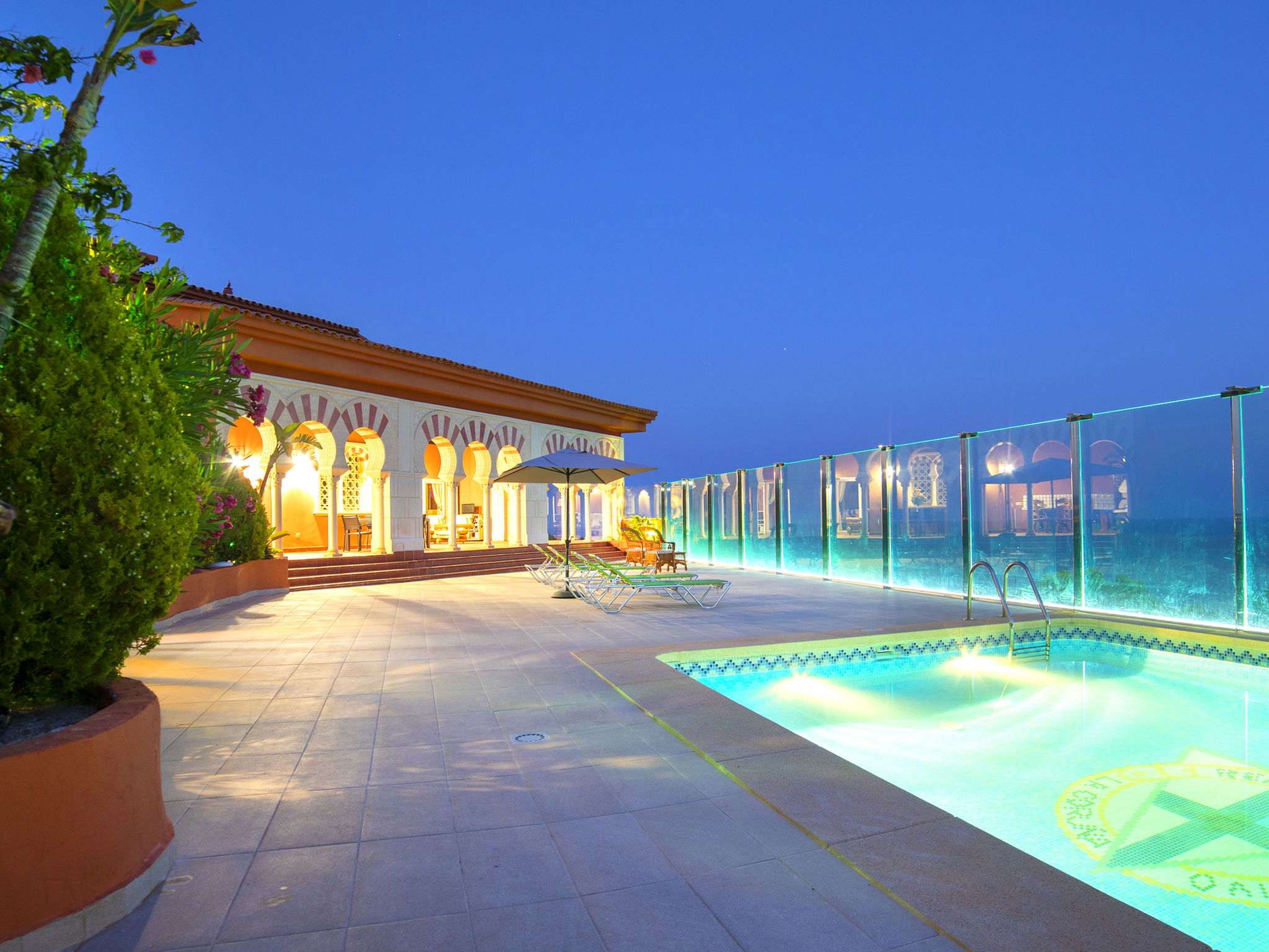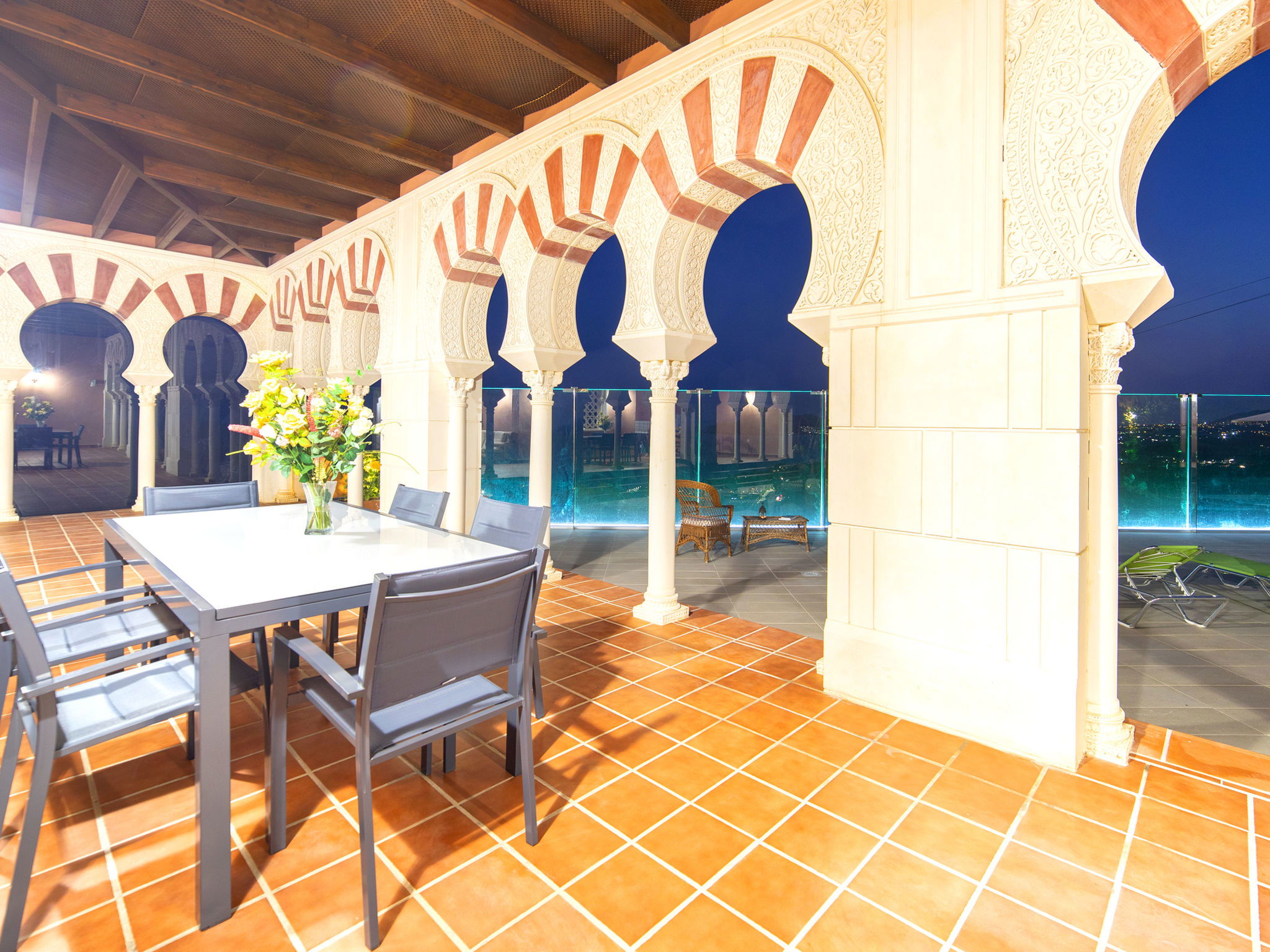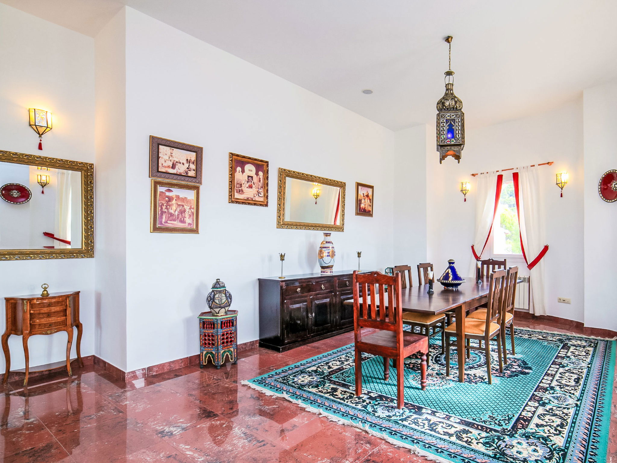 "Azahara", 5-room villa 307 m2. Spacious, beautiful and stylish furnishings: large living/dining room with satellite TV and digital TV. Exit to the terrace, to the swimming pool. 1 room with Dressing room with 1 french bed (1 x 150 cm, length 190 cm), bath/WC, air conditioning and forced-air heating. 1 room with 2 beds (90 cm, length 190 cm), bath/WC, double hand-basin, air conditioning and forced-air heating. 1 room with 2 beds (90 cm, length 190 cm), bath/WC, air conditioning and forced-air heating. 1 room with 2 beds (90 cm, length 190 cm), shower/WC, air conditioning and forced-air heating. Large kitchen (oven, dishwasher, 4 ceramic glass hob hotplates, microwave) with dining table. Exit to the terrace. Sep. WC. Large terrace. Terrace furniture, barbecue, deck chairs. Panoramic view of the sea, the resort and the town. Facilities: washing machine, children's high chair, baby cot, hair dryer. Internet (WiFi, free). Parking. Suitable for families. VT-485094-A // Reg. Nr.: ESFCTU00000305300027218900000000000000000VT-485094-A9