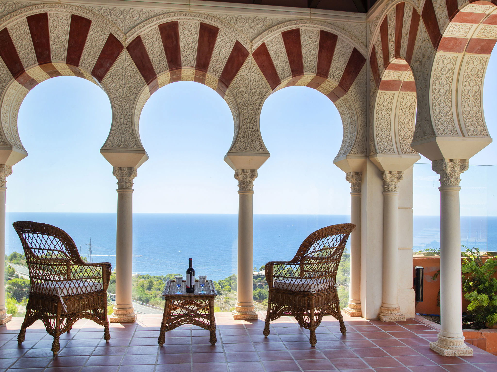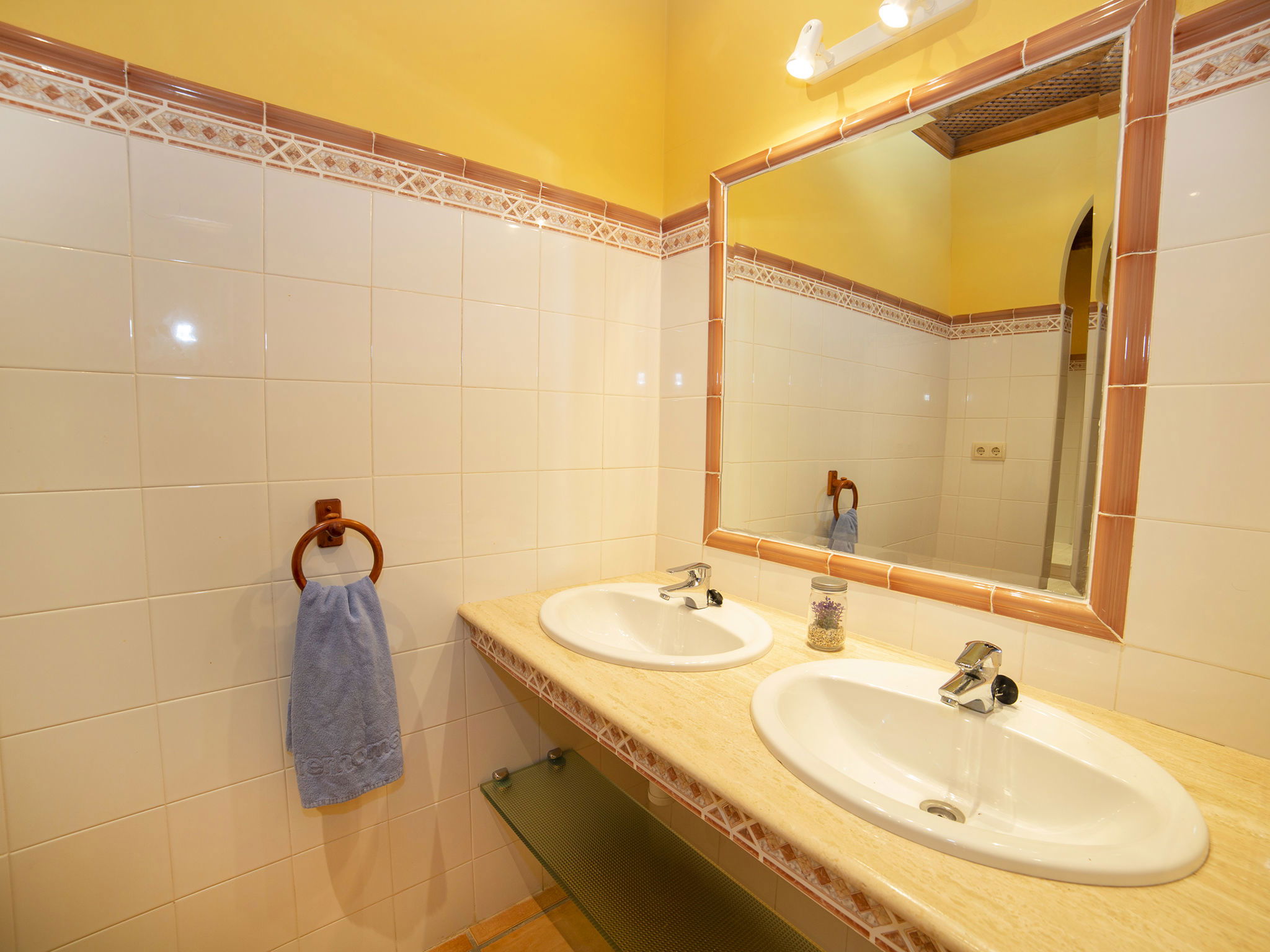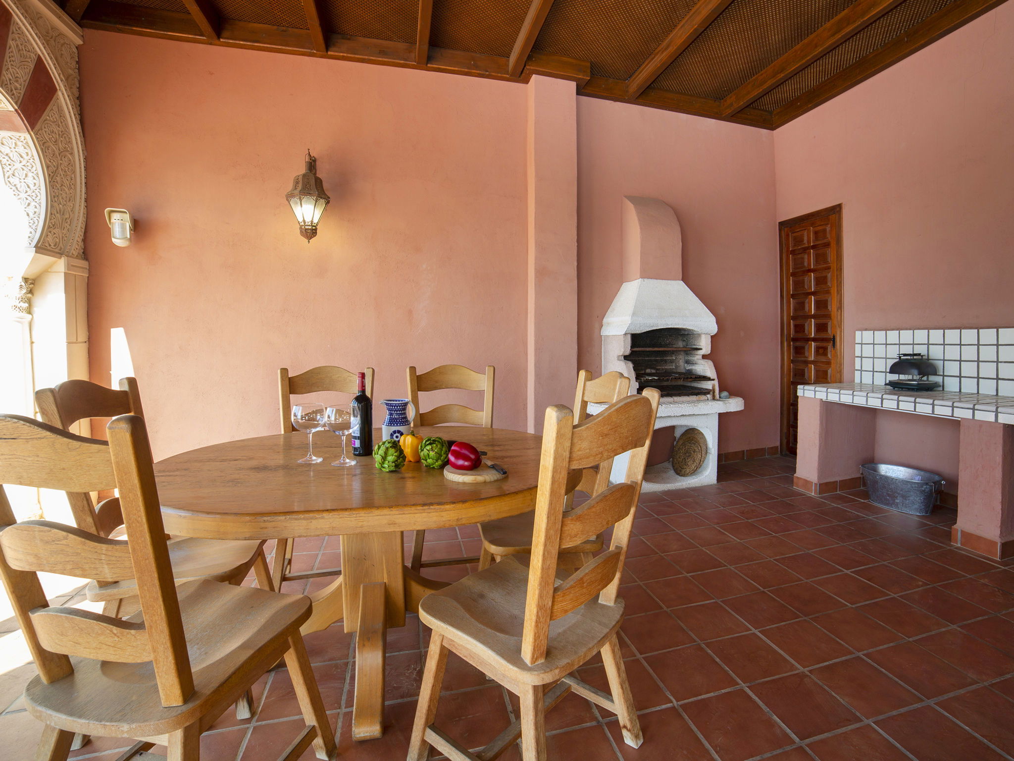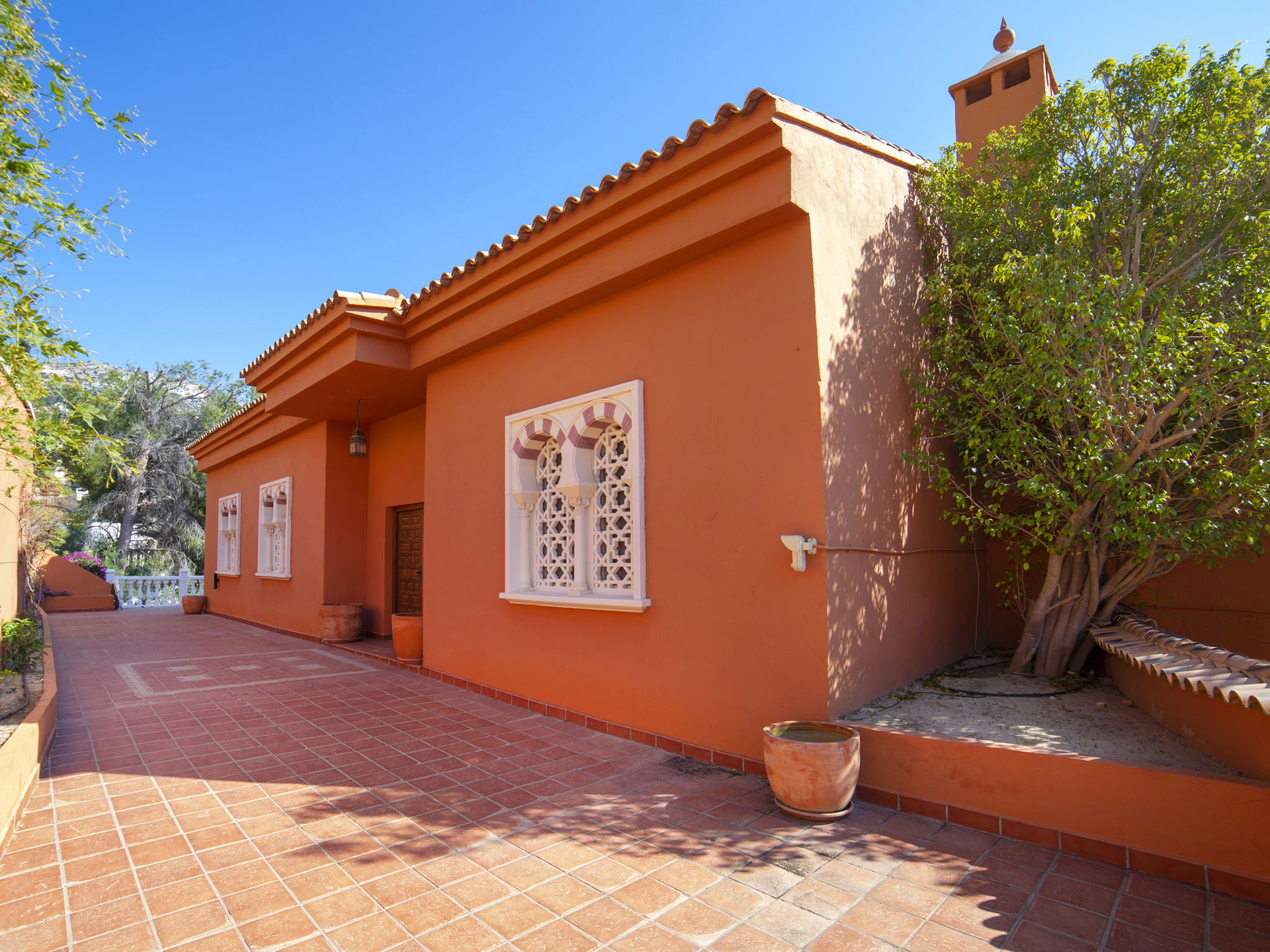 "Azahara", 5-room villa 307 m2. Spacious, beautiful and stylish furnishings: large living/dining room with satellite TV and digital TV. Exit to the terrace, to the swimming pool. 1 room with Dressing room with 1 french bed (1 x 150 cm, length 190 cm), bath/WC, air conditioning and forced-air heating. 1 room with 2 beds (90 cm, length 190 cm), bath/WC, double hand-basin, air conditioning and forced-air heating. 1 room with 2 beds (90 cm, length 190 cm), bath/WC, air conditioning and forced-air heating. 1 room with 2 beds (90 cm, length 190 cm), shower/WC, air conditioning and forced-air heating. Large kitchen (oven, dishwasher, 4 ceramic glass hob hotplates, microwave) with dining table. Exit to the terrace. Sep. WC. Large terrace. Terrace furniture, barbecue, deck chairs. Panoramic view of the sea, the resort and the town. Facilities: washing machine, children's high chair, baby cot, hair dryer. Internet (WiFi, free). Parking. Suitable for families. VT-485094-A // Reg. Nr.: ESFCTU00000305300027218900000000000000000VT-485094-A9