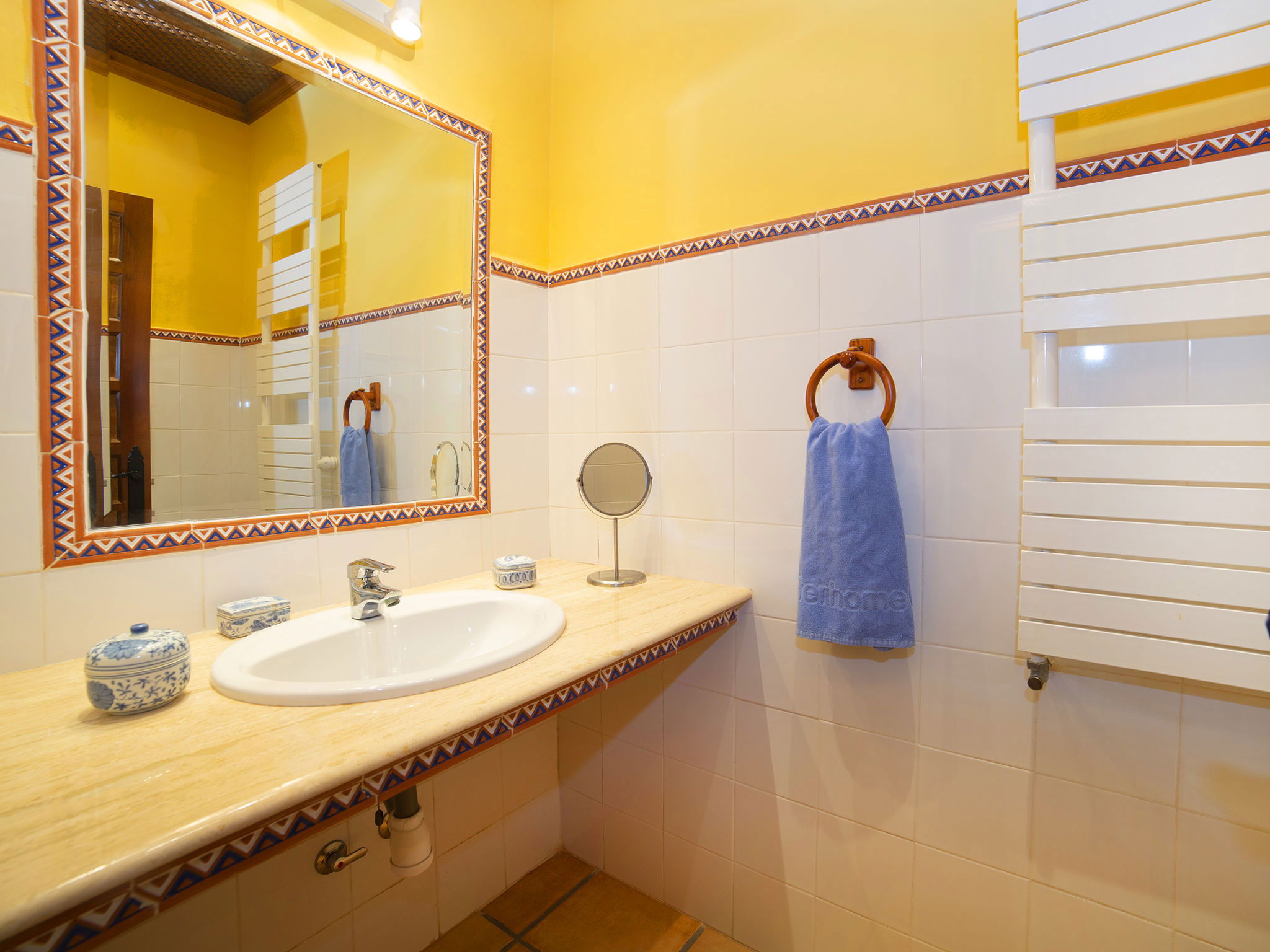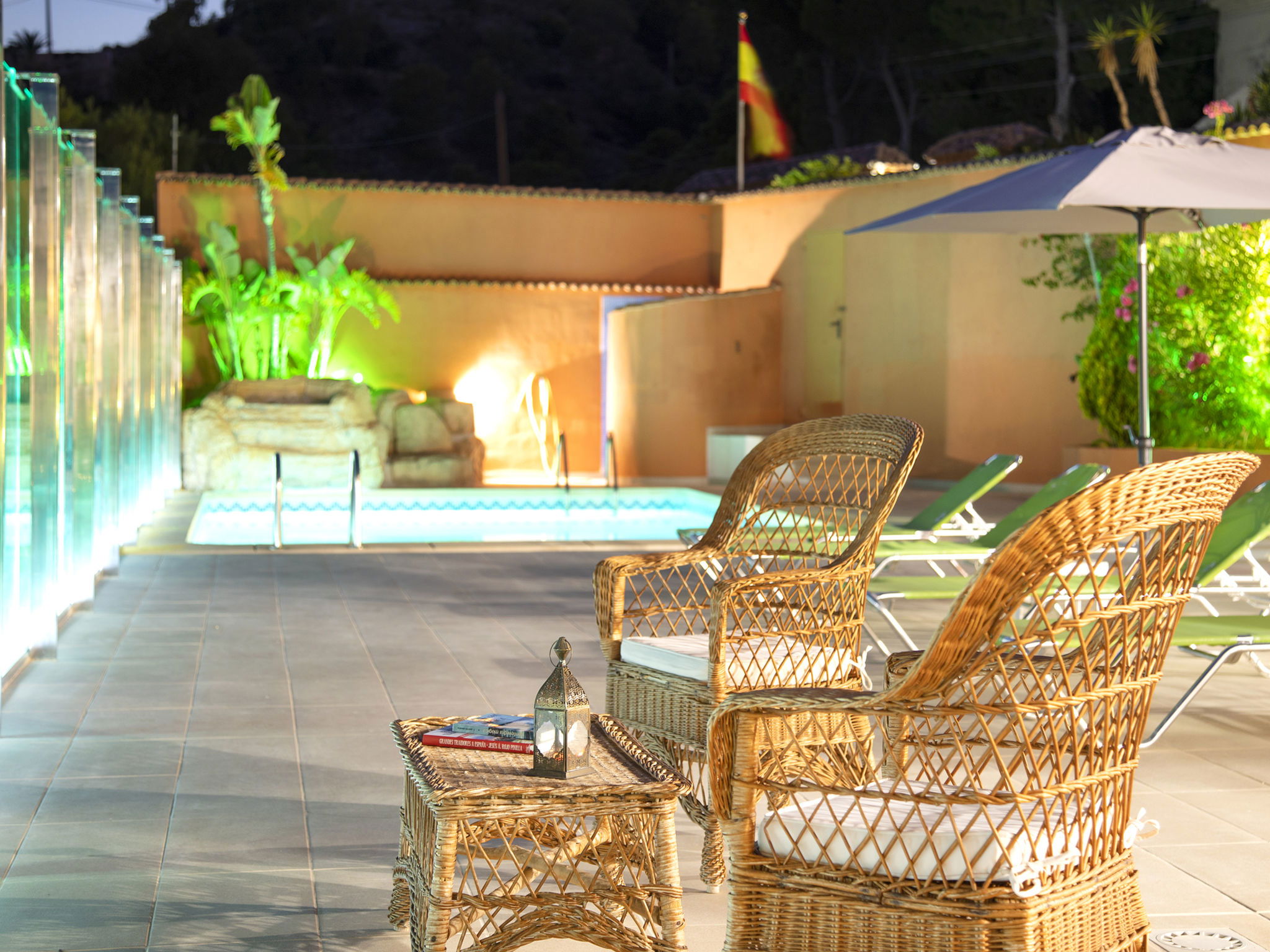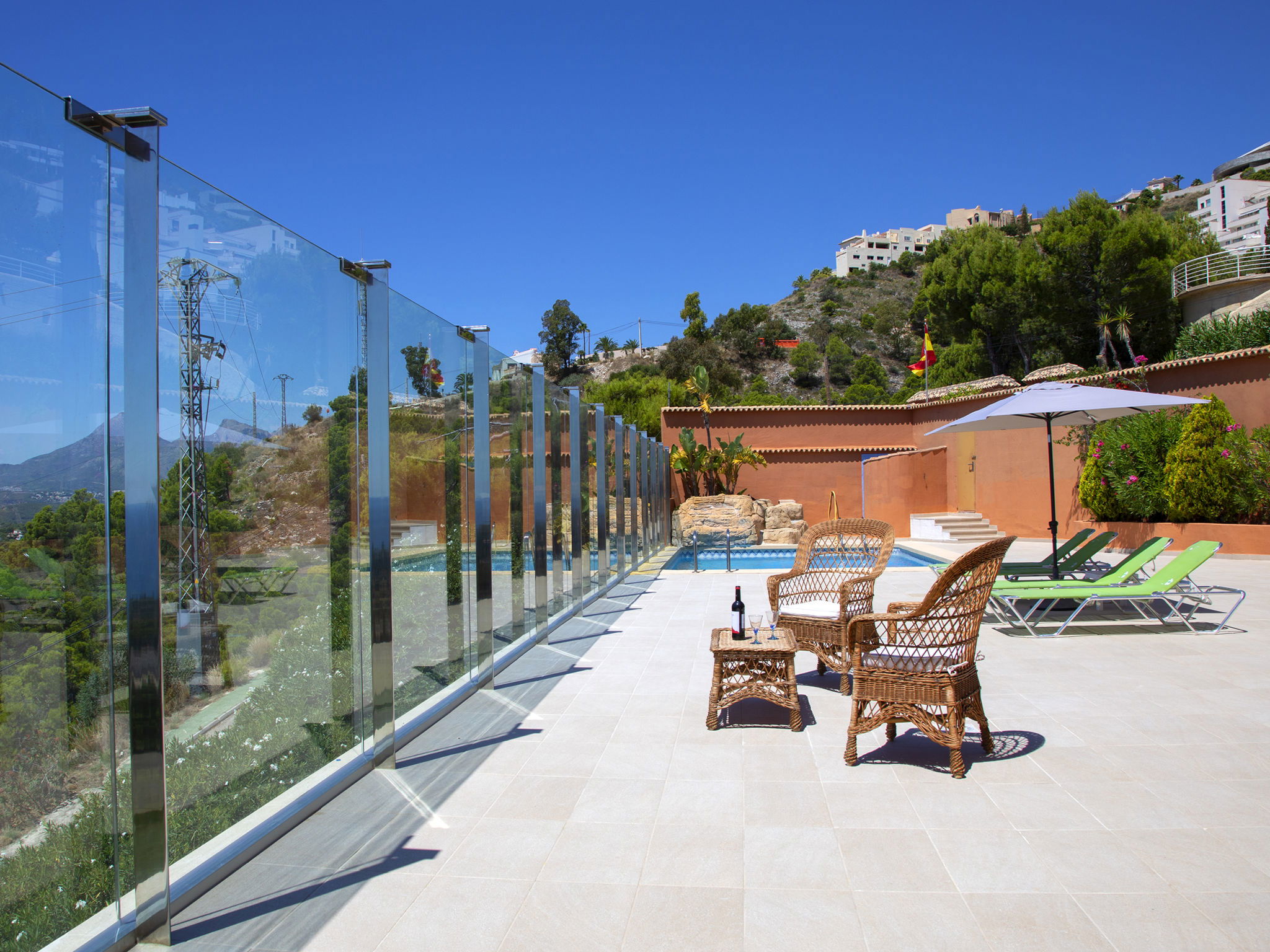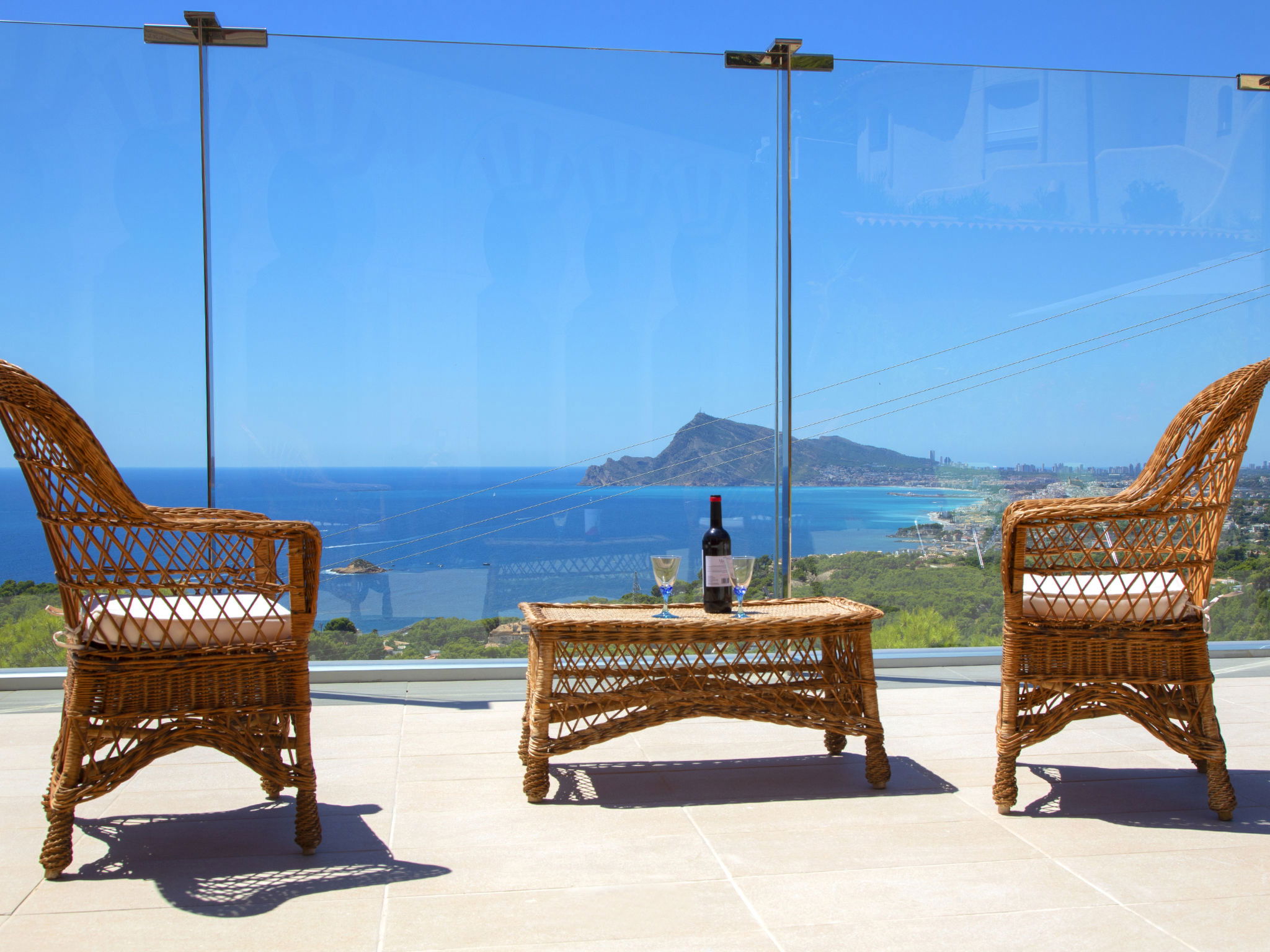 Sierra de Altea: Large, beautiful villa "Azahara". In the resort 5 km from the centre of Altea, 7.6 km from the centre of Calpe, in a sunny, elevated position residential area (villas), 2.3 km from the sea, 2.8 km from the beach. Private: property 1'800 m2 (fenced), swimming pool (8 x 5 m, seasonal availability: 01.Jan. - 31.Dec.). Outdoor shower, terrace, barbecue. Supermarket 1.2 km, restaurant, café 650 m, bus stop 3.7 km, sandy beach "Cap Negret" 3.9 km, shingle beach "Playa el Mascarat" 2.3 km. Sports harbour 2.6 km, marina 2.6 km, golf course (9 hole) 4.2 km. Nearby attractions: Aqualandia, Mundomar, Terra Mítica, Terra Natura, Benidorm Palace (Benidorm), Les Fonts de l'Algar, Castillo de Guadalest. Groups of teenagers on request only. Please note: motorway close by 500 m from the property.