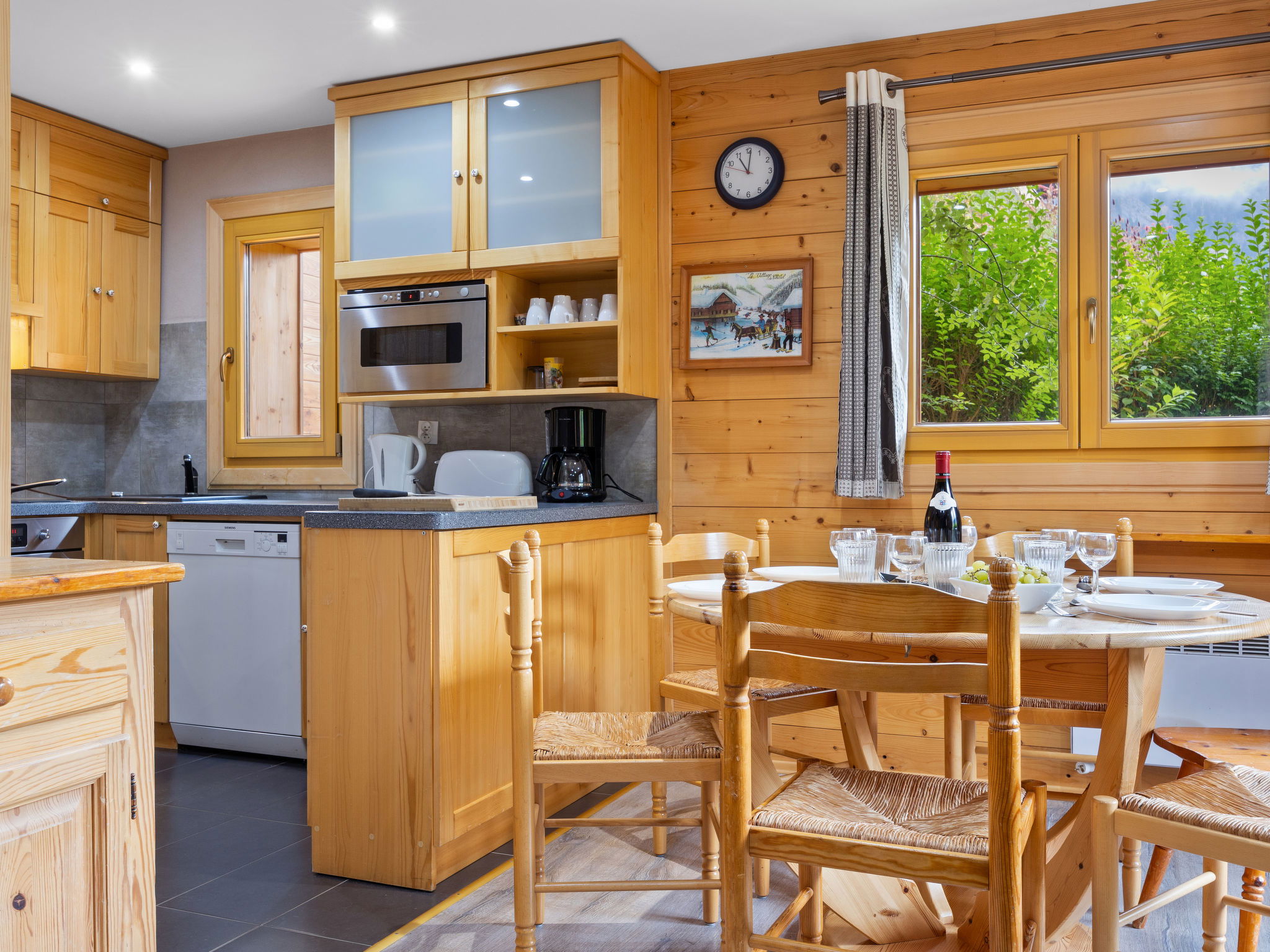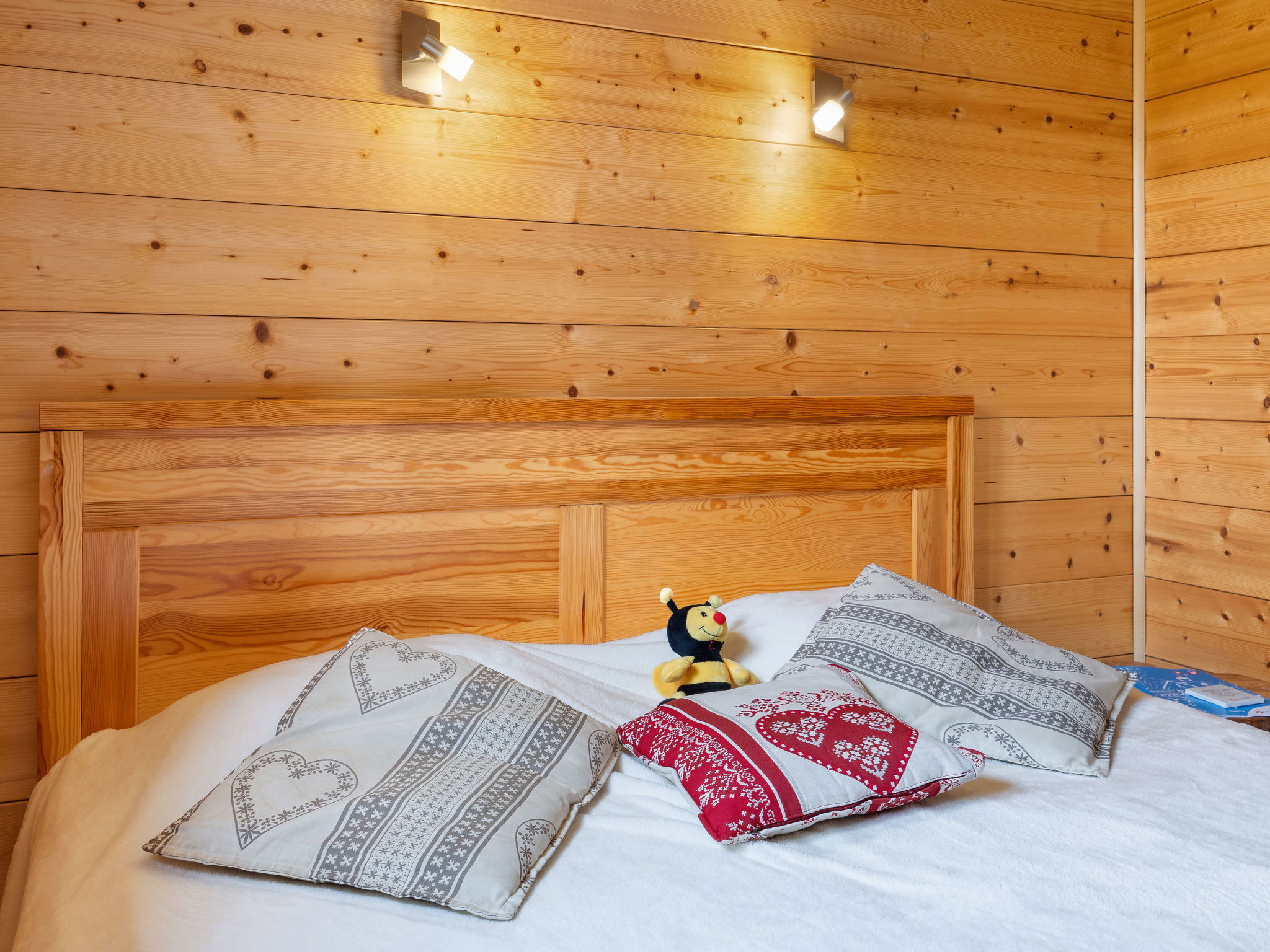 "Le Petit Savoyard", 3-room apartment 38 m2, south-west facing position. Bright, cosy and wooden furniture furnishings: living/sleeping room with 1 double sofabed, dining table and satellite TV. Exit to the terrace. 2 double bedrooms. Open kitchen (oven, dishwasher, 4 induction hot plates, toaster, kettle, microwave, electric coffee machine, raclette grill). Shower, sep. WC. Electric heating. Balcony or terrace. Terrace furniture. Very beautiful view of the mountains. Facilities: Internet (WiFi, free). Parking (1 car). Please note: non-smokers only. Smoke alarm. The property is one of a type of property or apartment. 74063000277VT