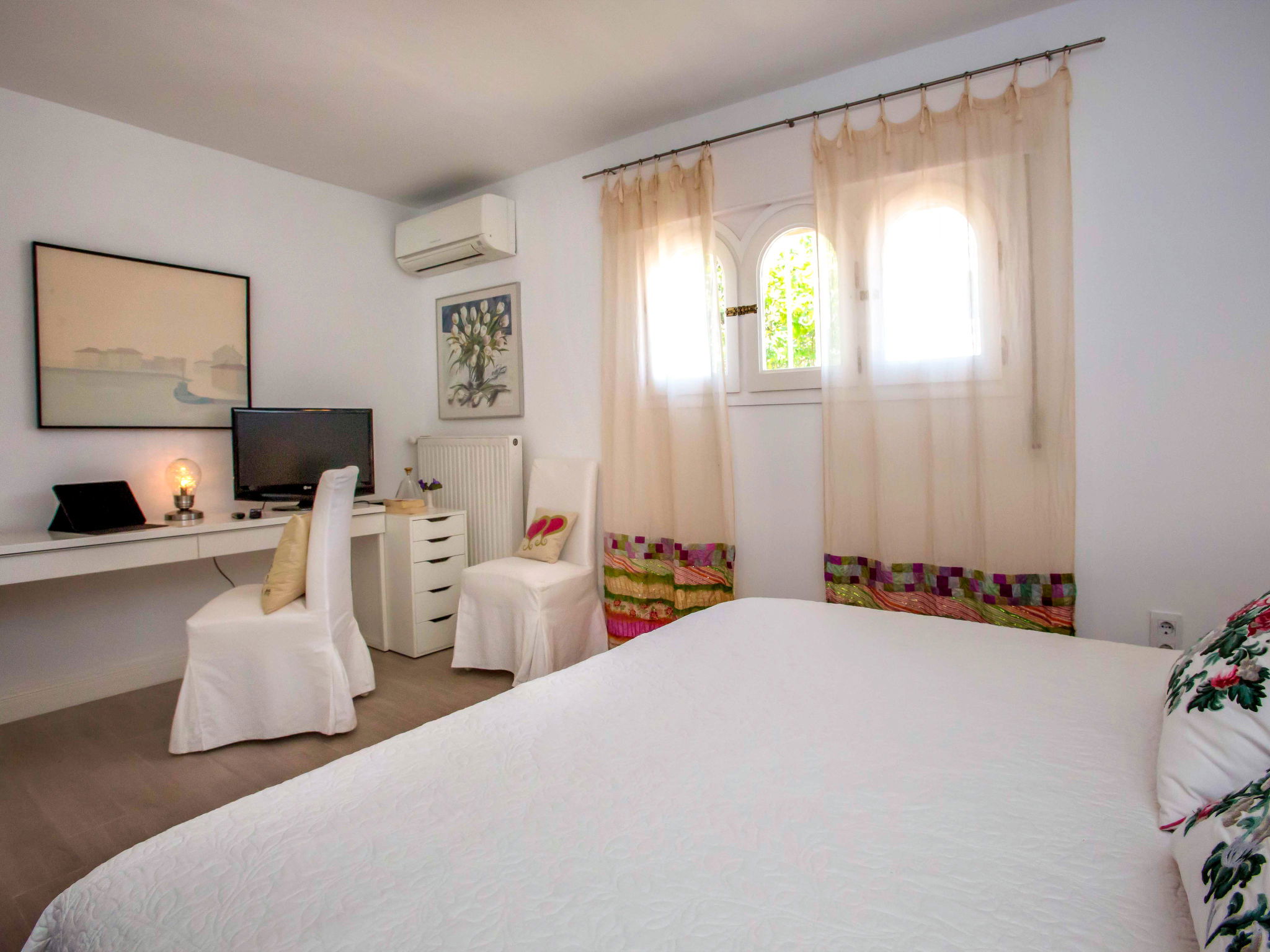 Montgó 2 km from Denia: Very large, very beautiful, very comfortable house "Villa Polonia Mouche", 2 storeys. In the resort 2.5 km from the centre of Dénia, in a quiet, sunny position, 2 km from the sea, 2 km from the beach, in a cul-de-sac. Private: property (fenced), swimming pool (12 x 6 m, depth 80 - 210 cm, seasonal availability: 01.Jan. - 31.Dec.) with internal staircase. Outdoor shower, garden furniture, barbecue house. Stepped path (9 steps) to the house. Parking (for 2 cars) on the premises. Supermarket 1.4 km, restaurant 1 km, café 1.4 km, bus stop 2.9 km, railway station 2.9 km, ferry 4.7 km, sandy beach "Marineta Cassiana" 2 km (small). Sports harbour 2 km, surf school 2 km, sailing school 2 km. Please note: car recommended. The owner does not accept any youth groups. 1st floor is closed and not occupied.