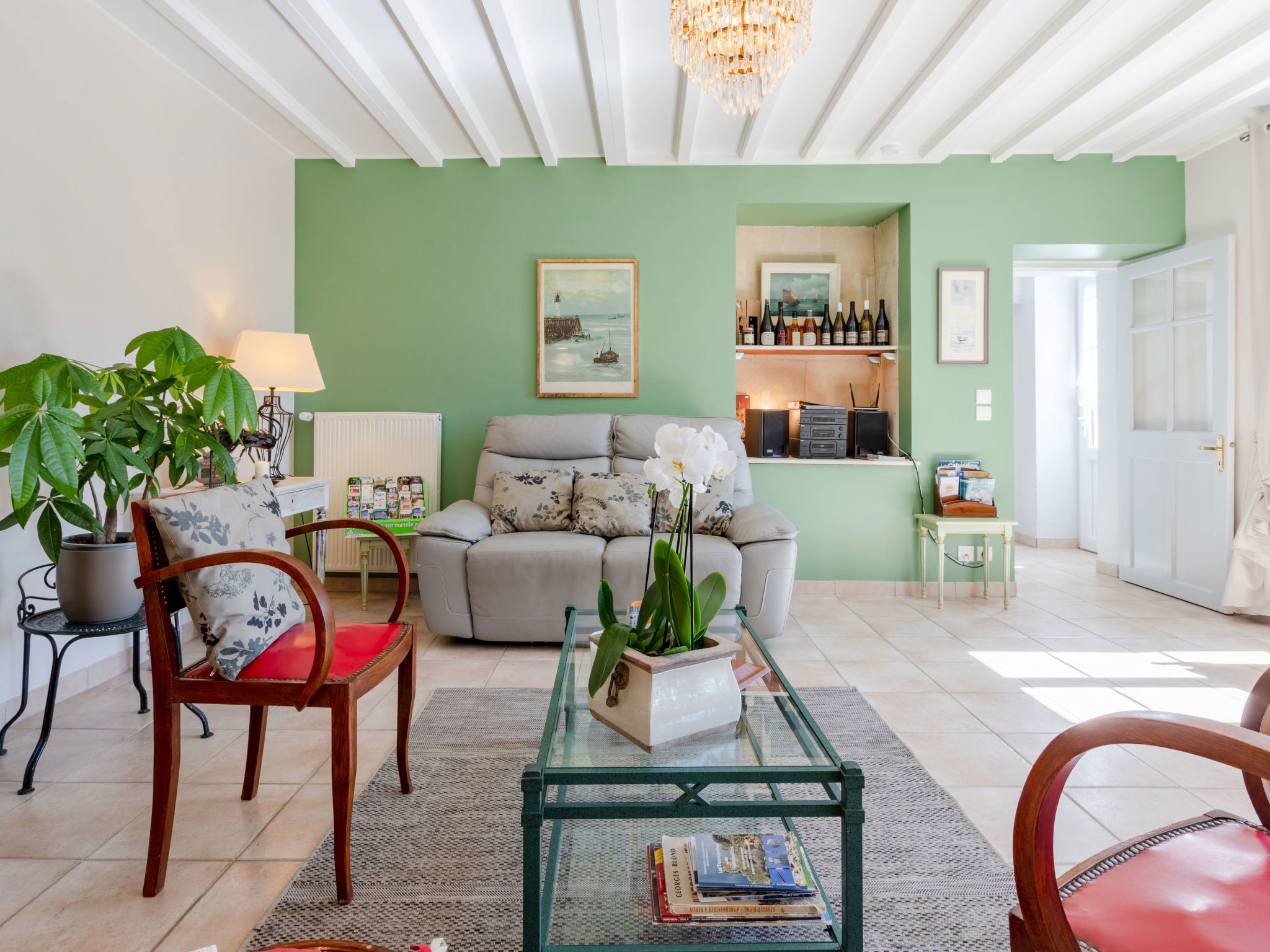 "La Batterie", 4-room house 145 m2 on 2 levels. Object suitable for 5 adults + 2 children. Beautiful and stylish furnishings: living/dining room with open-hearth fireplace (only for decoration), dining table, satellite TV, radio, CD-player and DVD. Exit to the garden. Open kitchen (oven, dishwasher, 3 gas rings, toaster, kettle, microwave, freezer, electric coffee machine, Capsules for coffee machine (Machine expresso)). Shower, sep. WC. Upper floor: 1 room with 1 french bed (160 cm). 1 room with 1 sofabed and 1 french bed (140 cm). 1 room with 1 x 2 bunk beds (90 cm, length 190 cm). Shower, sep. WC, double hand-basin. Oil heating. Wooden floors. Terrace roofed. Terrace furniture, barbecue. Facilities: washing machine, dryer, iron, children's high chair, baby cot. Internet (WiFi, free). Please note: non-smoking house. Maximum 2 pets/ dogs allowed.