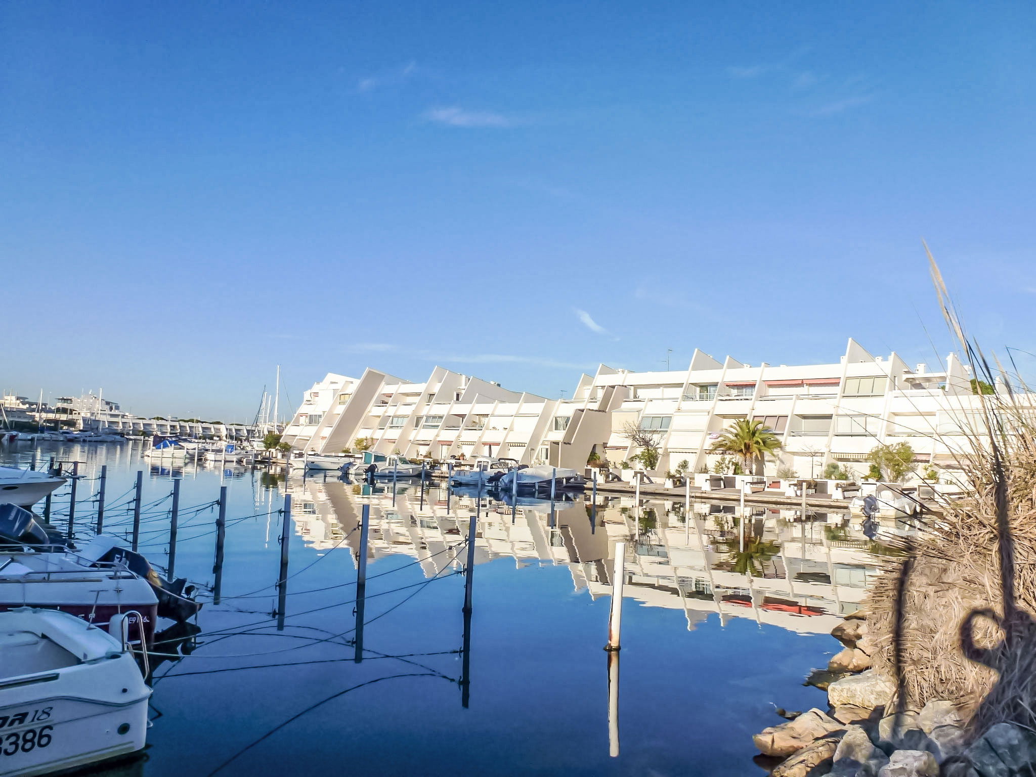 Residence "Le Nirvana", 2 storeys. In the district of Marinas II, 350 m from the sea, 350 m from the beach. Parking. Shop, grocery 400 m, supermarket 3 km, restaurant 400 m, bus stop "Quai aux Fleurs" 900 m, railway station 3.5 km, sandy beach 350 m, thermal baths "Thalazur Les Bains de Camargue" 950 m. Marina 20 m. Nearby attractions: Casino Flamingo 3.6 km, Seaquarium 4.7 km, Les Arènes du Grau du Roi 6 km, Aigues-Mortes 8 km, La Grande-Motte 13 km, Nîmes 52 km. Hiking paths: Réserve Naturelle de Camargue. Please note: car recommended. The keys‘ handover takes place by the agency in Port Camargue, 3 km. Airfield 24 km from the property.