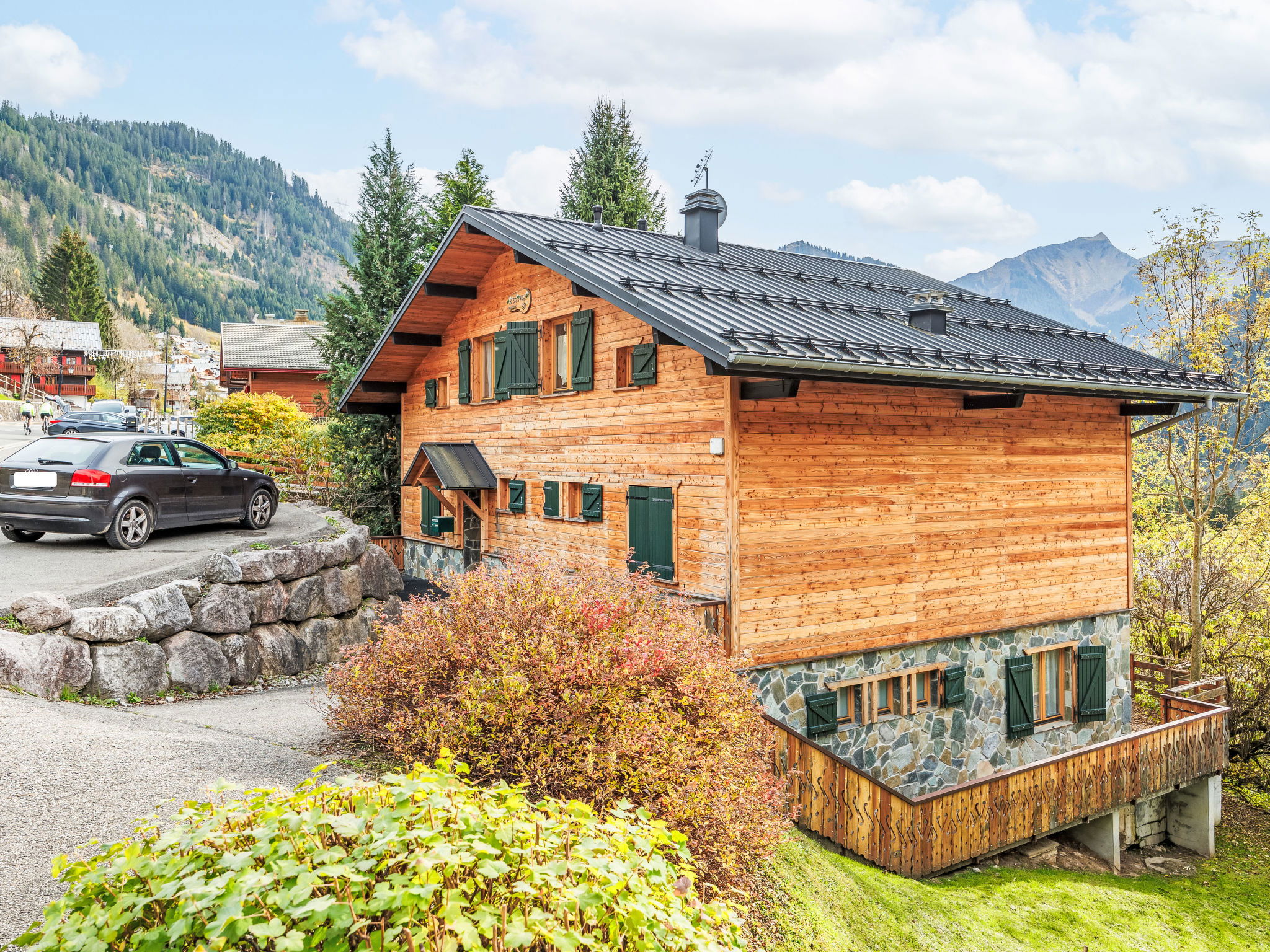 Very beautiful, cosy, rustic chalet "Fer à Cheval", 1'150 m a.s.l., 3 storeys. 3 apartments in the property. 800 m from the centre of Châtel, on the outskirts, 25 km from the centre of Monthey, 70 km from the centre of Genève, in a sunny position on a slope. In the house: storage room for skis, washing machine (for shared use, extra), ski boot dryer. Storeroom available. Shop 800 m, supermarket 1.5 km, bus stop 300 m, outdoor swimming pool 1.5 km. Ski lift 1 km, ski bus stop 300 m. Please note: the photograph shows a typical example.