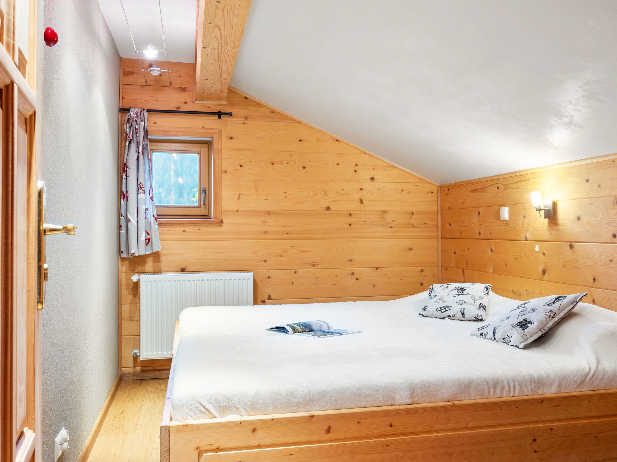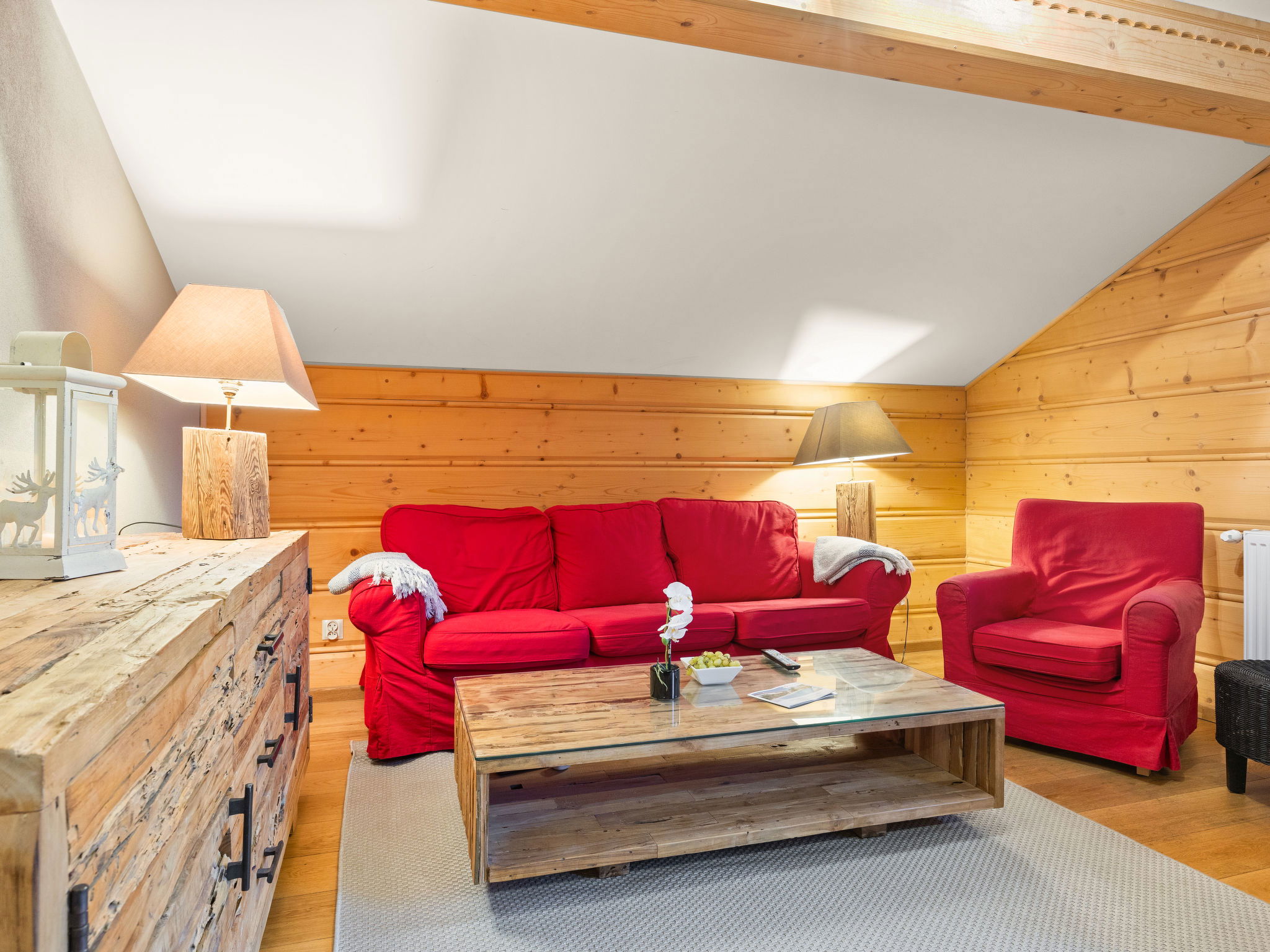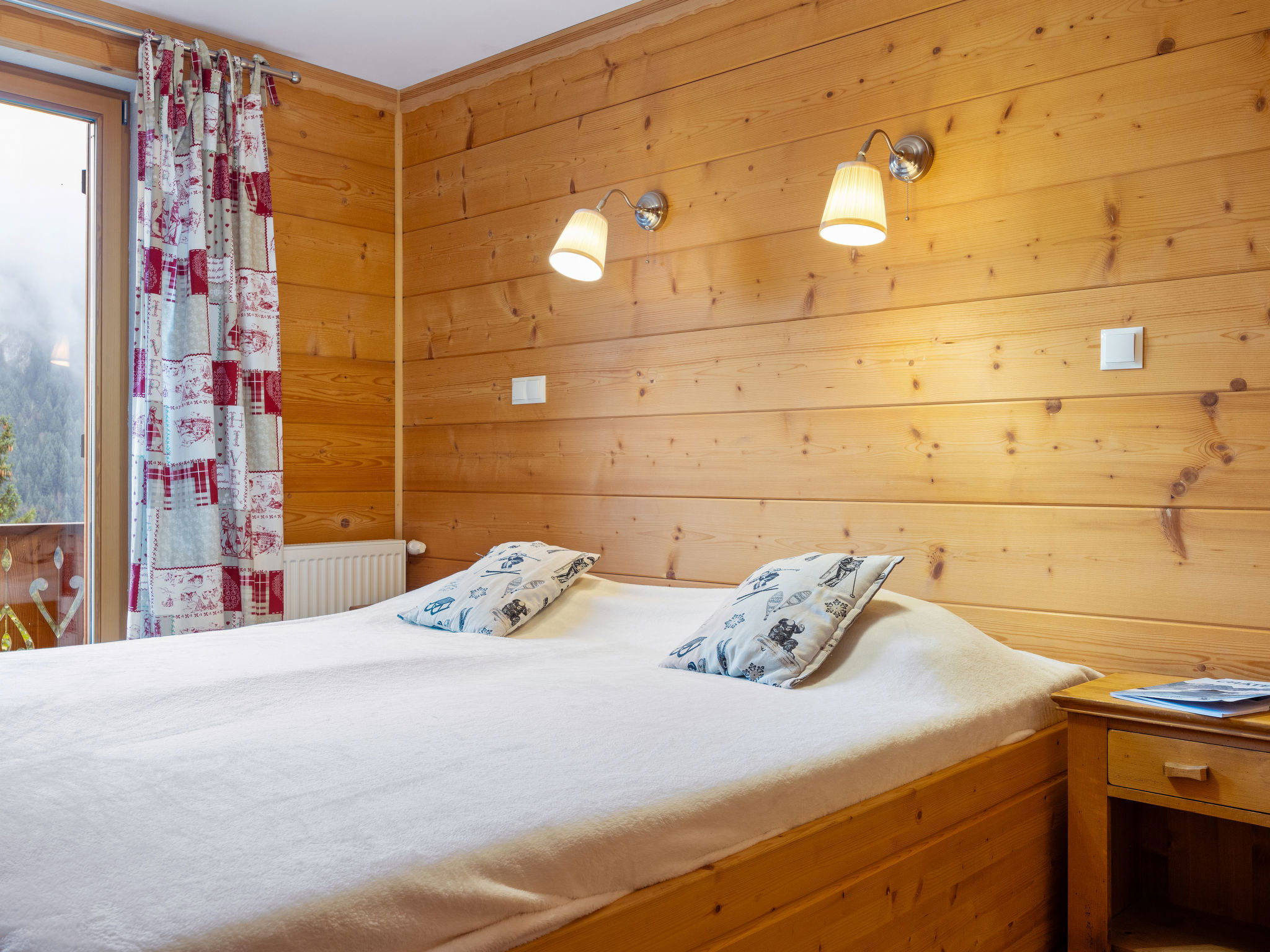 "Fer à Cheval", 4-room apartment 67 m2, on the top floor, south-west facing position. With sloping ceilings, renovated in 2015, cosy and wooden furniture furnishings: living/dining room with dining table and satellite TV. Exit to the balcony. 1 double bedroom. Exit to the balcony. 2 rooms, each room with 2 beds. Kitchen (dishwasher, 4 induction hot plates, toaster, kettle, freezer, electric coffee machine, raclette grill, combination microwave) with dining table. Shower, sep. WC, bath/shower/WC. Oil heating. Parquet floors. Balcony. Balcony furniture. Very beautiful panoramic view of the mountains. Facilities: Internet (WiFi, free). Parking (1 car). Please note: non-smokers only. Smoke alarm. 74063000275WL