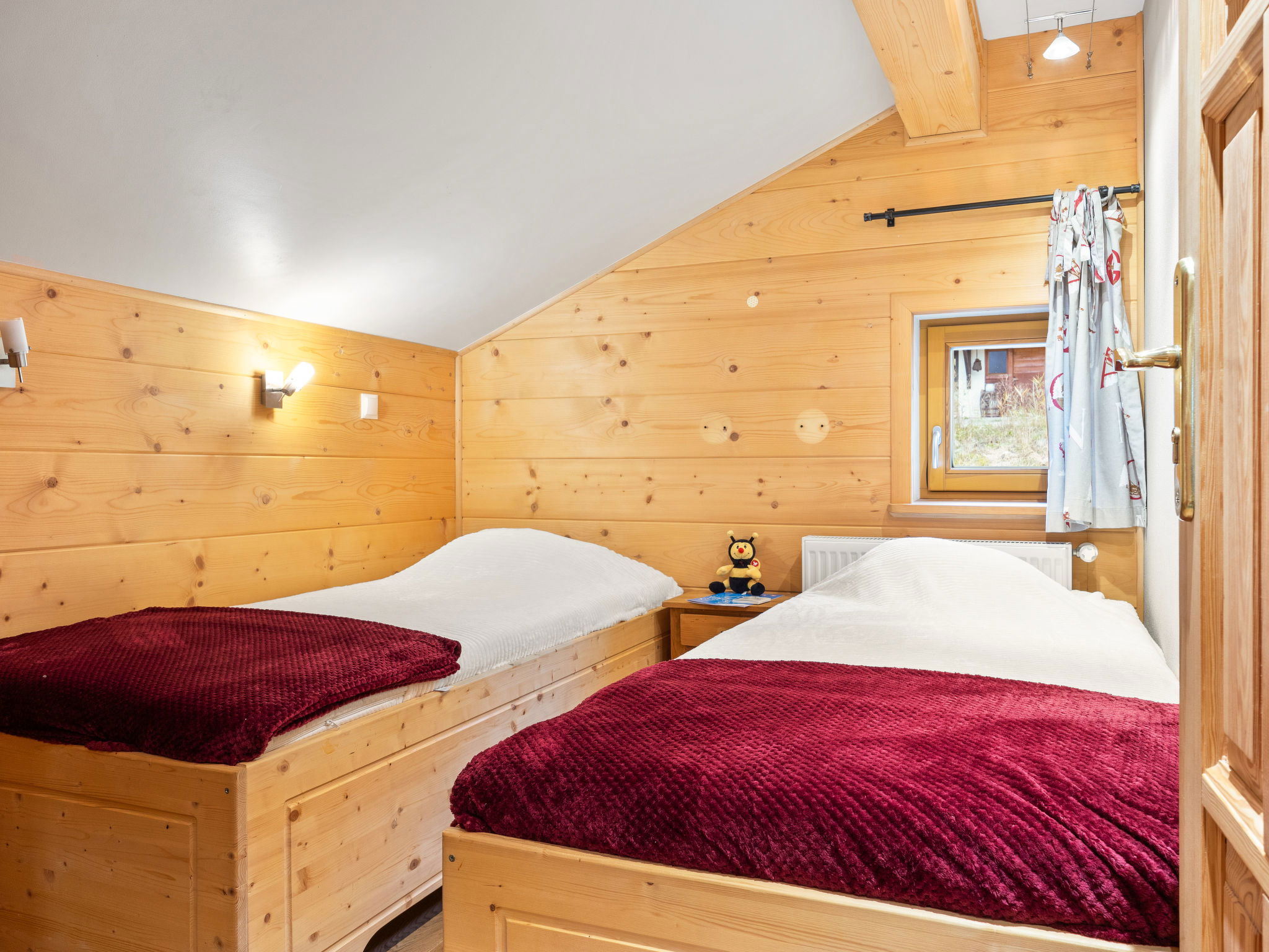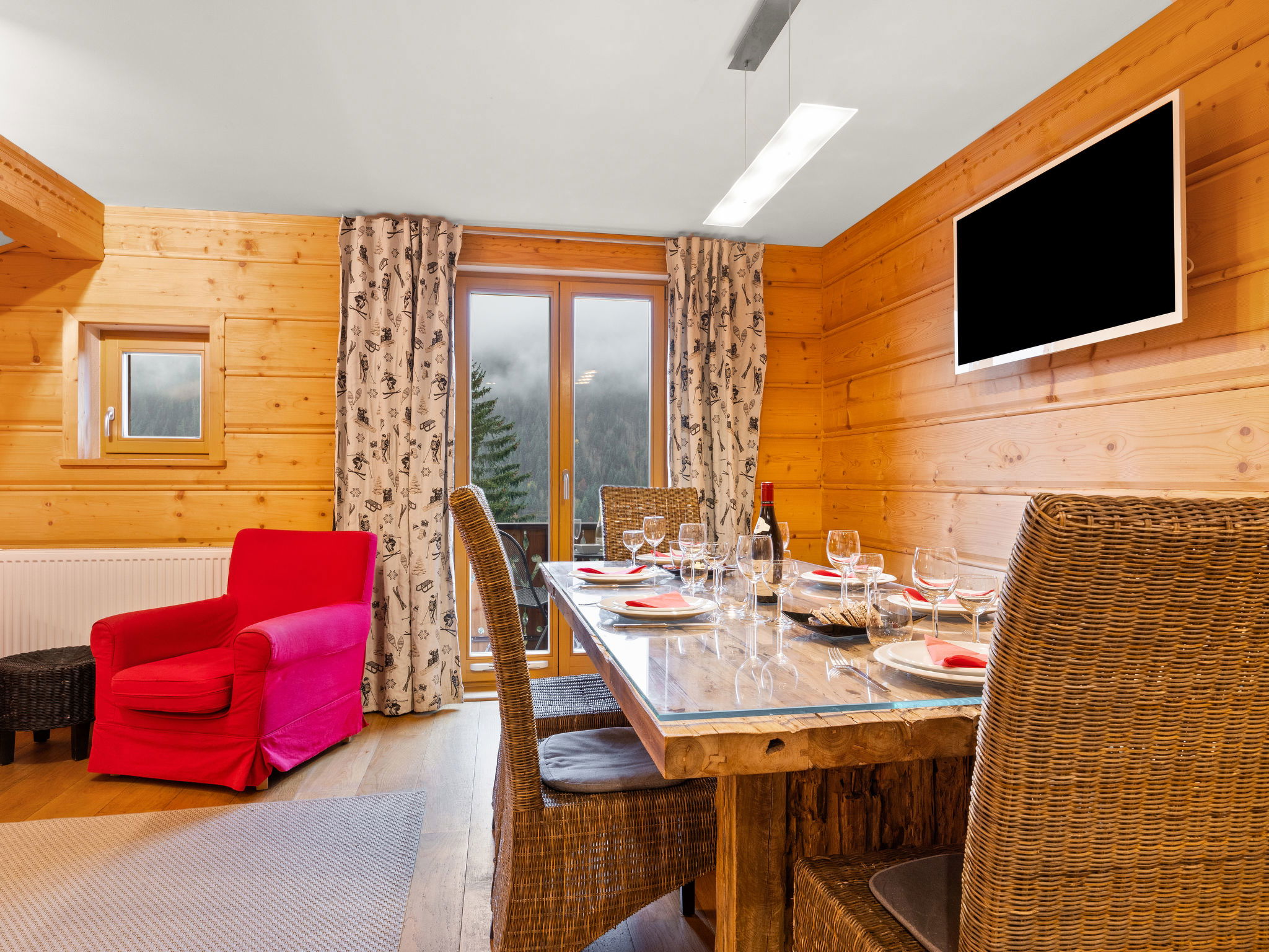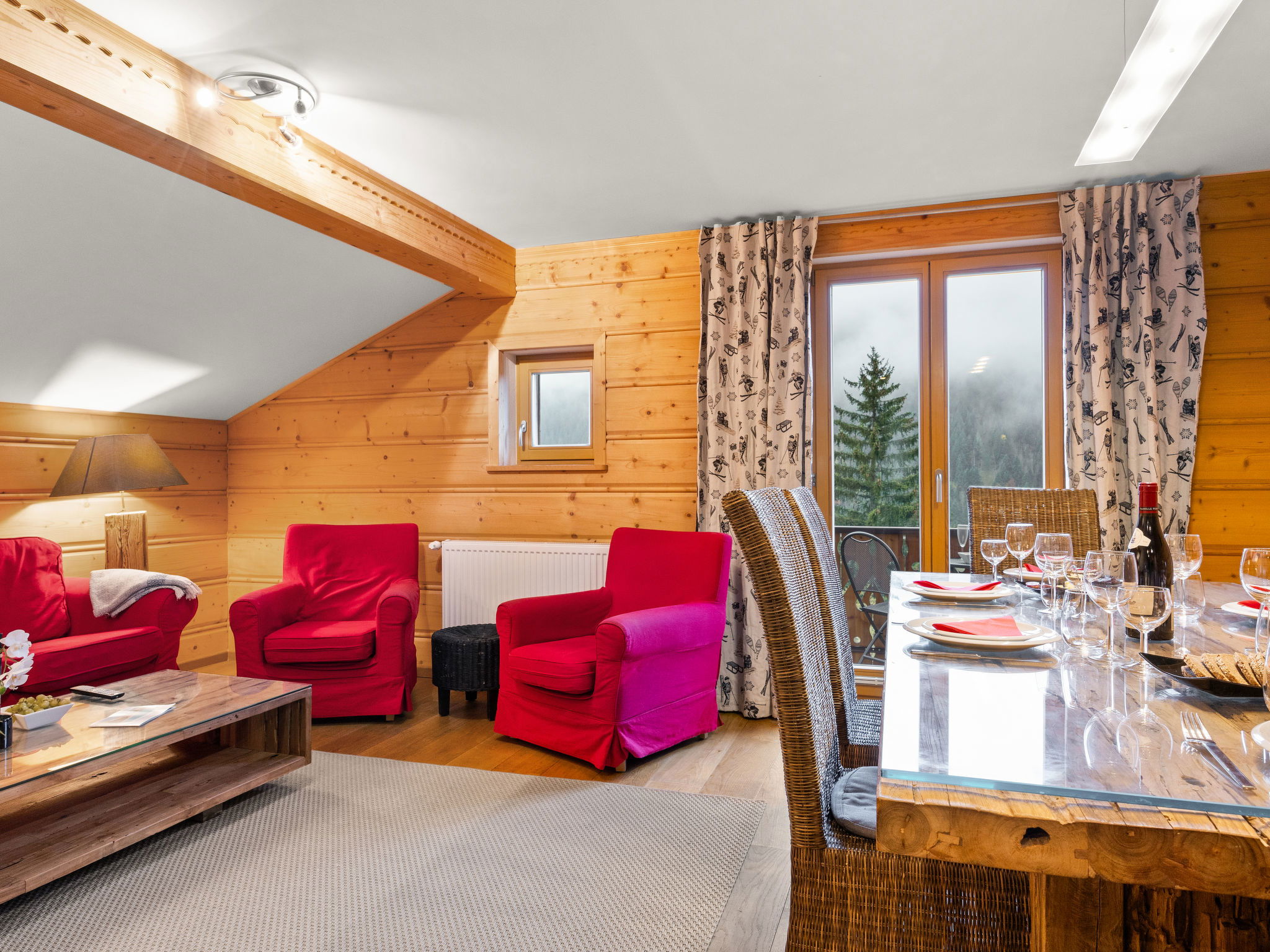 "Fer à Cheval", 4-room apartment 67 m2, on the top floor, south-west facing position. With sloping ceilings, renovated in 2015, cosy and wooden furniture furnishings: living/dining room with dining table and satellite TV. Exit to the balcony. 1 double bedroom. Exit to the balcony. 2 rooms, each room with 2 beds. Kitchen (dishwasher, 4 induction hot plates, toaster, kettle, freezer, electric coffee machine, raclette grill, combination microwave) with dining table. Shower, sep. WC, bath/shower/WC. Oil heating. Parquet floors. Balcony. Balcony furniture. Very beautiful panoramic view of the mountains. Facilities: Internet (WiFi, free). Parking (1 car). Please note: non-smokers only. Smoke alarm. 74063000275WL