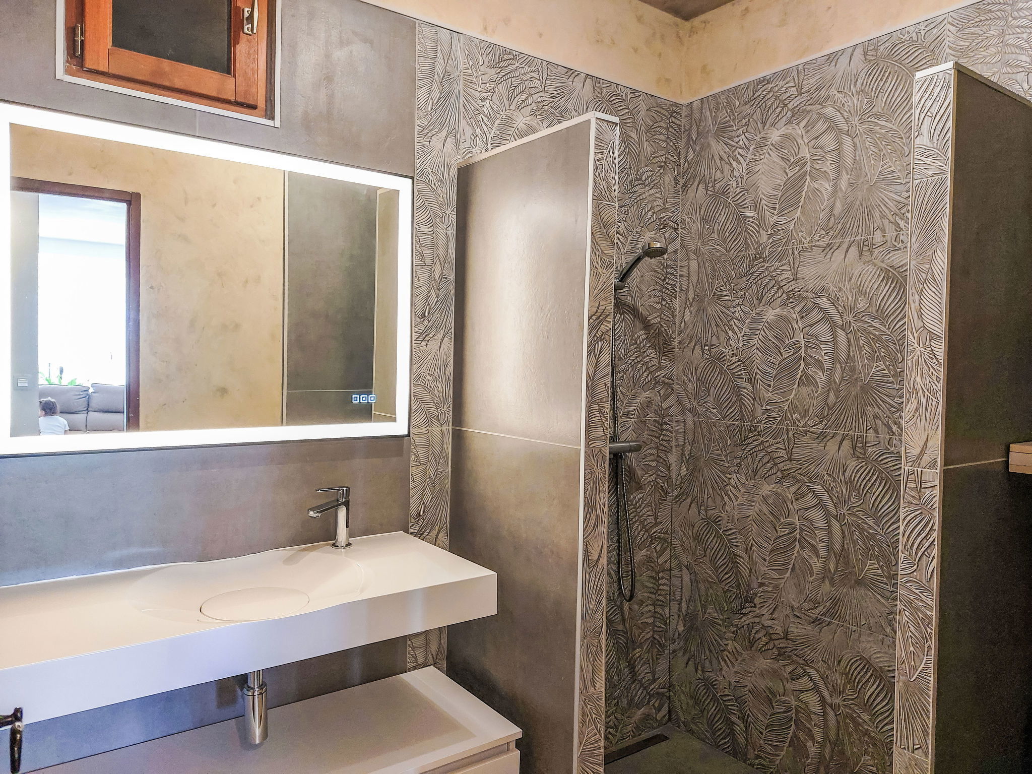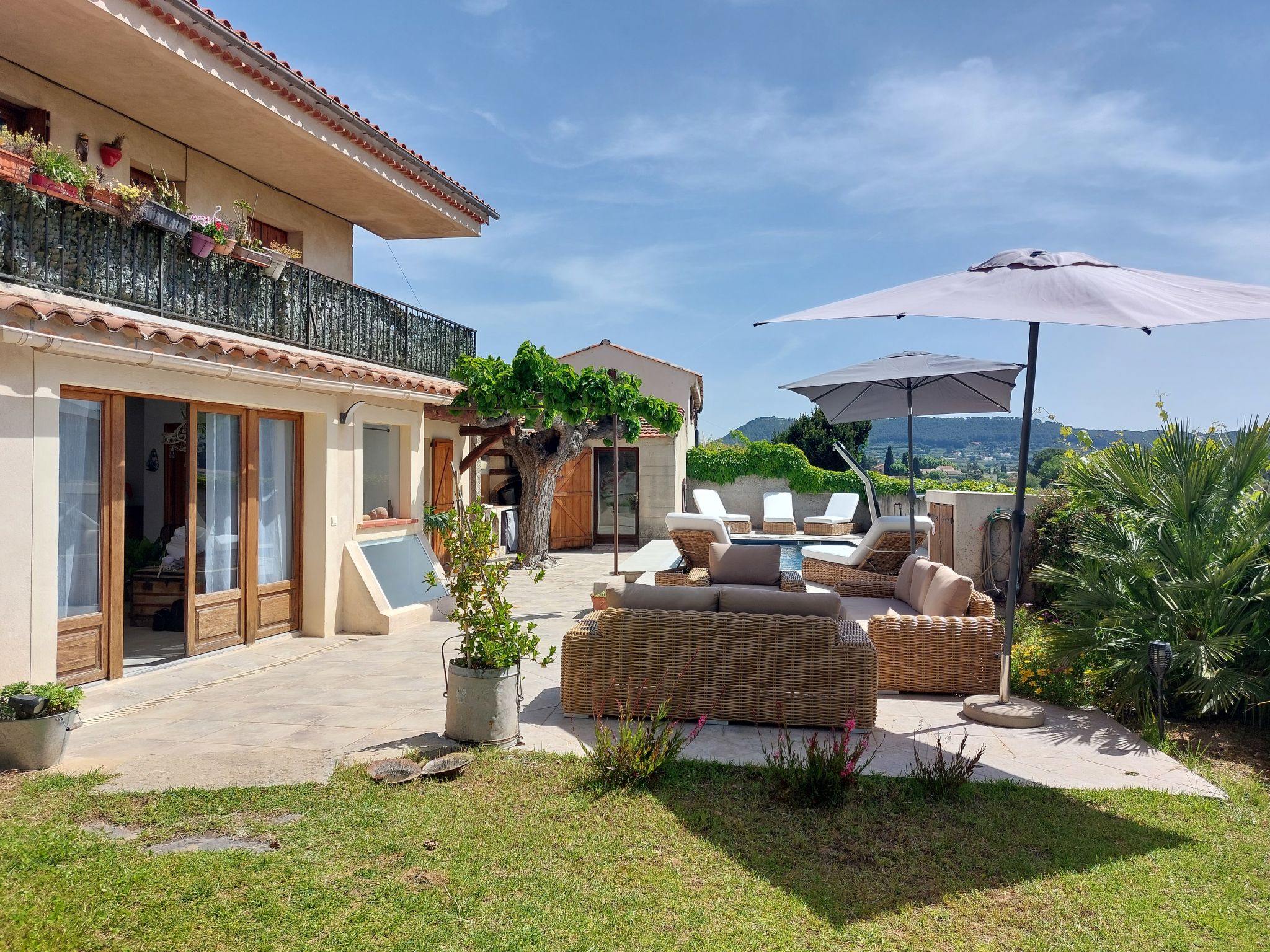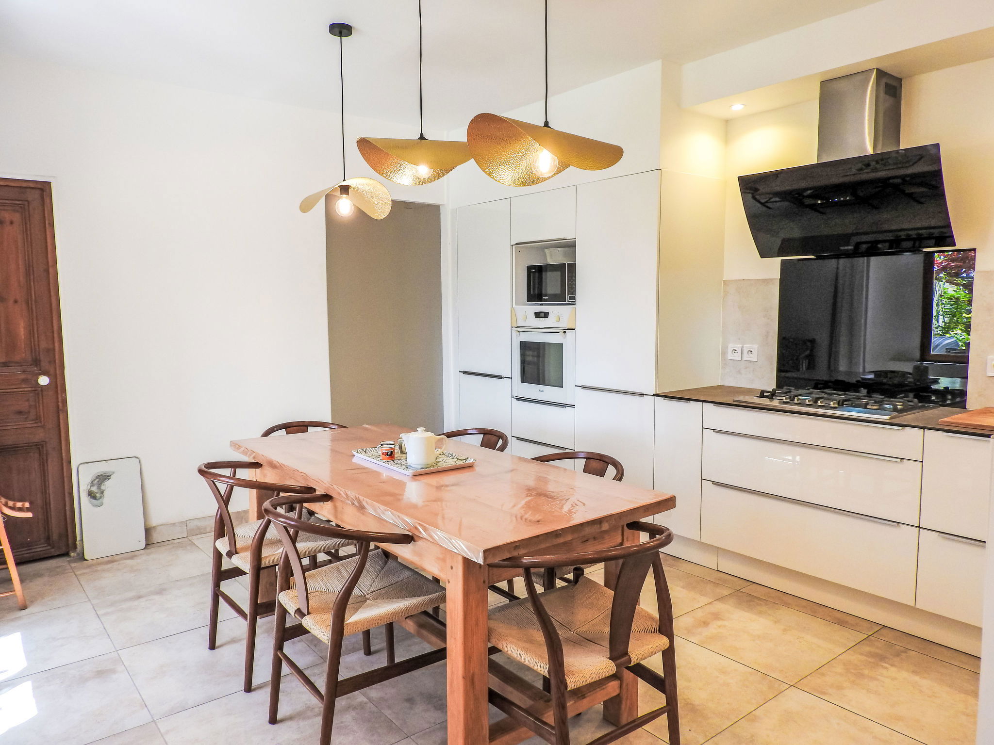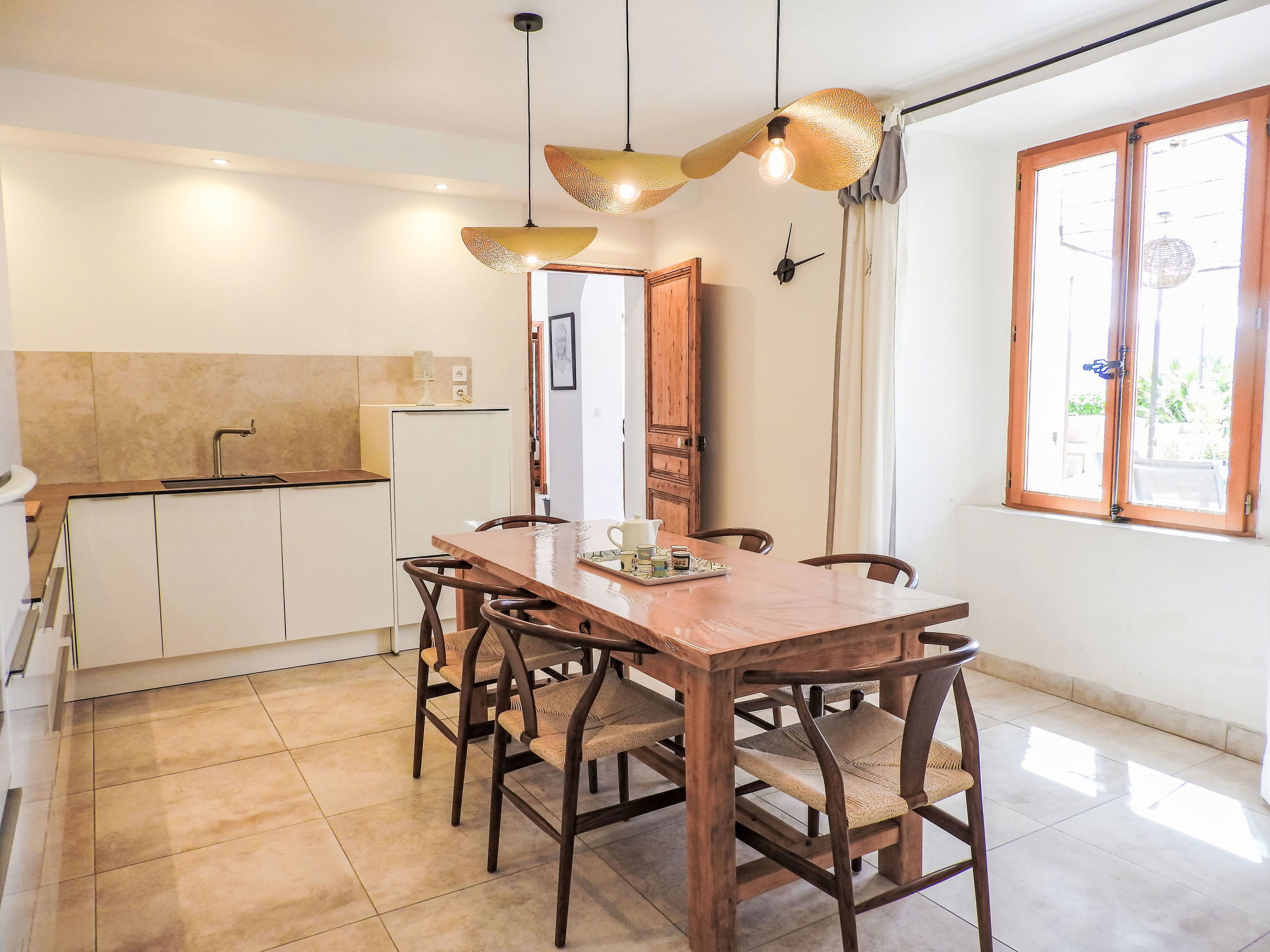 "La Bastide Neuve", 5-room apartment 100 m2, on the ground floor. Beautiful and cosy furnishings: living room with open-hearth fireplace (only for decoration), satellite TV and wood-burning stove. Exit to the terrace. 1 room with 1 french bed (160 cm). Exit to the terrace. 1 room with 1 french bed (160 cm). 1 room with 2 beds. Studio with 1 french bed (160 cm), shower/WC. Kitchen (oven, dishwasher, 5 gas rings, toaster, kettle, microwave, freezer, electric coffee machine) with dining table. Shower, sep. WC. Terrace. Terrace furniture, barbecue, deck chairs (6). Beautiful view of the garden and the countryside. Facilities: washing machine, children's high chair, baby cot. Internet (WiFi, free). Please note: one double bedroom is outside the apartment. Non-smoking house. Smoke alarm. No internal connecting door between the separated properties. When there are less than the maximum number of guests staying at the property, not all of the bedrooms will be available for use. 83112000399NQ