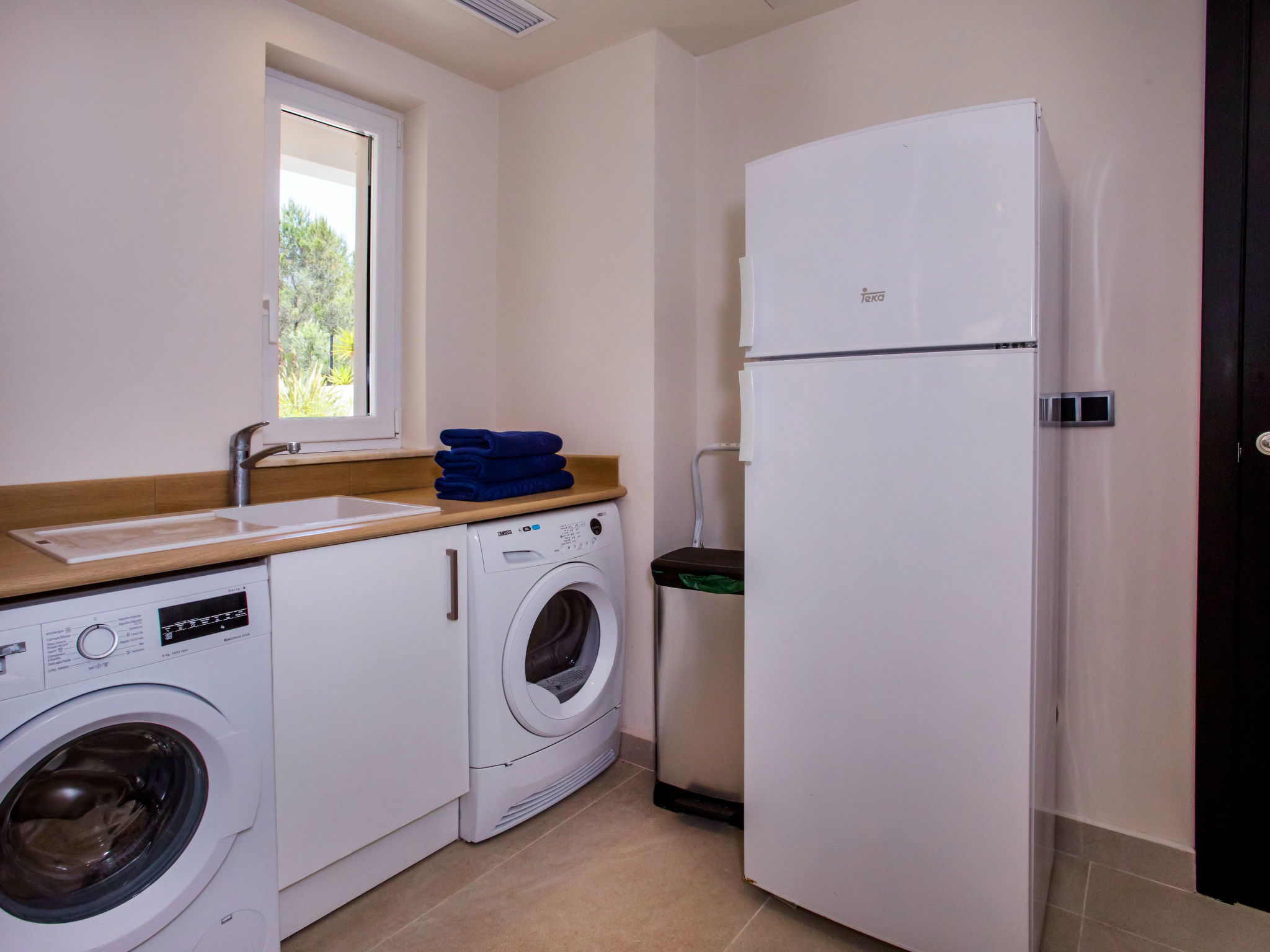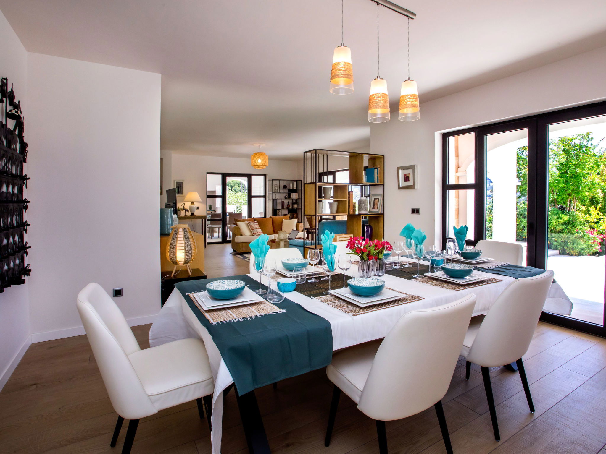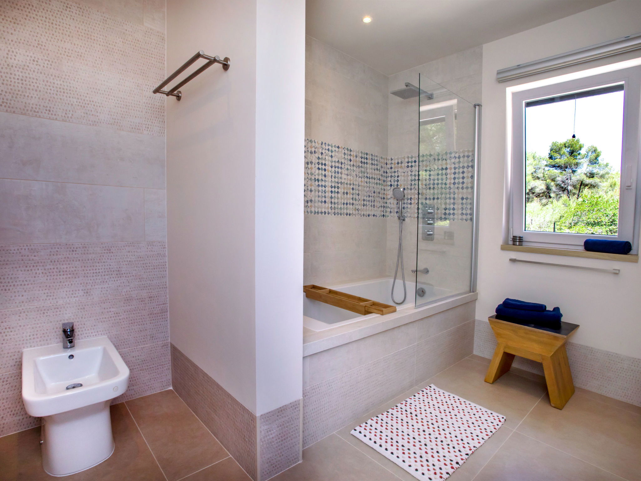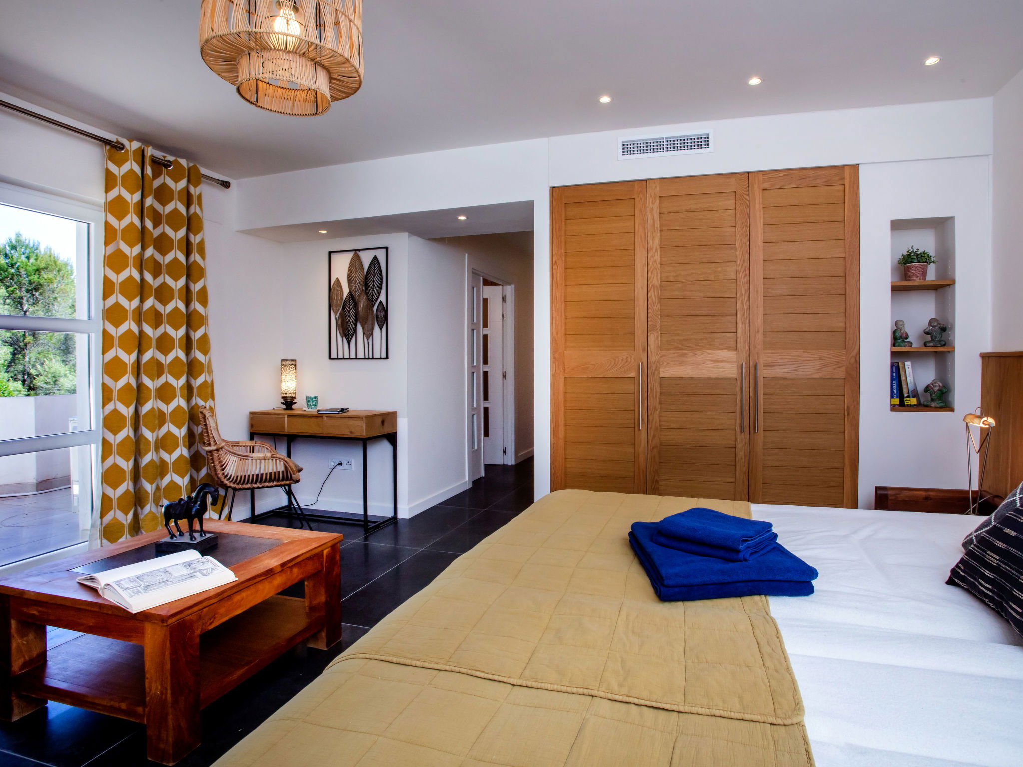 "Villa Almandrina", 6-room villa 270 m2 on 2 levels. Spacious and bright, very beautiful and stylish furnishings: living/dining room 50 m2 with digital TV, air conditioning and forced-air heating. Exit to the patio, to the swimming pool. Office with air conditioning and forced-air heating. Exit to the patio, to the swimming pool. 1 large room 38 m2 with 1 french bed (160 cm, length 200 cm), bath/shower/bidet/WC, double hand-basin, air conditioning and forced-air heating. Large, open kitchen (oven, dishwasher, 5 ceramic glass hob hotplates, toaster, kettle, microwave, freezer, electric coffee machine). Exit to the terrace. Sep. WC. Floor heating. Upper floor: 1 room 38 m2 with 1 french bed (2 x 100 cm, length 200 cm), shower/bidet/WC, air conditioning and forced-air heating. Exit to the terrace. 1 room 35 m2 with 1 french bed (160 cm, length 200 cm), shower/bidet/WC, double hand-basin, air conditioning and forced-air heating. Exit to the terrace. 1 room 32 m2 with 1 french bed (160 cm, length 200 cm), bath/bidet/WC, double hand-basin, air conditioning and forced-air heating. Exit to the terrace. 3 large terraces, large patio, south facing position, large garden. Terrace furniture, barbecue, deck chairs, covered balcony, sitting area. Marvellous panoramic view of the mountains and the valley. Facilities: washing machine, iron, children's high chair, baby cot for up to 2 year olds, hair dryer. Internet (WiFi, free). Parking (3 cars), garage. Please note: TV only ES. AT-502429-A