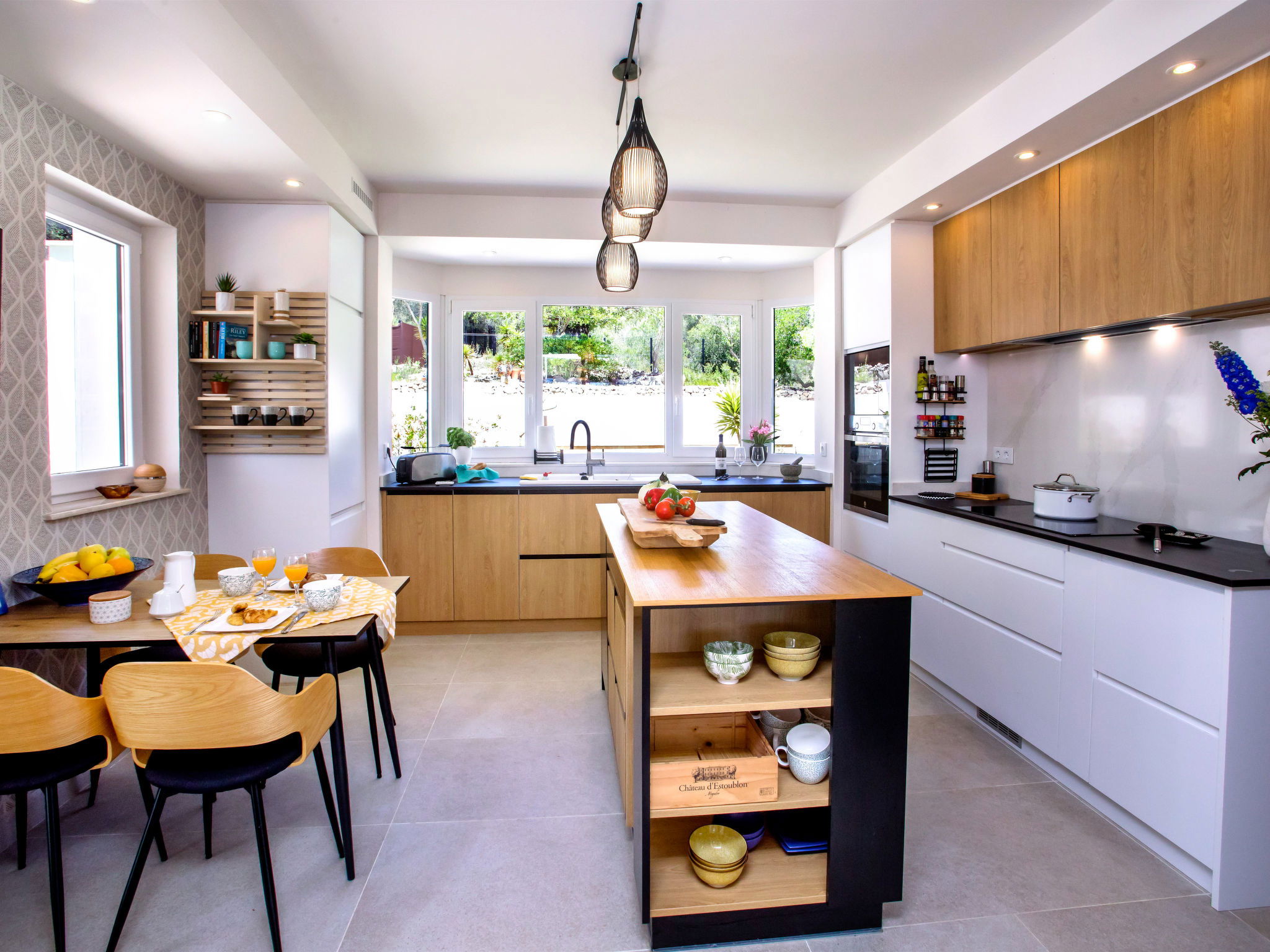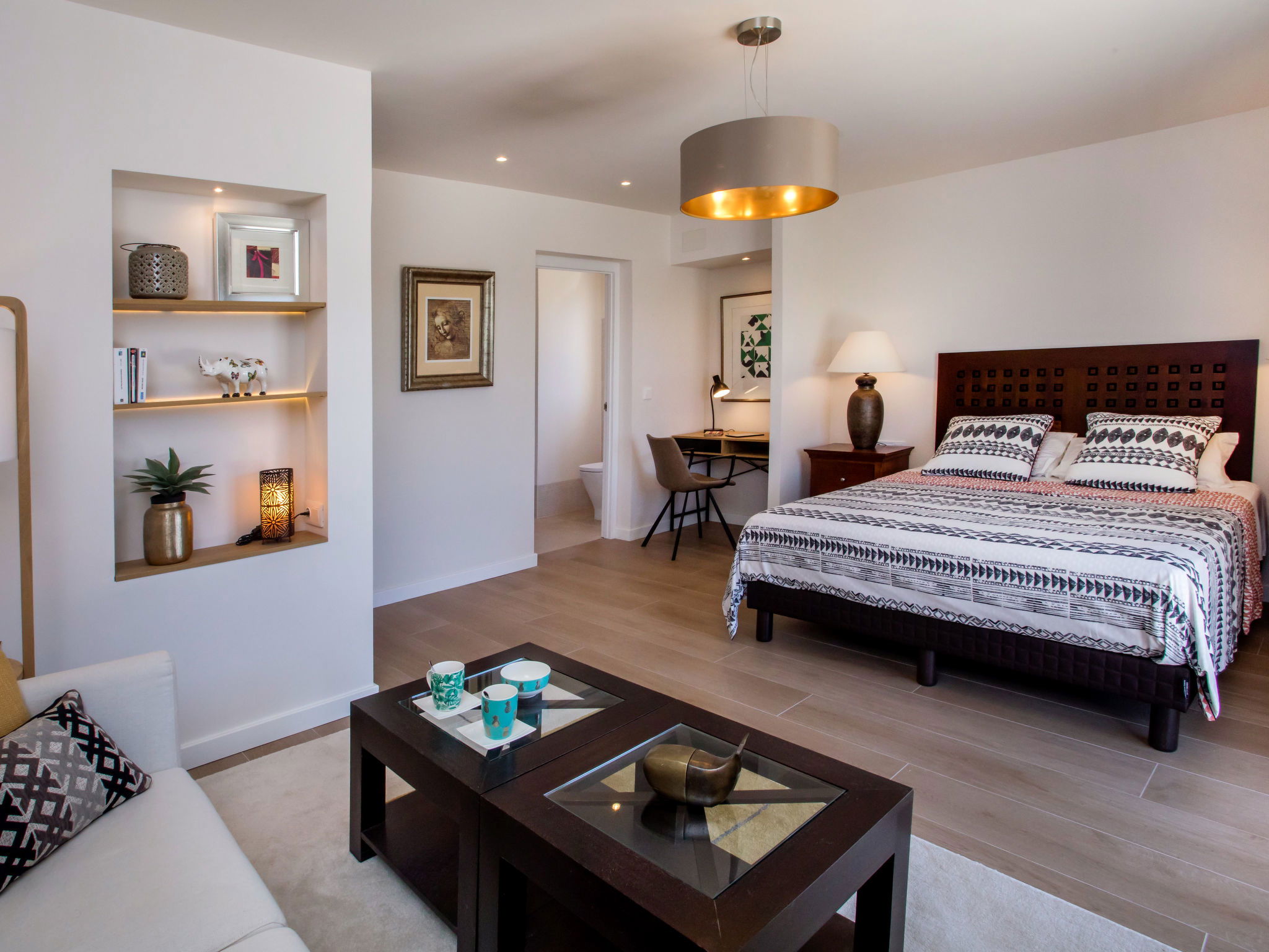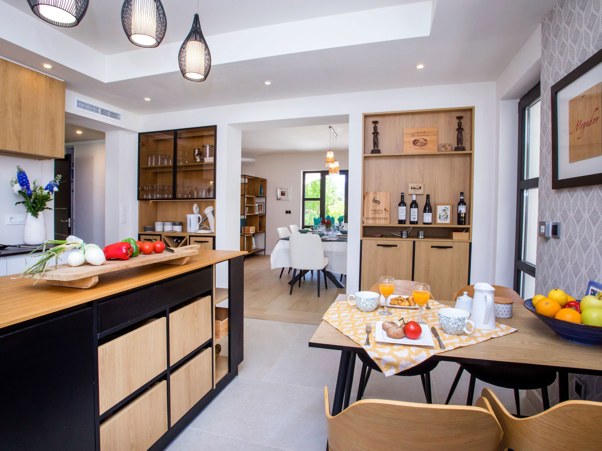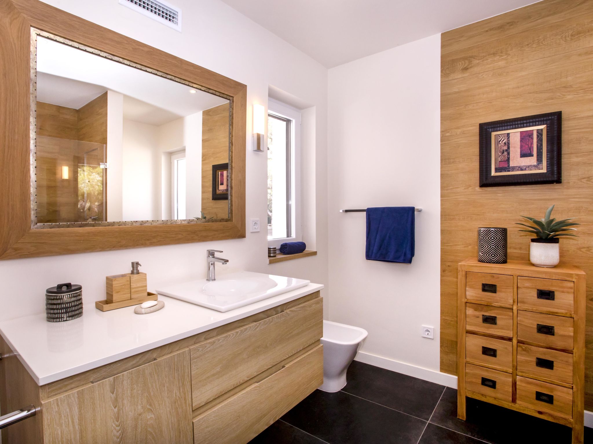 "Villa Almandrina", 6-room villa 270 m2 on 2 levels. Spacious and bright, very beautiful and stylish furnishings: living/dining room 50 m2 with digital TV, air conditioning and forced-air heating. Exit to the patio, to the swimming pool. Office with air conditioning and forced-air heating. Exit to the patio, to the swimming pool. 1 large room 38 m2 with 1 french bed (160 cm, length 200 cm), bath/shower/bidet/WC, double hand-basin, air conditioning and forced-air heating. Large, open kitchen (oven, dishwasher, 5 ceramic glass hob hotplates, toaster, kettle, microwave, freezer, electric coffee machine). Exit to the terrace. Sep. WC. Floor heating. Upper floor: 1 room 38 m2 with 1 french bed (2 x 100 cm, length 200 cm), shower/bidet/WC, air conditioning and forced-air heating. Exit to the terrace. 1 room 35 m2 with 1 french bed (160 cm, length 200 cm), shower/bidet/WC, double hand-basin, air conditioning and forced-air heating. Exit to the terrace. 1 room 32 m2 with 1 french bed (160 cm, length 200 cm), bath/bidet/WC, double hand-basin, air conditioning and forced-air heating. Exit to the terrace. 3 large terraces, large patio, south facing position, large garden. Terrace furniture, barbecue, deck chairs, covered balcony, sitting area. Marvellous panoramic view of the mountains and the valley. Facilities: washing machine, iron, children's high chair, baby cot for up to 2 year olds, hair dryer. Internet (WiFi, free). Parking (3 cars), garage. Please note: TV only ES. AT-502429-A
