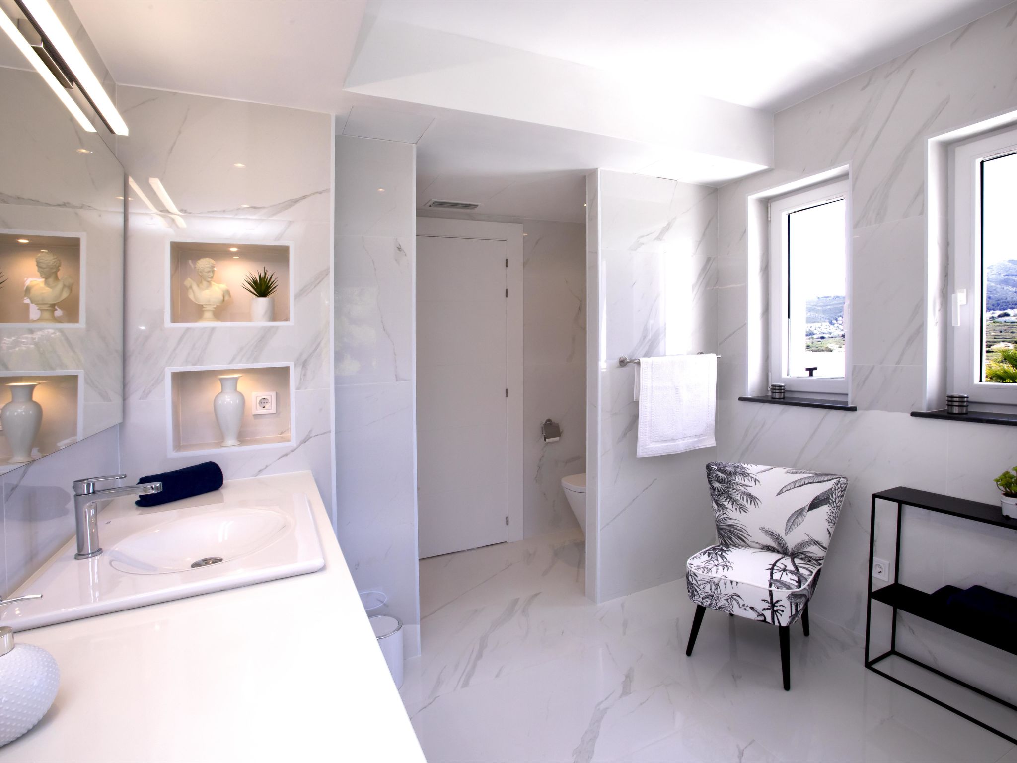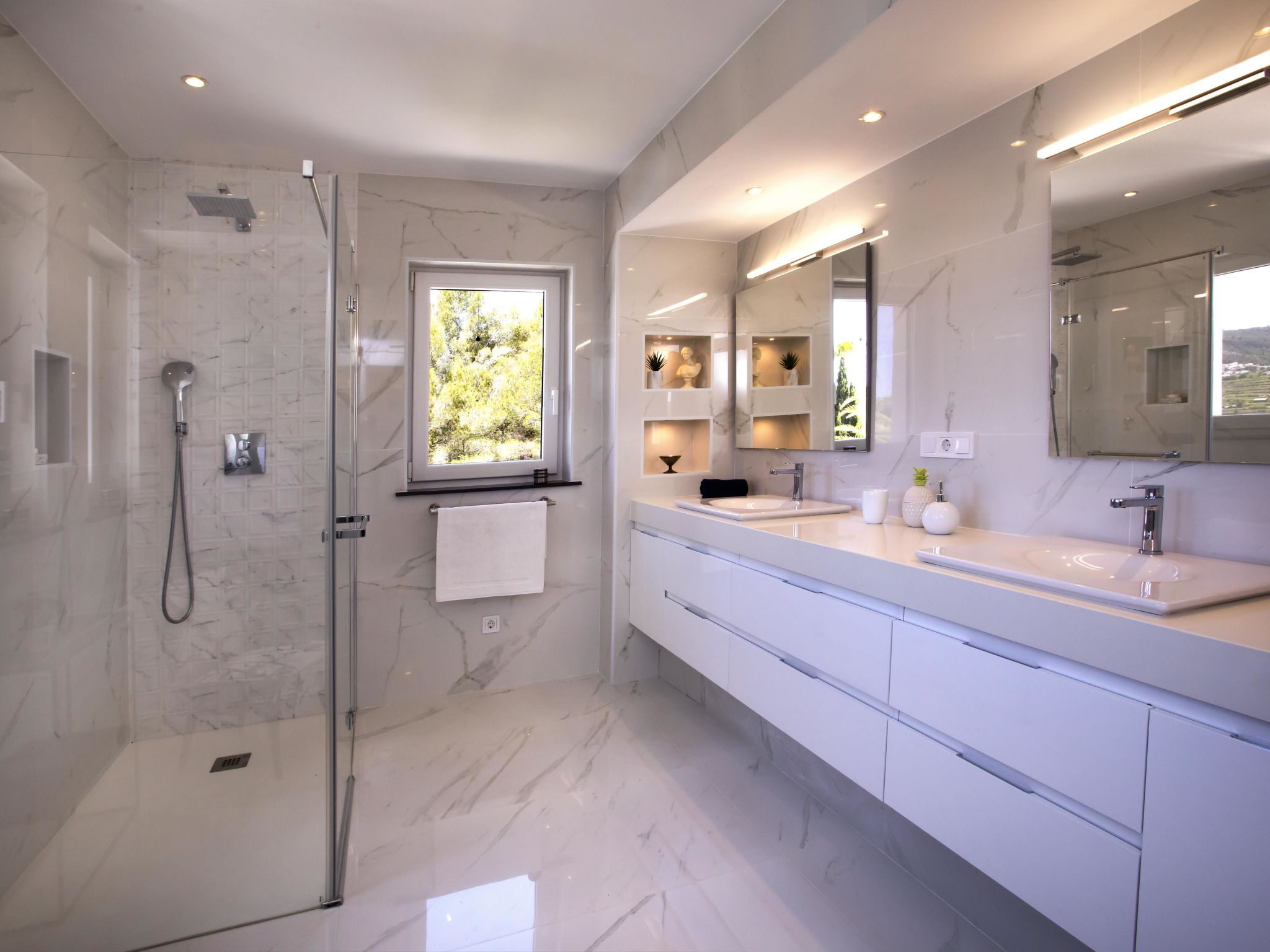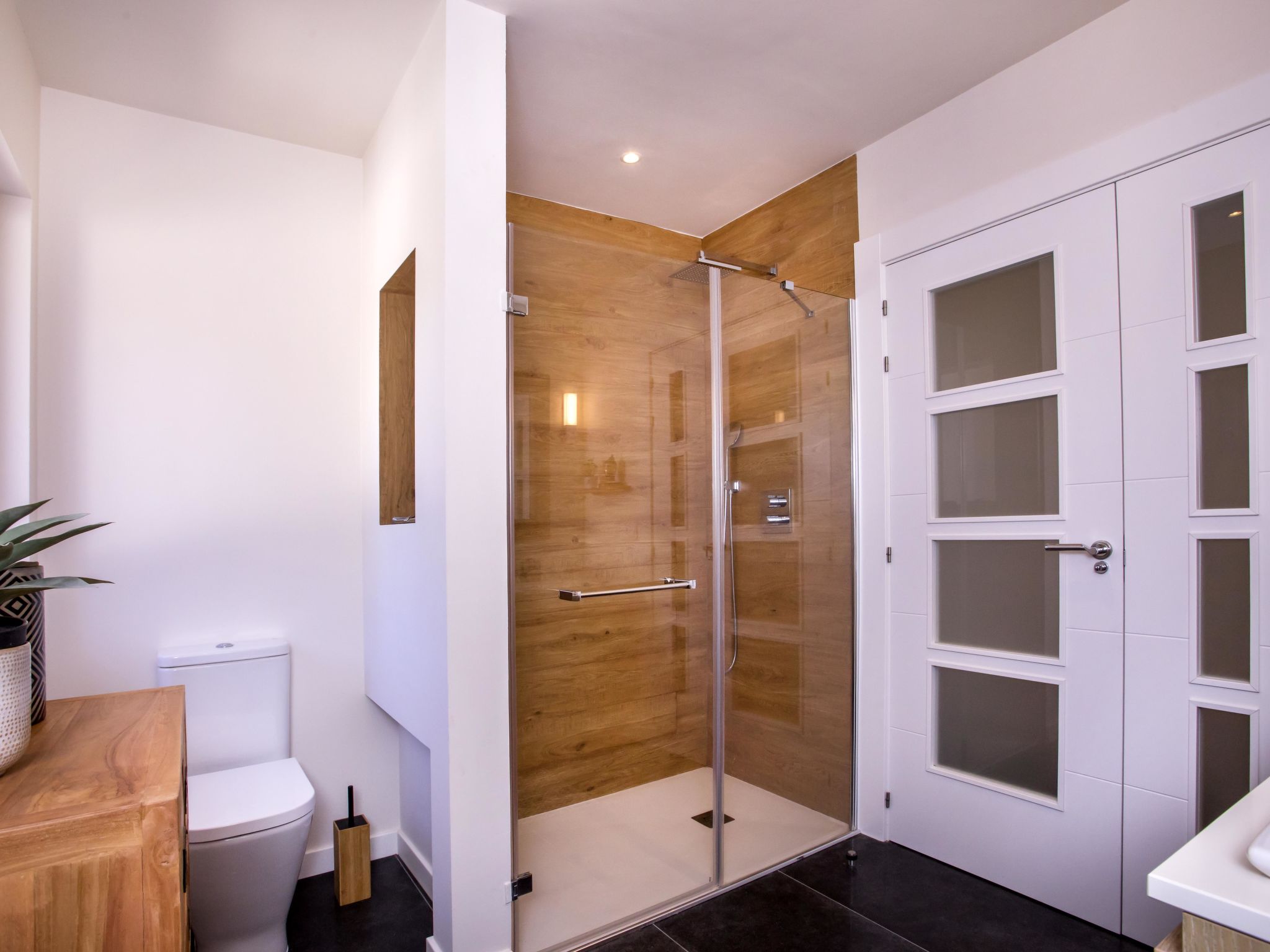 Very large, very modern, very luxurious villa "Almandrina", 2 storeys. In the district of La Lluca, in the resort 7 km from the centre of Javea - El Arenal, in a quiet, sunny position, 25 m from the edge of the forest, 7 km from the sea, 7 km from the beach. Private: property 2'000 m2 (fenced), large, beautiful, well-kept terraced garden with lawn and trees, swimming pool (10 x 5 m, depth 90 - 190 cm, seasonal availability: 01.Jan. - 31.Dec.) with internal staircase. Unconventional pool shape. Paddling pool, outdoor shower, pool house with fridge and cooking stove, pergola, garden furniture, barbecue house. In the house: air conditioning, laundry, washing machine. Parking on the premises, single garage. Shop 9 km, supermarket 2 km, shopping centre 20 km, restaurant 3 km, café 3 km, internet café 7 km, bus stop 7 km, sandy beach "Playa del Arenal" 7 km, shingle beach "Playa de Portitchol" 13 km, diving center 7 km. Sports harbour 7 km, golf course (9 hole) 2 km, surf school 7 km, sailing school 7 km, tennis 3 km, riding stable 10 km. Nearby attractions: Aqualandia Benidorm 40 km, Oceanografico Valencia 110 km. Hiking paths: Portichol 10 km. The owner does not accept any youth groups. Neighbourhood highly sensitive to noise. Quietness and good behaviour expected.