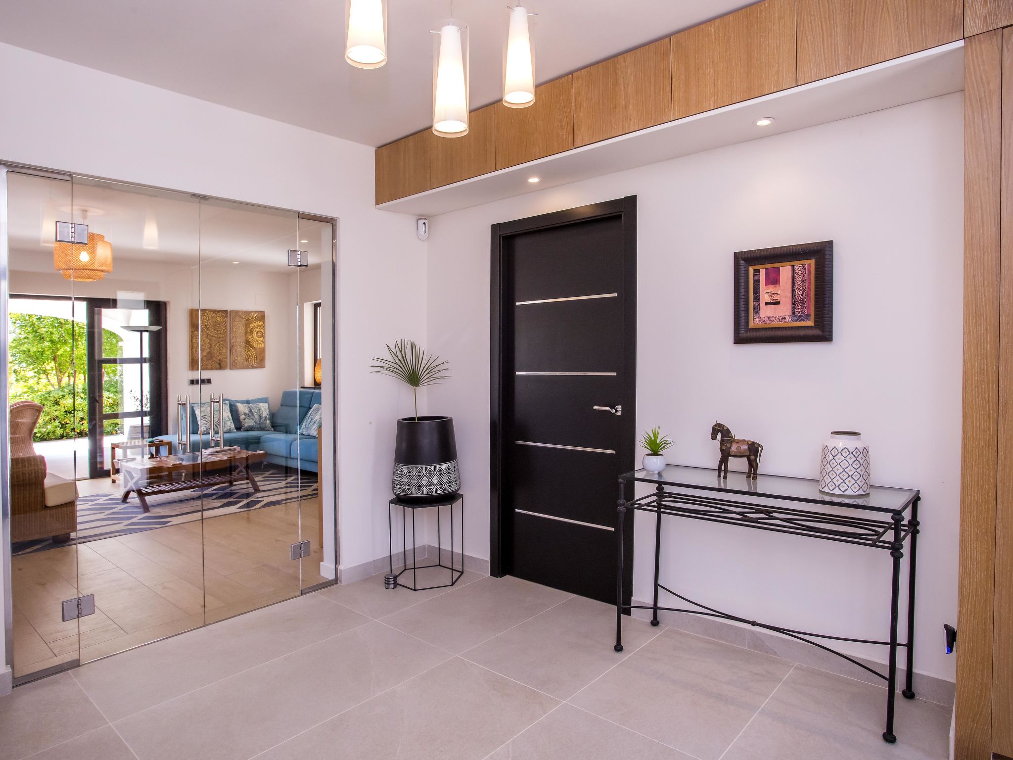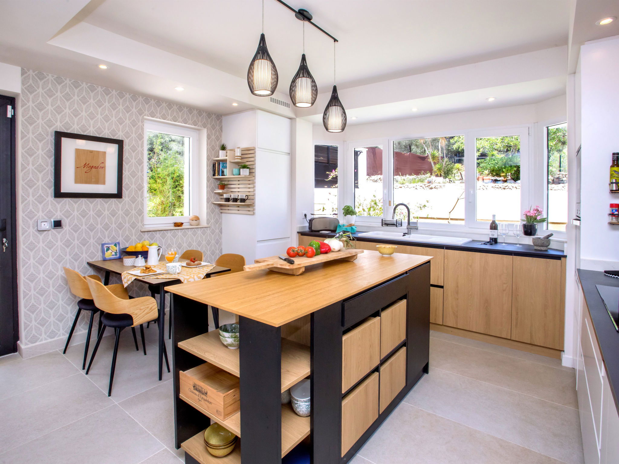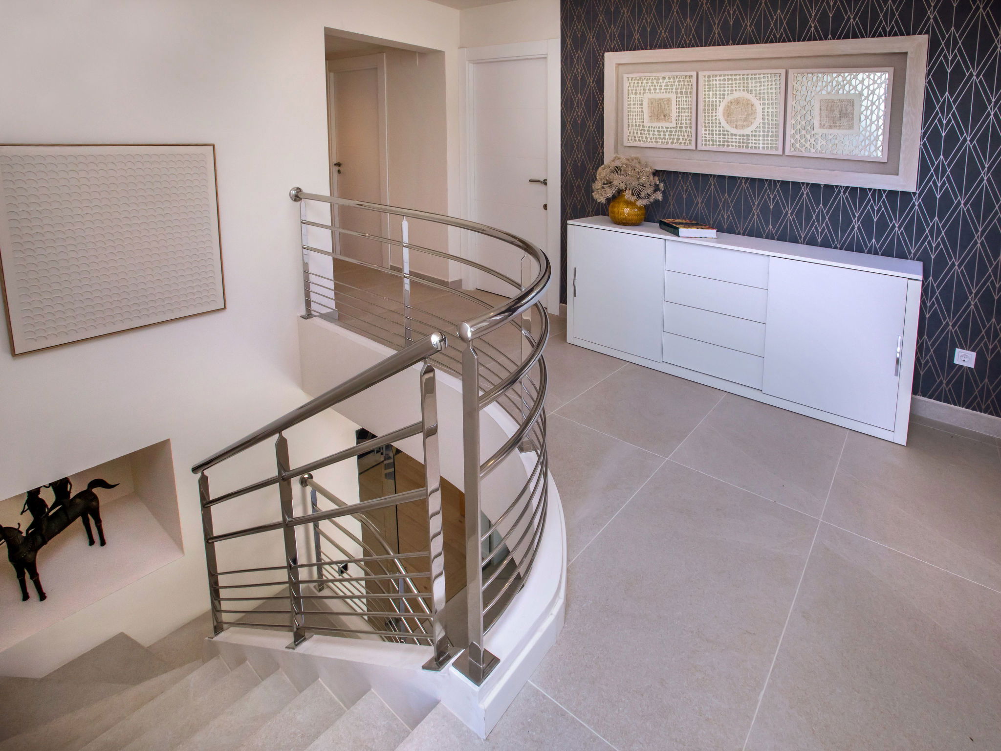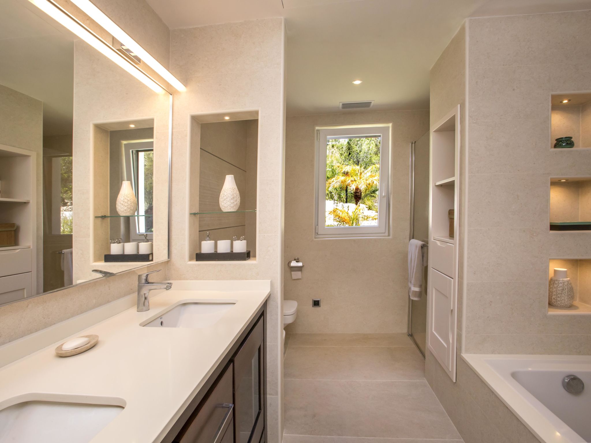 Very large, very modern, very luxurious villa "Almandrina", 2 storeys. In the district of La Lluca, in the resort 7 km from the centre of Javea - El Arenal, in a quiet, sunny position, 25 m from the edge of the forest, 7 km from the sea, 7 km from the beach. Private: property 2'000 m2 (fenced), large, beautiful, well-kept terraced garden with lawn and trees, swimming pool (10 x 5 m, depth 90 - 190 cm, seasonal availability: 01.Jan. - 31.Dec.) with internal staircase. Unconventional pool shape. Paddling pool, outdoor shower, pool house with fridge and cooking stove, pergola, garden furniture, barbecue house. In the house: air conditioning, laundry, washing machine. Parking on the premises, single garage. Shop 9 km, supermarket 2 km, shopping centre 20 km, restaurant 3 km, café 3 km, internet café 7 km, bus stop 7 km, sandy beach "Playa del Arenal" 7 km, shingle beach "Playa de Portitchol" 13 km, diving center 7 km. Sports harbour 7 km, golf course (9 hole) 2 km, surf school 7 km, sailing school 7 km, tennis 3 km, riding stable 10 km. Nearby attractions: Aqualandia Benidorm 40 km, Oceanografico Valencia 110 km. Hiking paths: Portichol 10 km. The owner does not accept any youth groups. Neighbourhood highly sensitive to noise. Quietness and good behaviour expected.