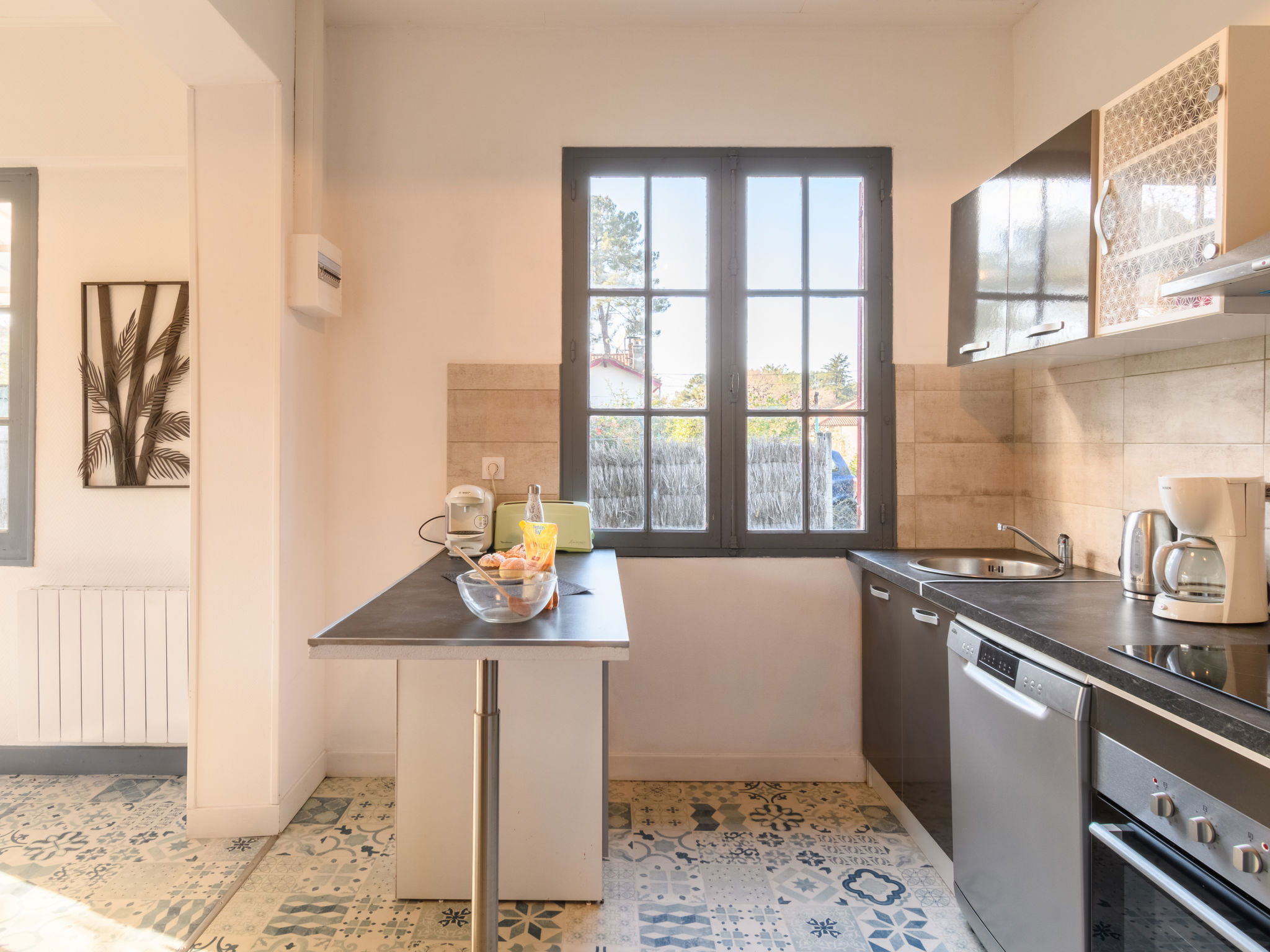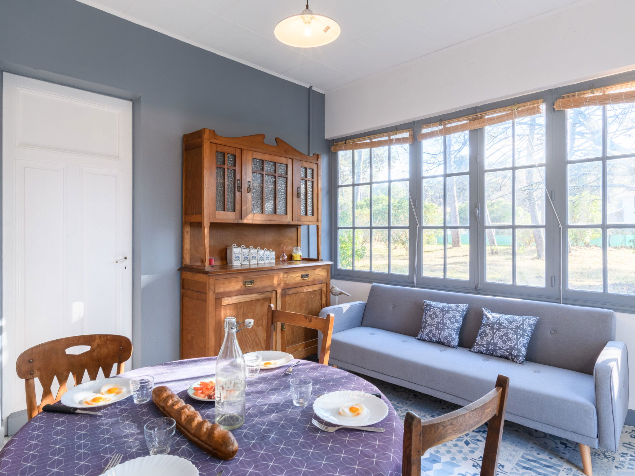 Single-family house "Chante Cigale". In the resort 2.5 km from the centre of Mimizan Plage, 200 m from the edge of the forest, 2.5 km from the sea, 9 km from the lake, 2.5 km from the beach, south-west facing position. Private: property 1'400 m2 (fenced), parking (for 2 cars) on the premises. Shop 2.3 km, grocery 2.3 km, shopping centre 6 m, restaurant 2 km, bakery 2.3 km, pedestrian zone 2.3 km, bus stop 400 m, railway station "Labouheyre" 30 km, sandy beach "gourbets" 2.5 km, park "landes aventure" 6 km, bathing lake "Aureilhan" 10 km. Golf course (9 hole) 9 km, surf school 2.3 km, riding stable 10 km. Nearby attractions: Bordeaux 120 m, Dune du pila 70 m, Biscarrosse 40 m, Centre nautique 7 m, Casino de jeux 2 m. Hiking paths: Eco musée de Marquèze Sabres 45 m, Disc Golf 2.5 km.