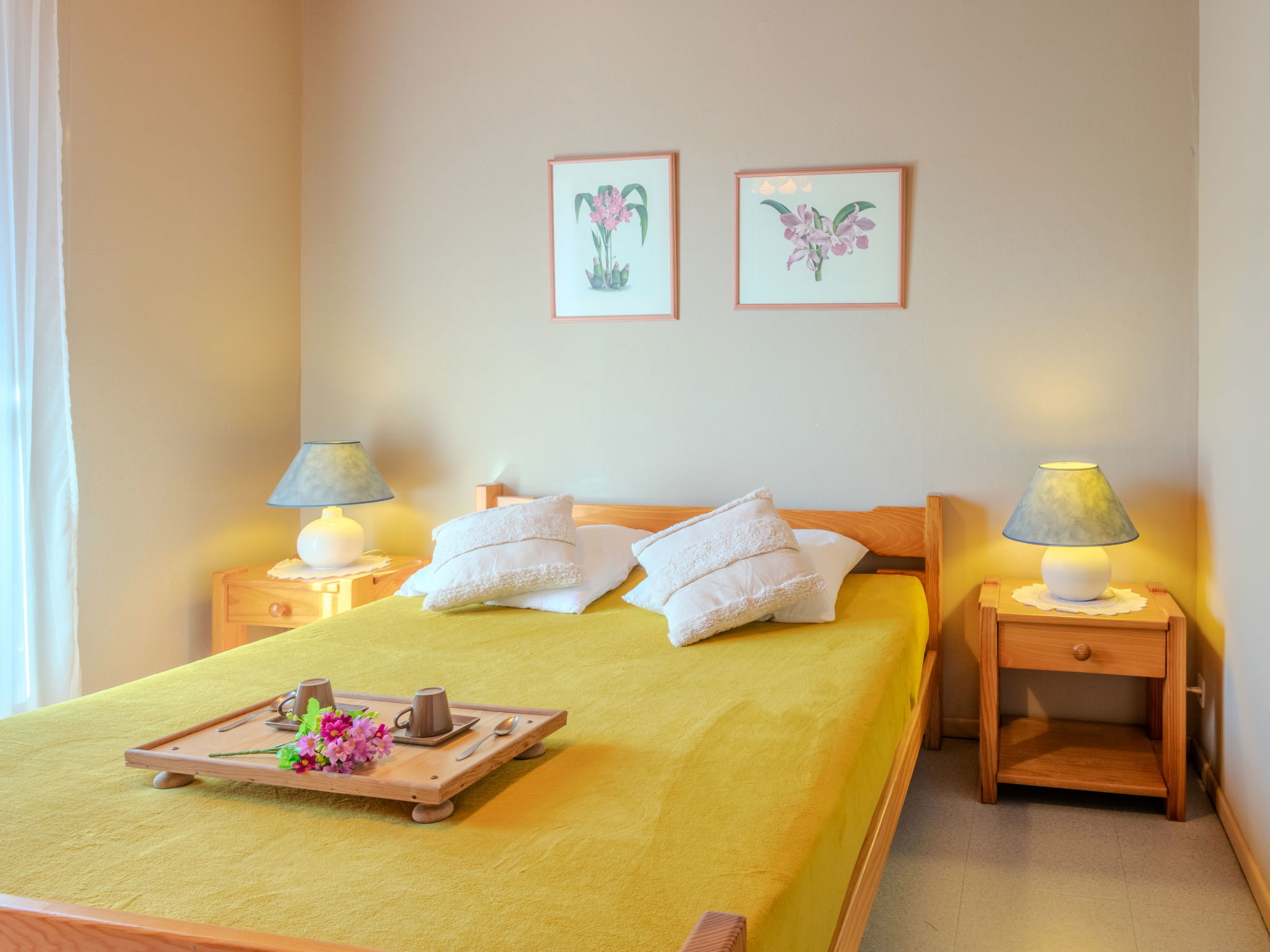 3-room house 60 m2. Beautiful furnishings: living/dining room with 1 sofabed (120 cm), satellite TV and international TV channels (flat screen), hi-fi system and DVD. Exit to the terrace. 1 room with 1 french bed (1 x 140 cm, length 190 cm). Exit to the terrace. 1 room with 1 french bed (1 x 140 cm, length 190 cm). Kitchen (4 hot plates, oven, dishwasher, microwave). Shower, sep. WC. Electric heating. Terrace roofed, north facing position terrace, south facing position. Terrace furniture, deck chairs (4). Facilities: washing machine. Internet (WiFi, free). Please note: maximum 1 pet/ dog allowed. Smoke alarm.