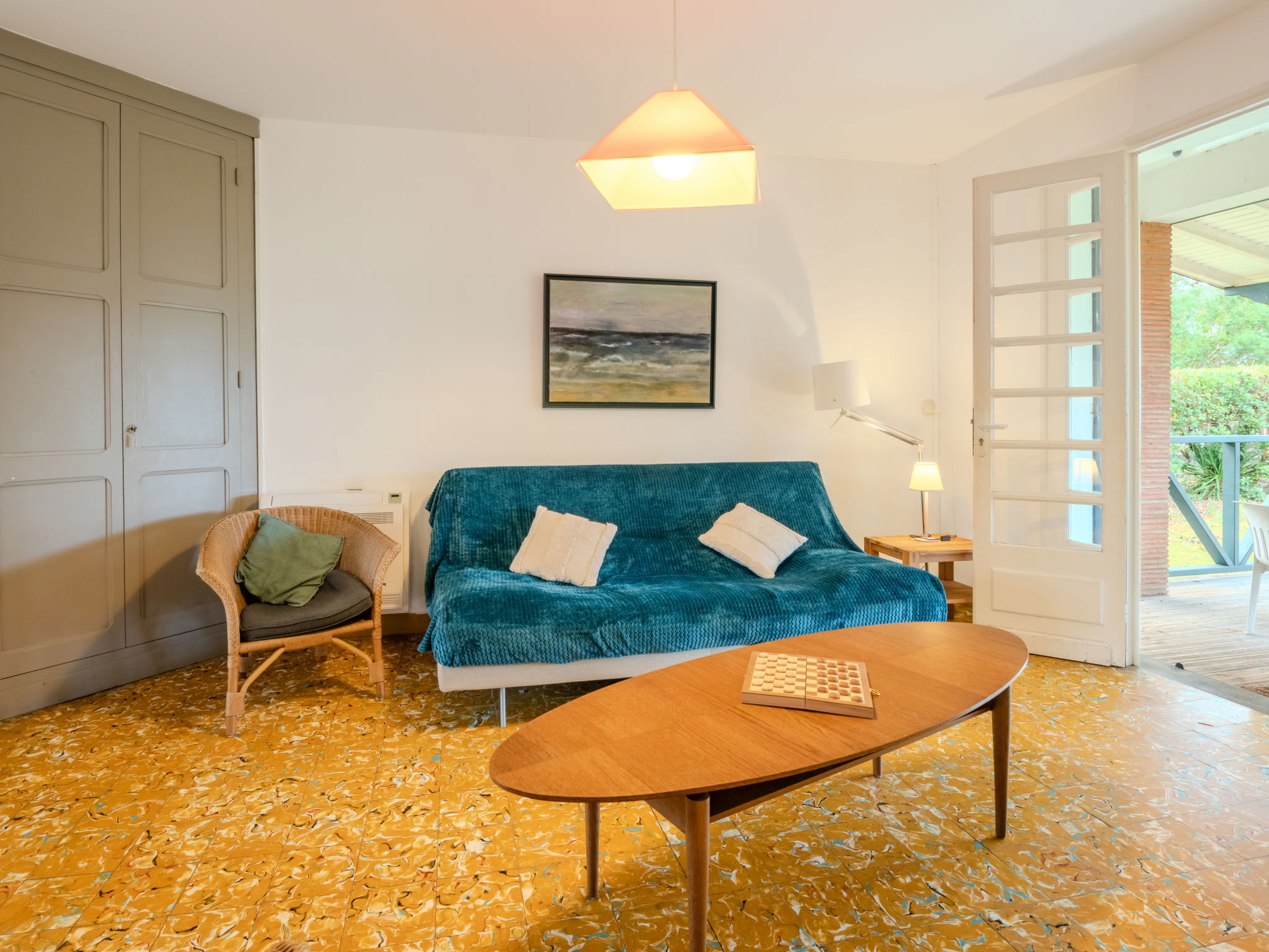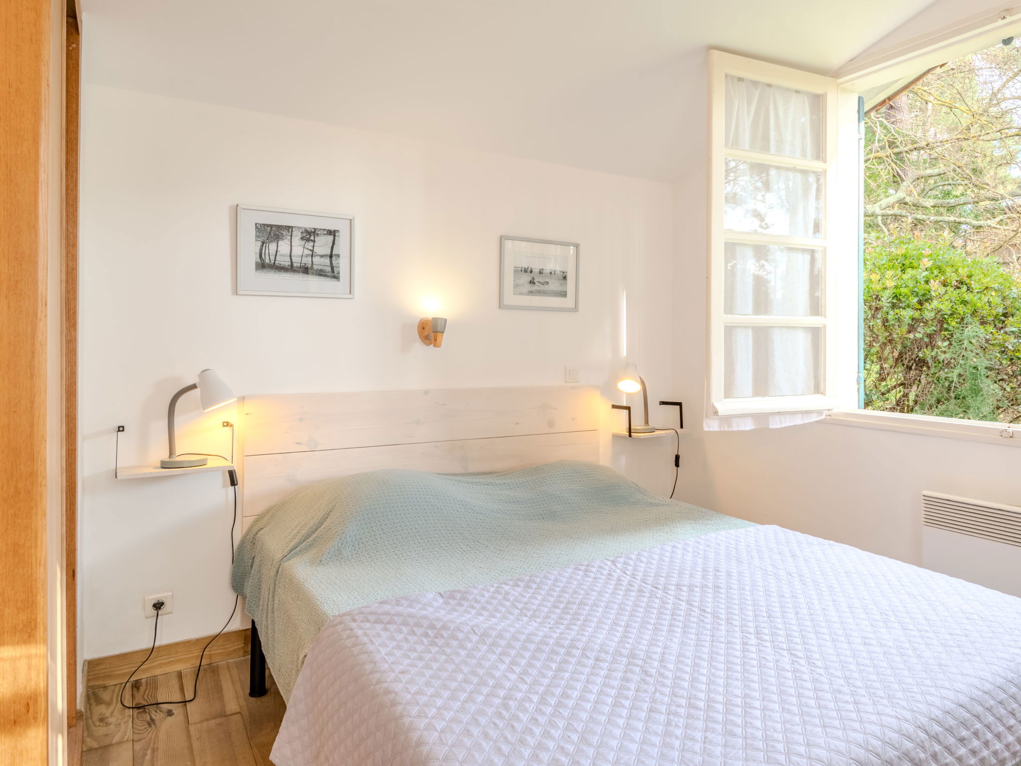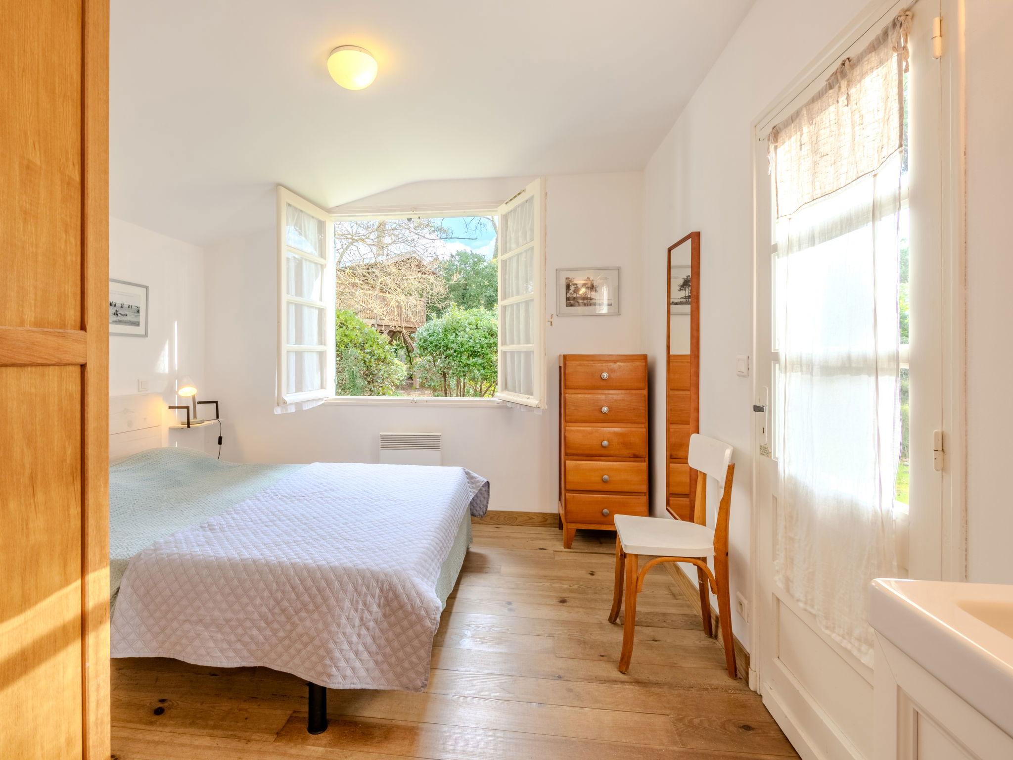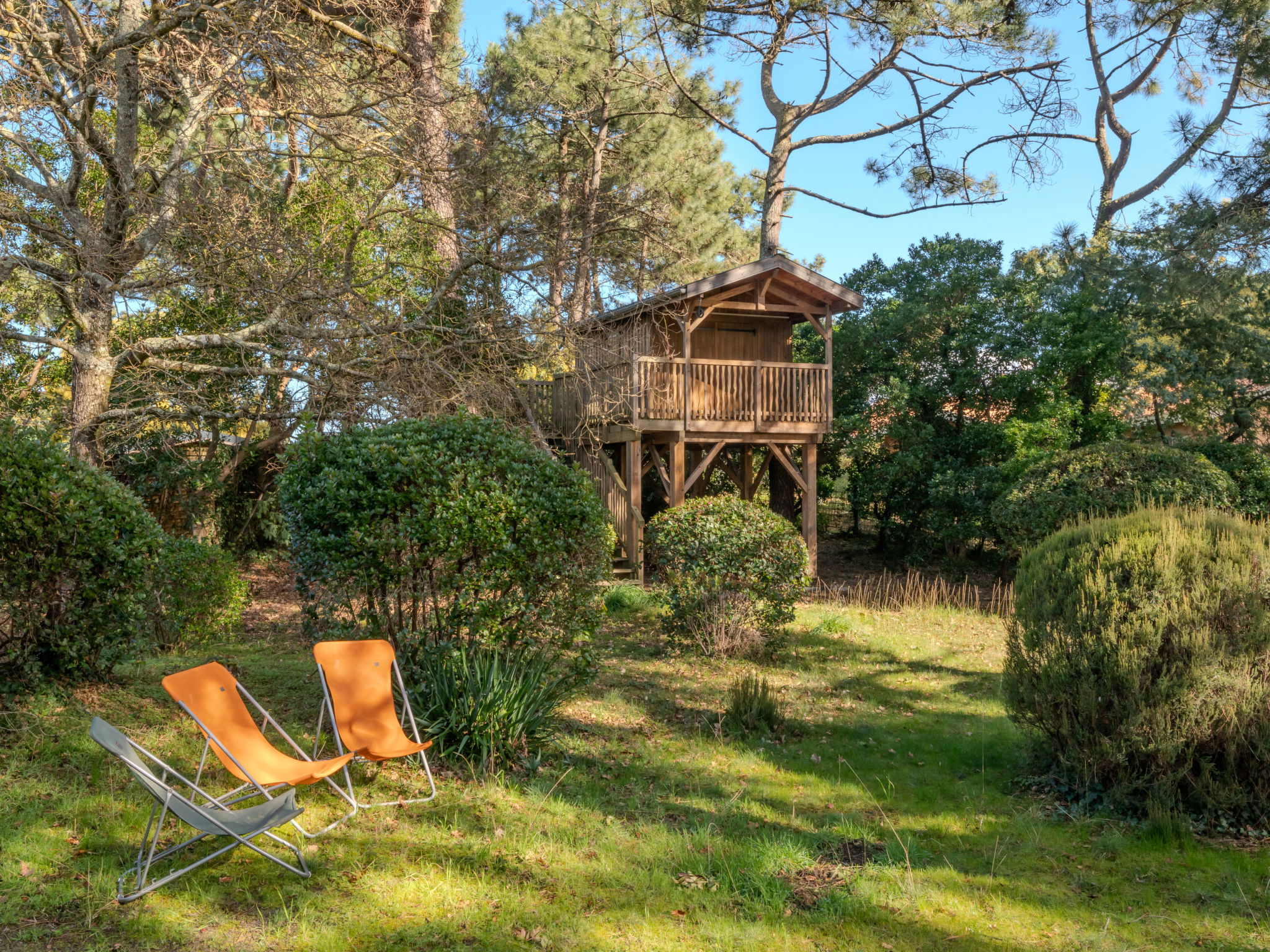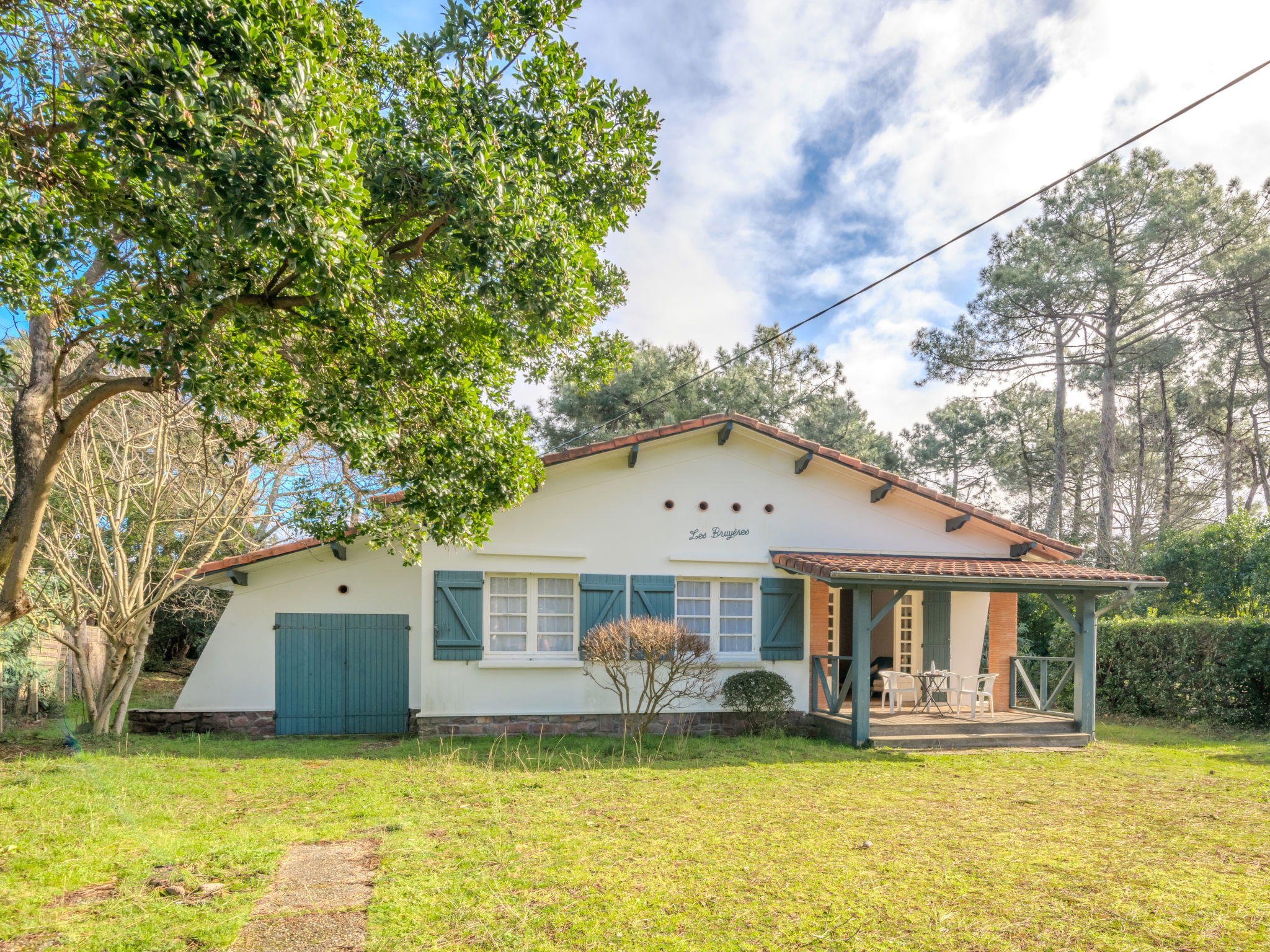 Single-family house "Les Bruyères". In the resort 1.2 km from the centre of Mimizan-Plage, 1.1 km from the sea, 1.1 km from the beach, 100 m from the river. Private: natural state property 1'300 m2 (fenced) with trees, parking on the premises. Supermarket 1.2 km, bus stop 450 m, railway station "Labouheyre" 30 km, sandy beach 1.1 km, park "Landes Aventure" 6 km, indoor swimming pool 6 km, bathing lake "Aureilhan" 10 km. Golf course (9 hole) 6 km, surf school 1.1 km. Nearby attractions: Arcachon 70 km, Bordeaux 120 km, Biscarosse 40 km, Centre Nautique 7 km, Casino Mimizan Plage. Hiking paths: Parc naturel régional des Landes.