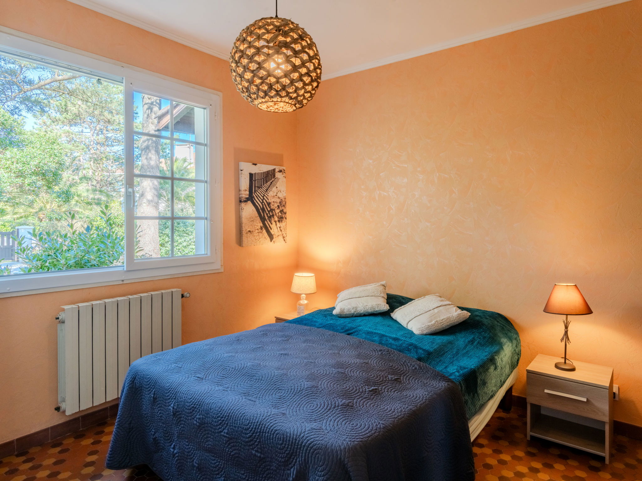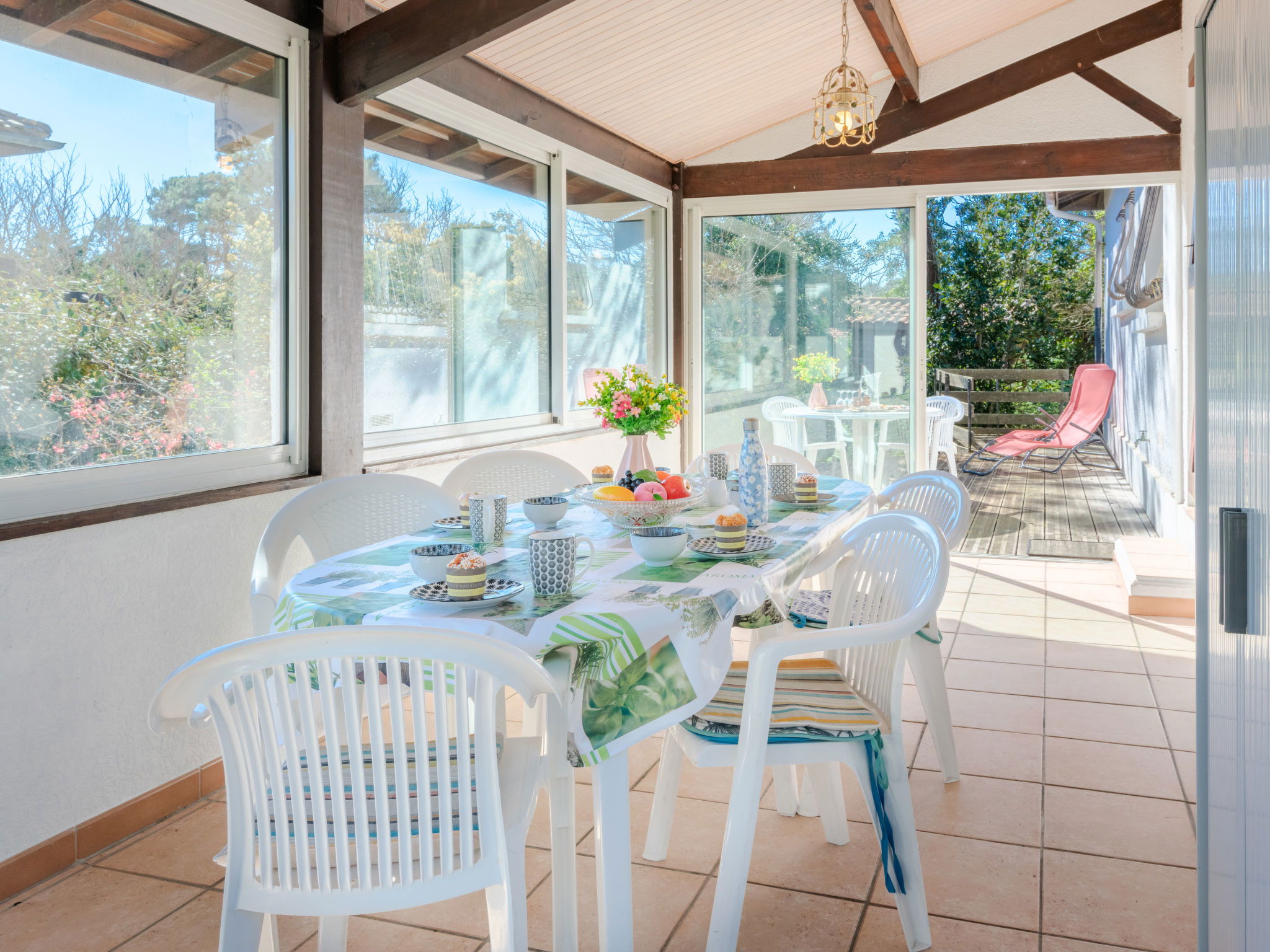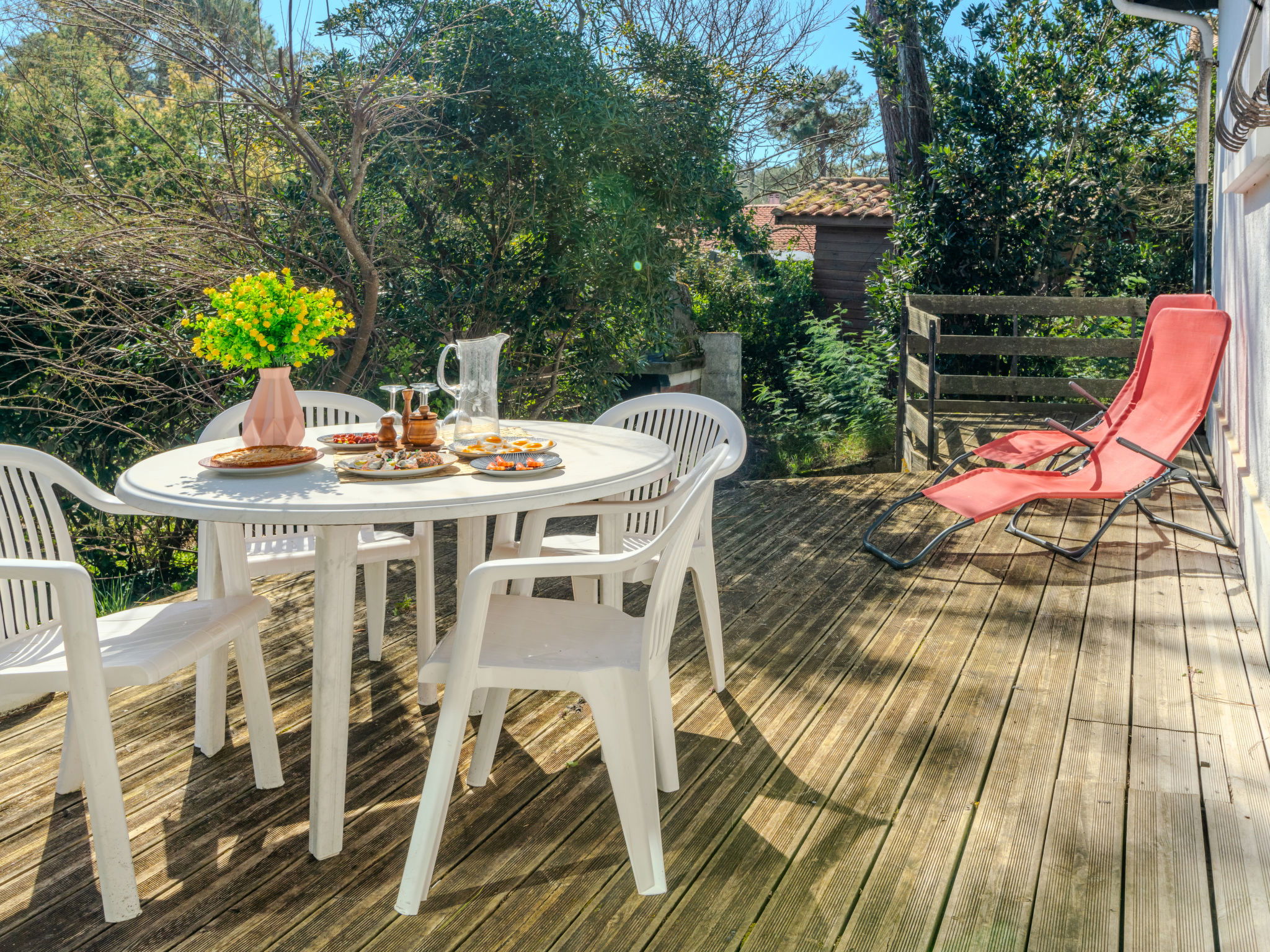 Single-family house "Promenade des Pins". In the resort 1 km from the centre of Mimizan-Plage, 500 m from the edge of the forest, 500 m from the sea, 500 m from the beach. Private: natural state property 1'000 m2 (fenced), parking on the premises. Grocery 1.5 km, supermarket 1.5 km, restaurant 1.2 km, bakery 1.5 km, pedestrian zone 1.5 km, bus stop "Office de tourisme" 1.3 km, railway station "Labouheyre" 30 km, sandy beach "Sud" 500 m, indoor swimming pool 6 km, bathing lake "Aureilhan" 10 km. Golf course (9 hole) 6 km, surf school 600 m, riding stable 7 km, cycle lane 500 m. Nearby attractions: Arcachon 70 km, Bordeaux 120 km, Biscarosse 40 km, Centre Nautique 7 km, Casino Mimizan Plage. Hiking paths: Parc naturel régional des Landes.